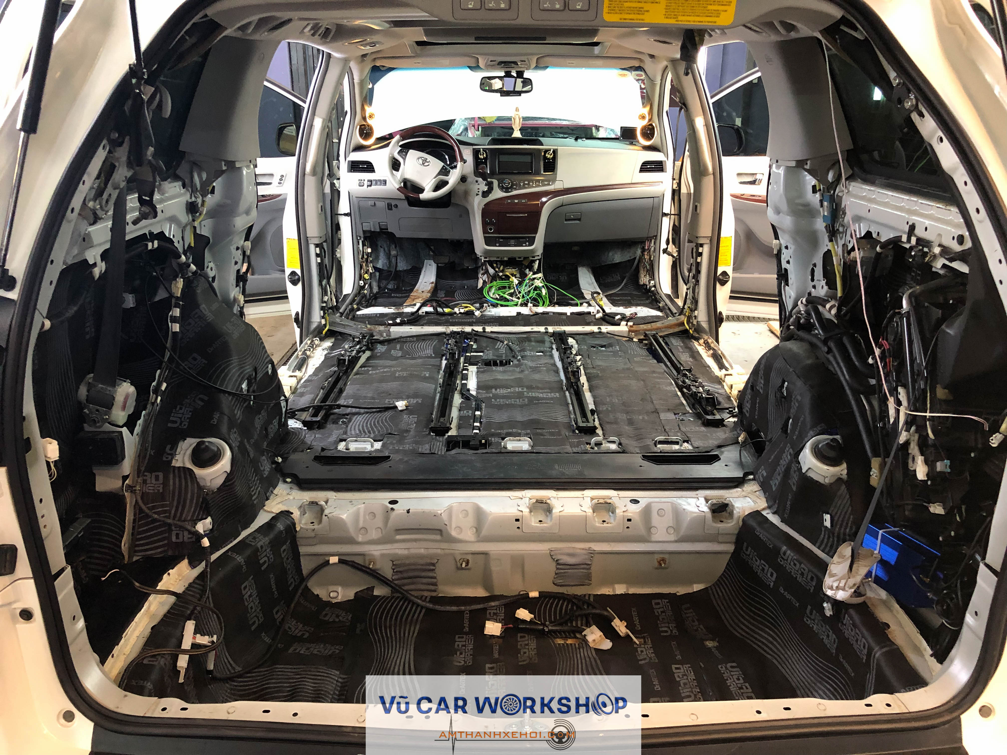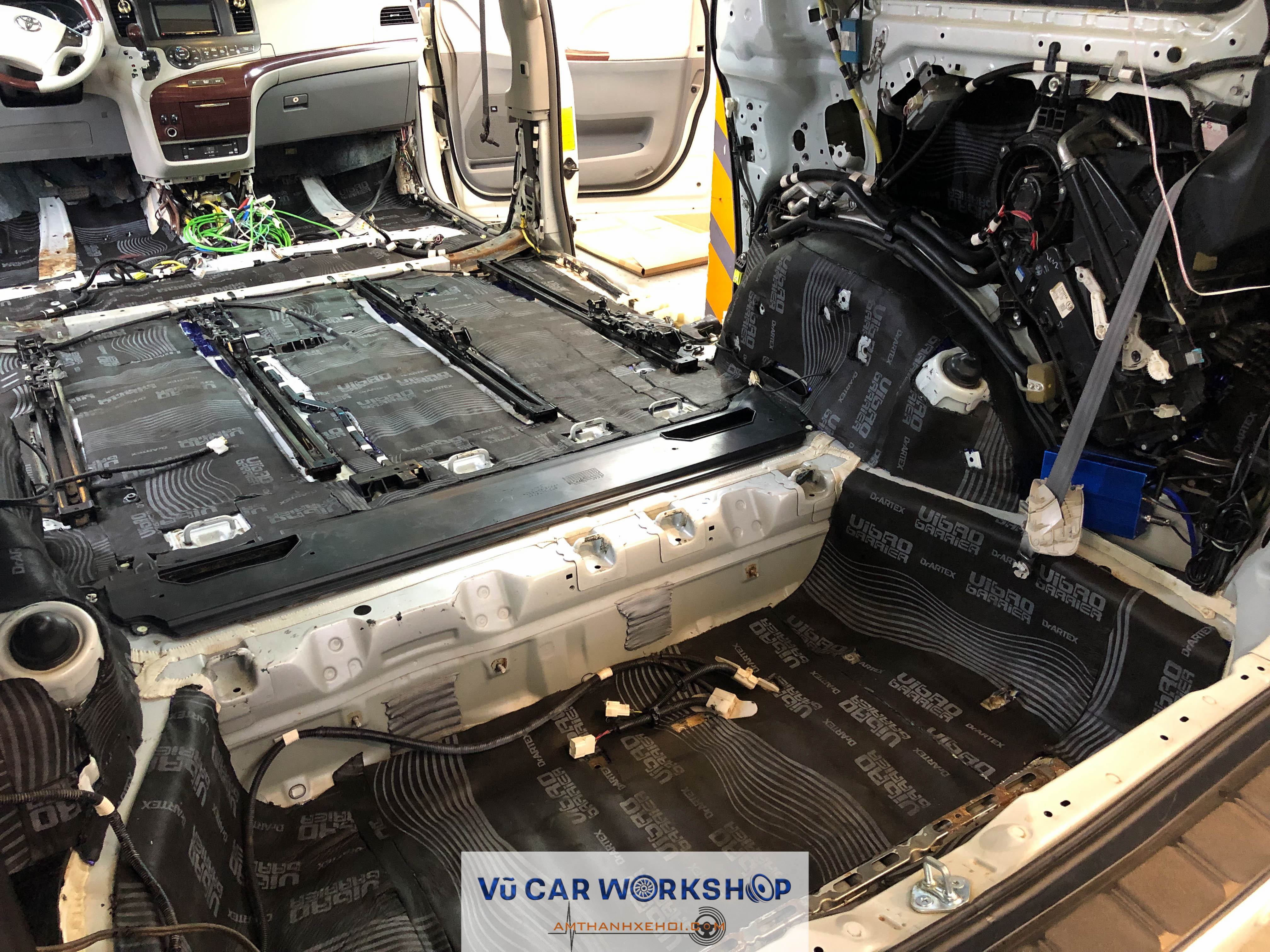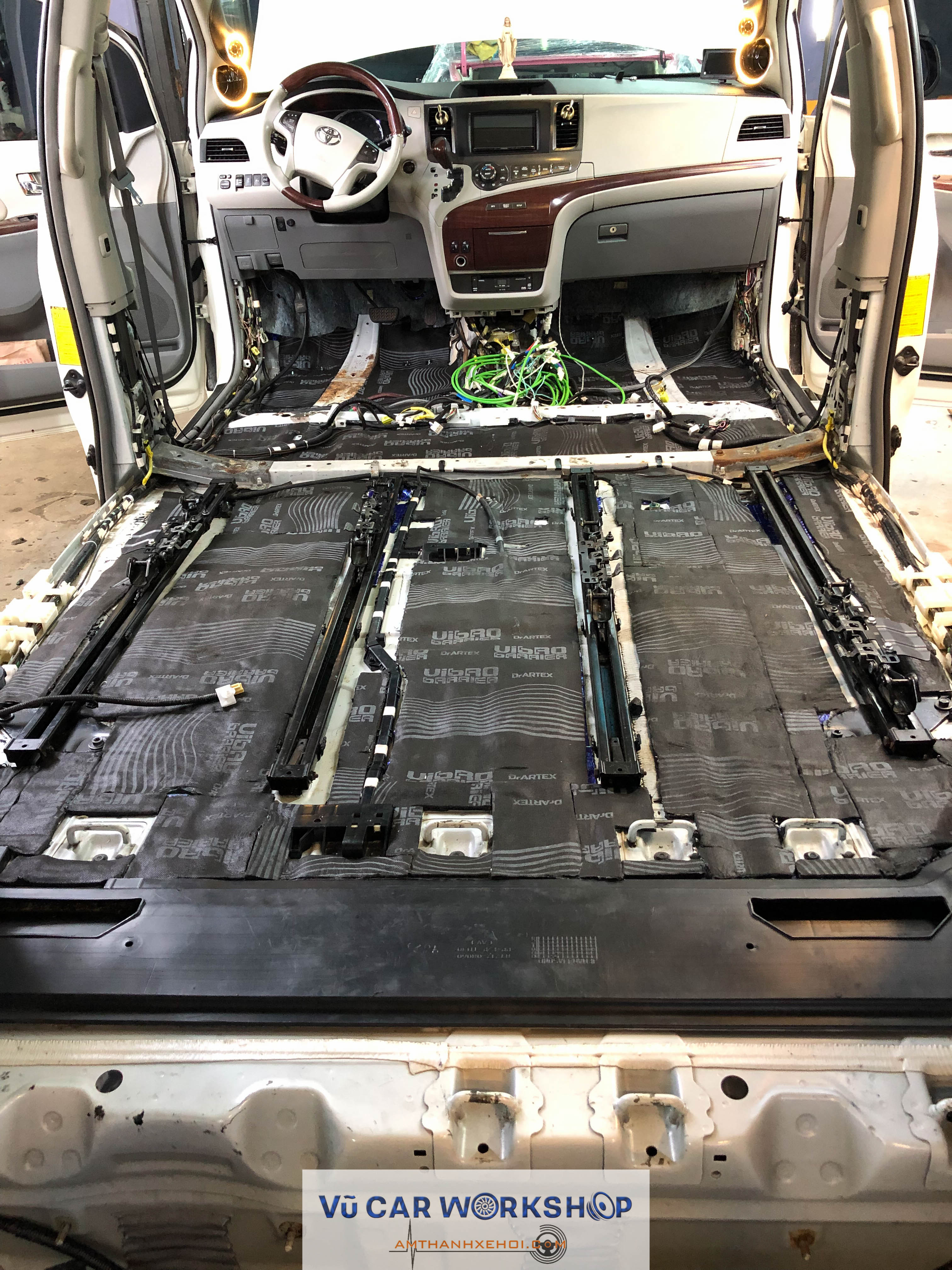 Vũ Car Workshop vừa hoàn thiện cách âm ba lớp cho xe Toyota Sienna với vật liệu DrArtex ở các vị trí: Sàn, cửa