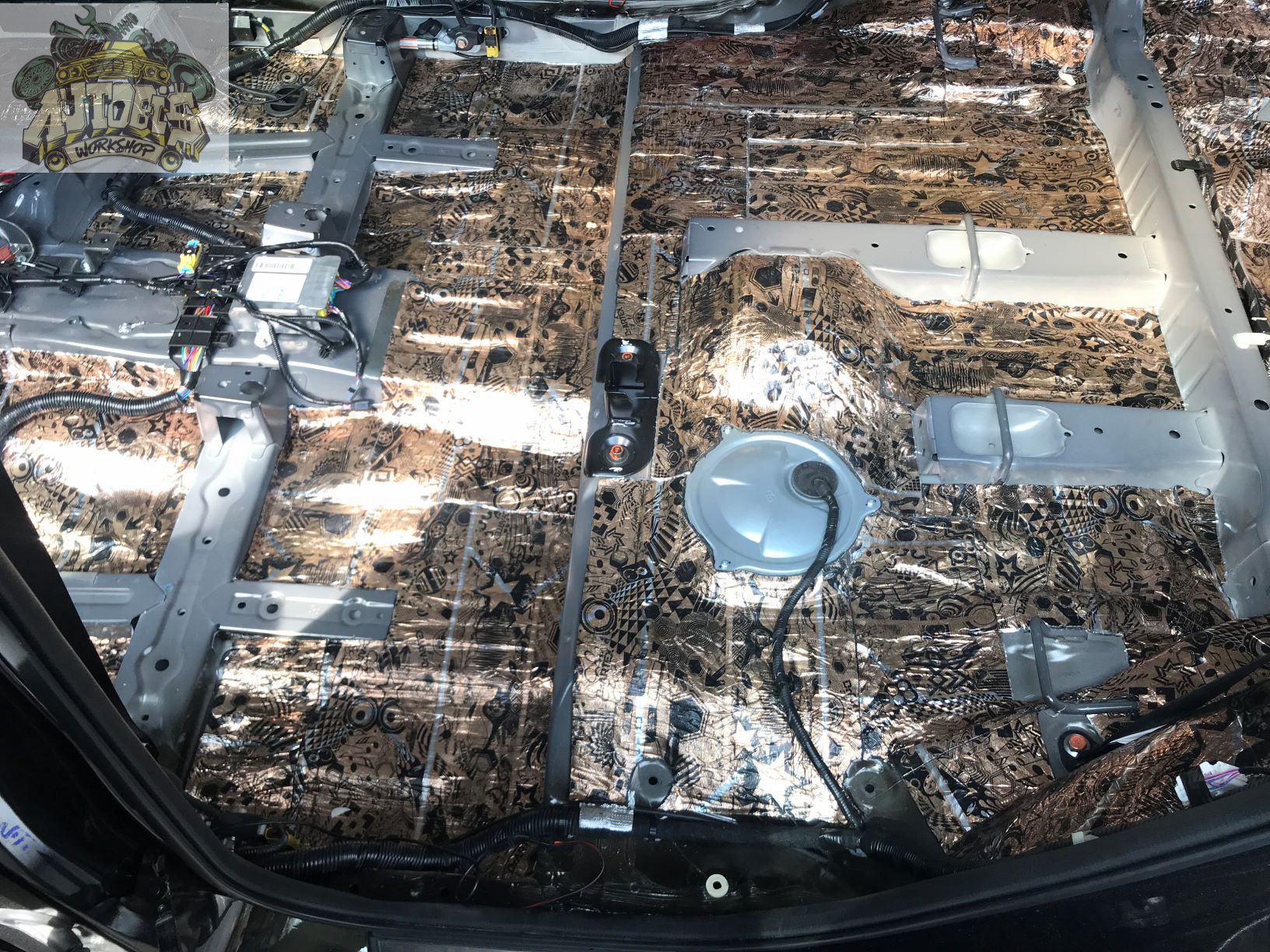Các vị trí trên xe có thể thi công dán vật liệu cách âm như: Sàn + cốp, trần, cửa, nắp capo và 4 hốc bánh xe.