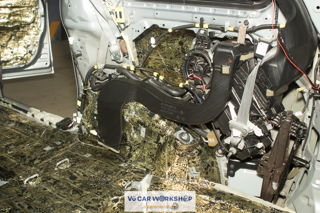 Lớp tiêu âm thứ 2 cho sàn xe bằng vật liệu Dr.ARTEX Baffle Plus.