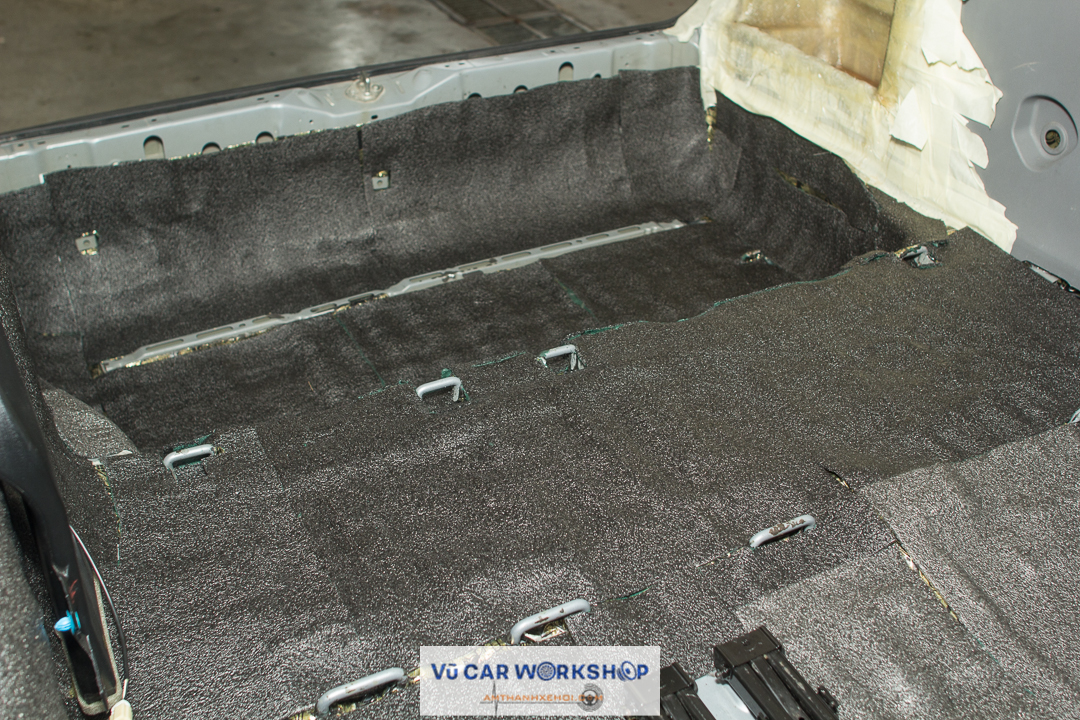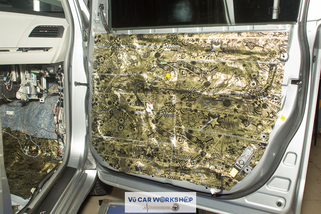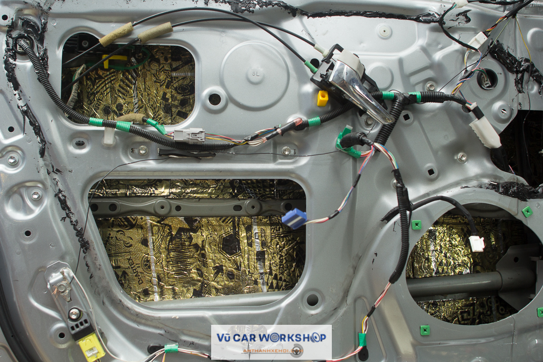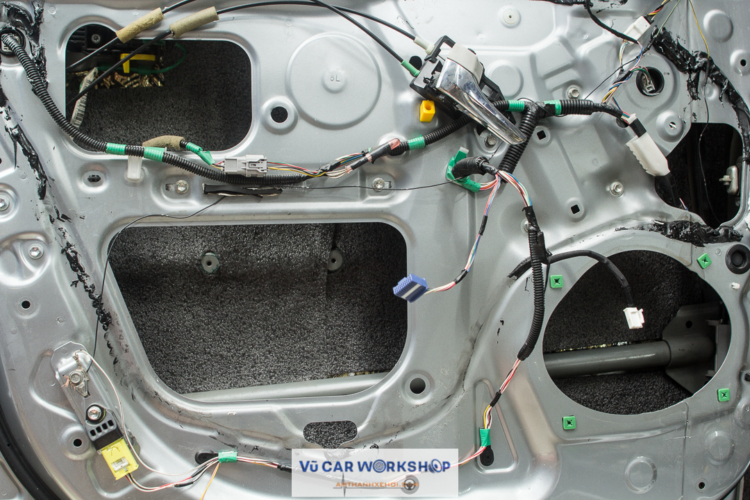 Tiến hành dán cách âm cho cửa xe. Đây là hình ảnh trước khi cửa được dán.