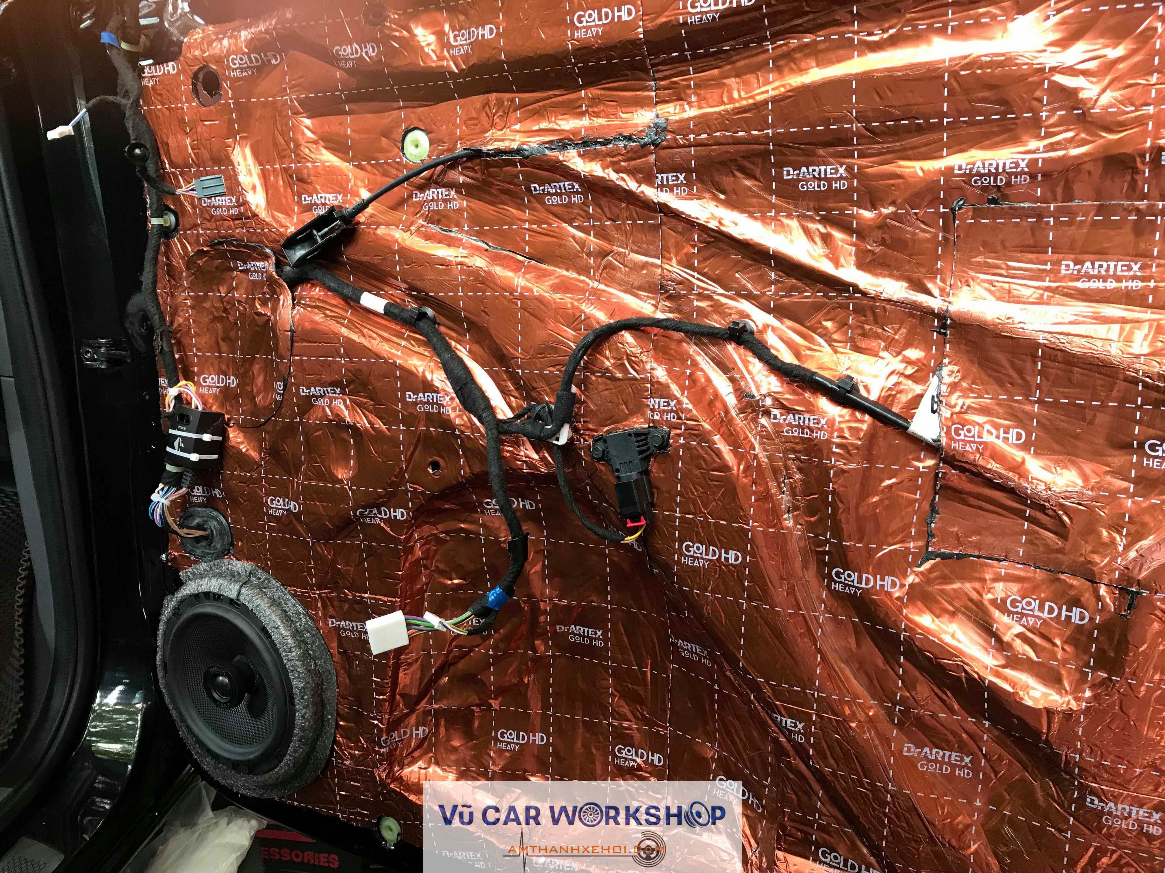 Vũ CAR WORKSHOP vừa hoàn thiện cách âm ba lớp cửa với vật liệu DrARTEX – Made In Russia. Cùng với đó là nâng cấp hai cặp loa cửa cho xe Ford Ranger