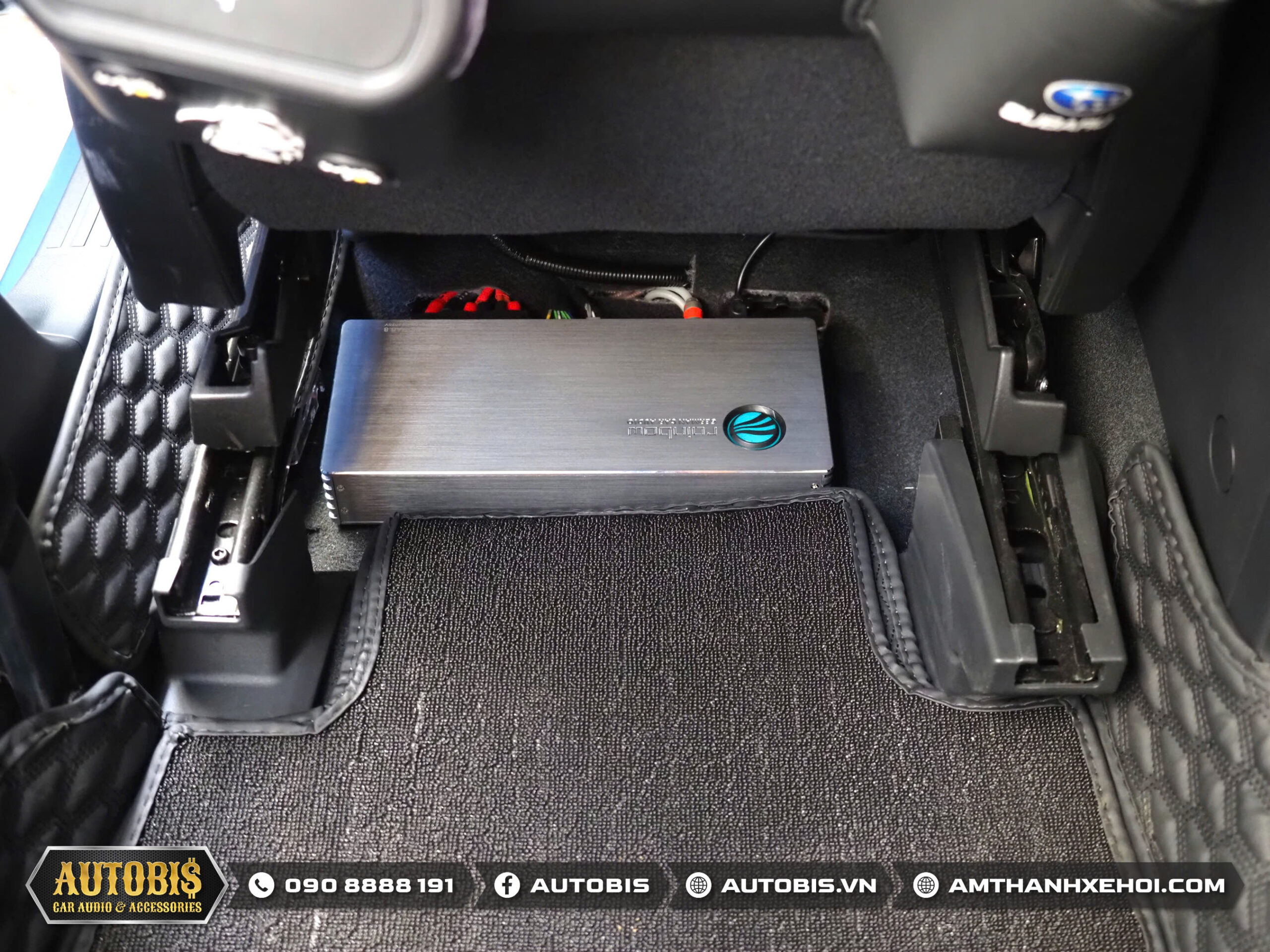 Phần quan trọng của hệ thống là bộ xử lý tín hiệu tích hợp amply Rainbow EL-PA6.8 đươc trang bị chức năng bluetooth và usb giúp giải quyết phần nguồn phát nhạc chất lượng cao mà đầu đĩa zin không thể đáp ứng được . DSP đặt dưới ghế bên tài , tất cả phần dây được thi công gọn gàng và thẩm mỹ.