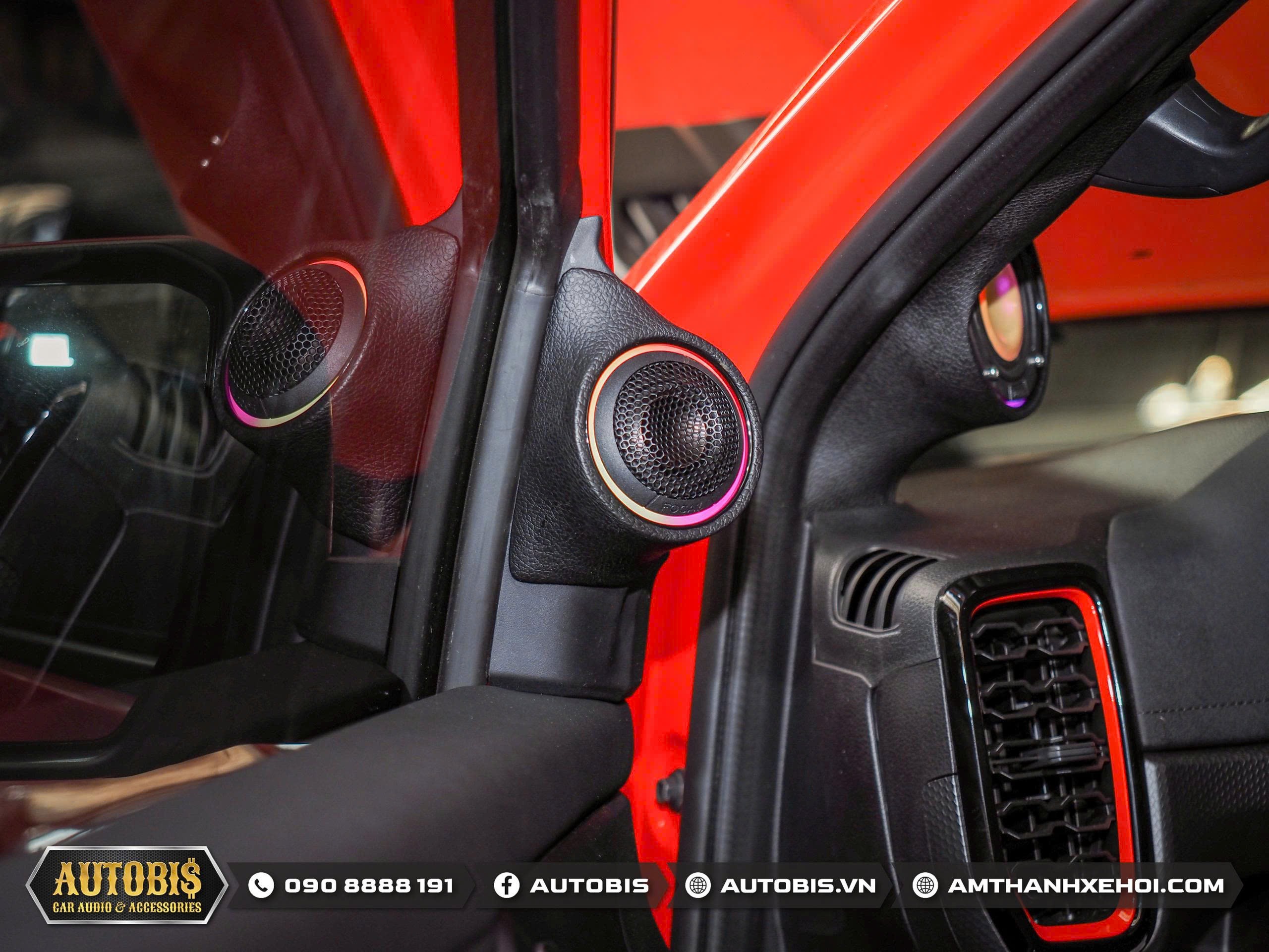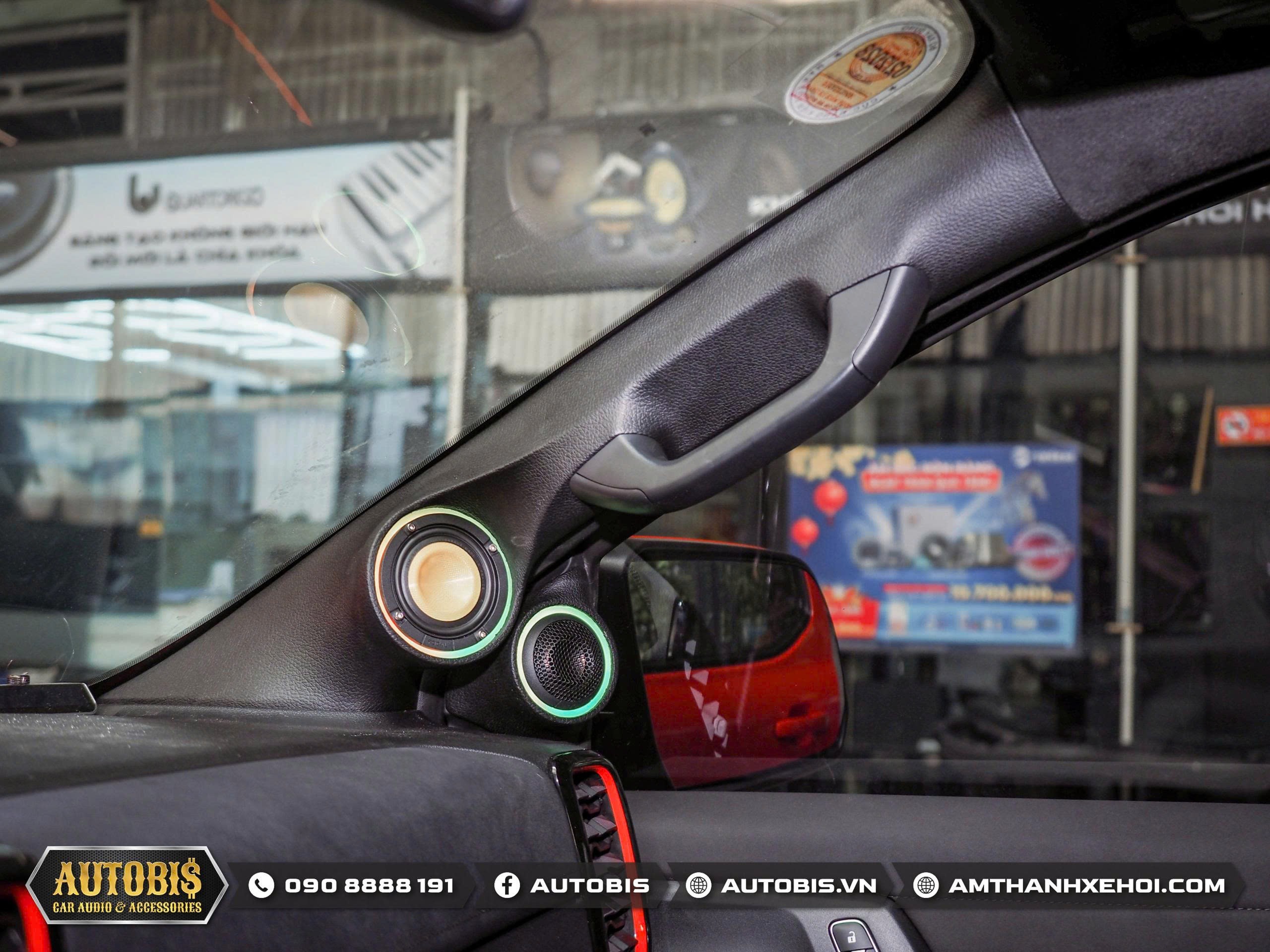 Do là bộ loa 3way loa mid được thi công trên vị trí cột A sao cho không cản trở tầm nhìn nhưng vẫn cho hướng âm tốt nhất cho người nghe.