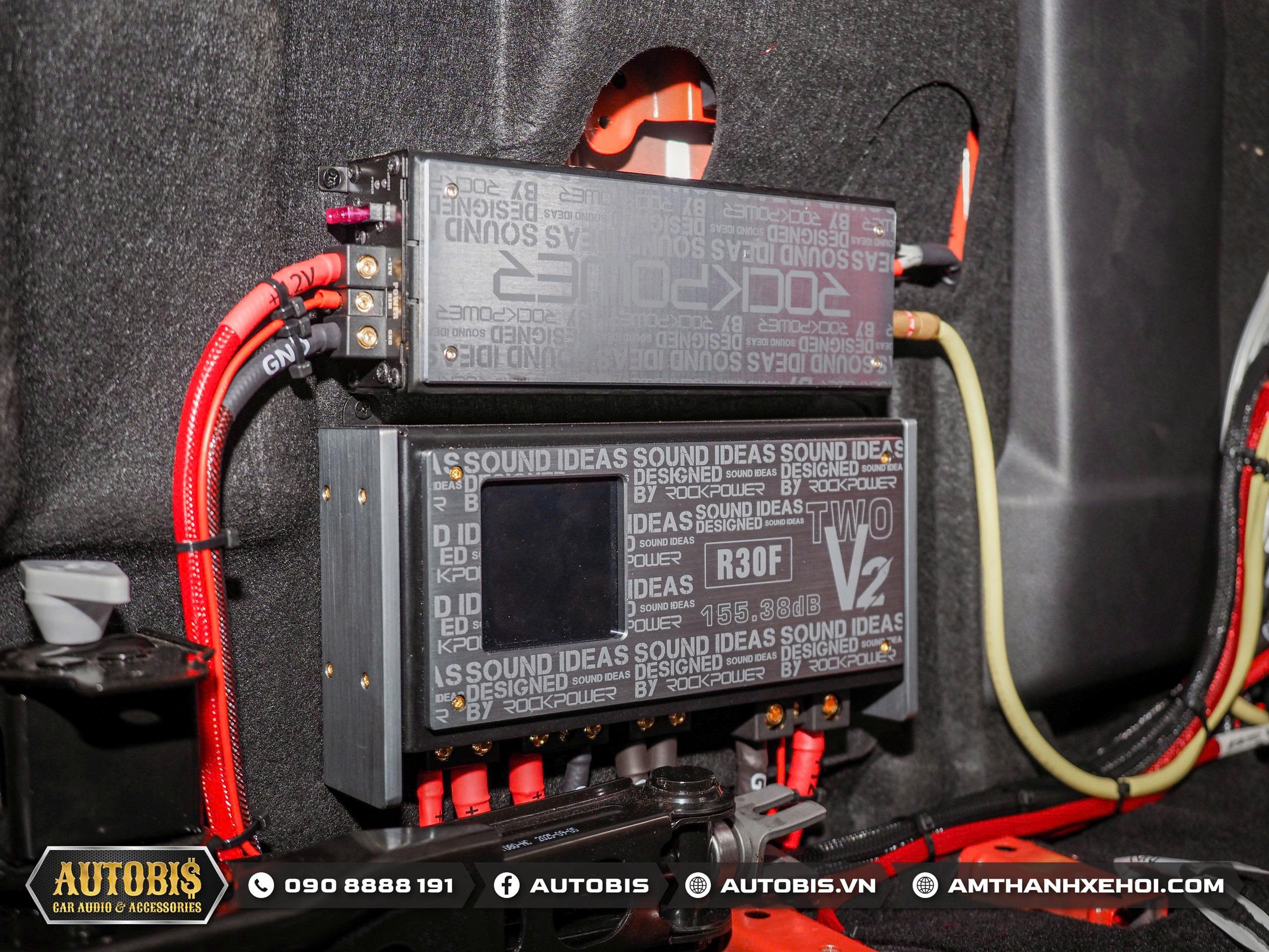 Ampli Rockpower SQ One V2 và tụ điện Rockpower R30F V2 được lắp ở phía sau hàng ghế sau