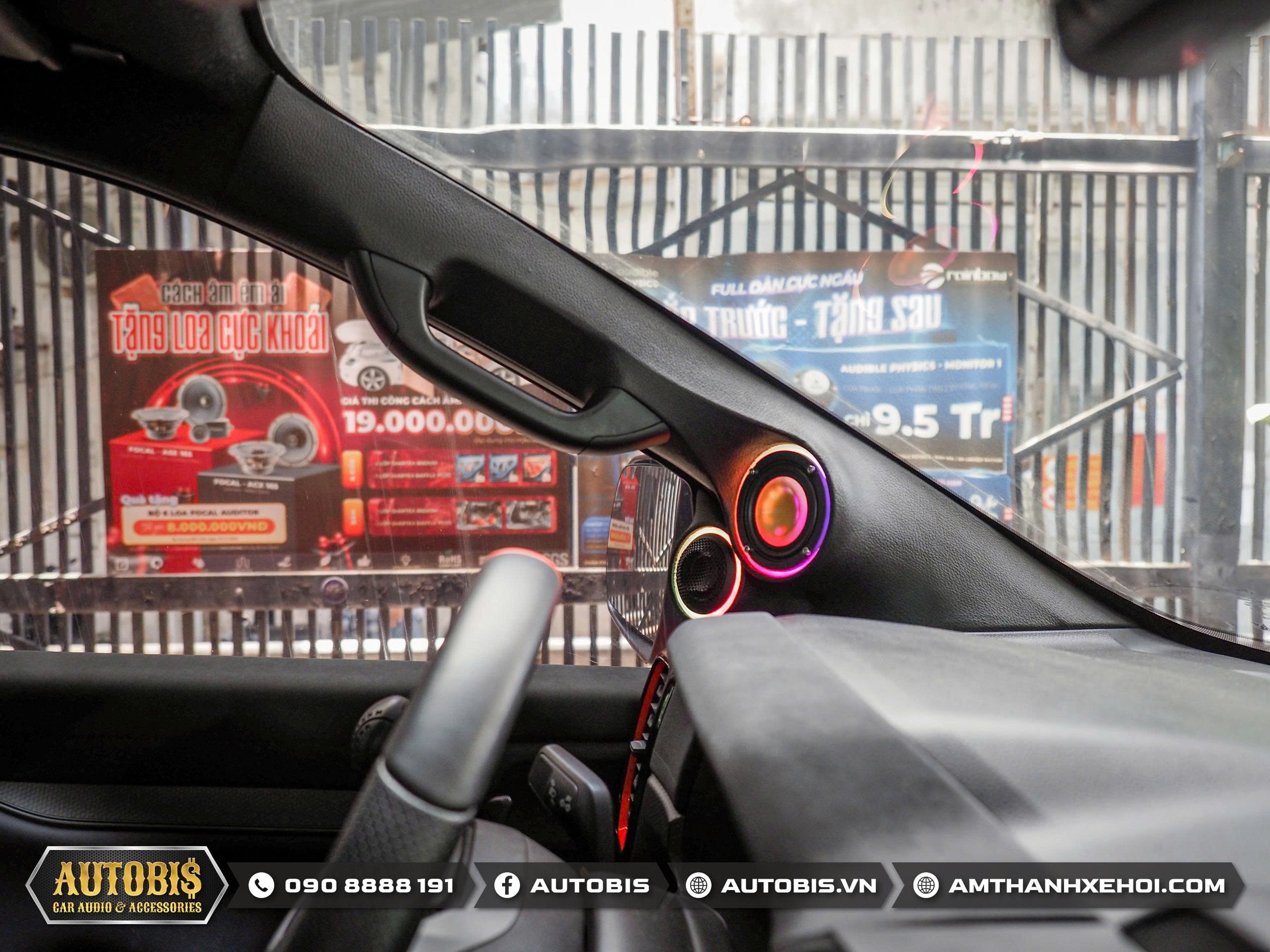 Do là bộ loa 3way loa mid được thi công trên vị trí cột A sao cho không cản trở tầm nhìn nhưng vẫn cho hướng âm tốt nhất cho người nghe.
