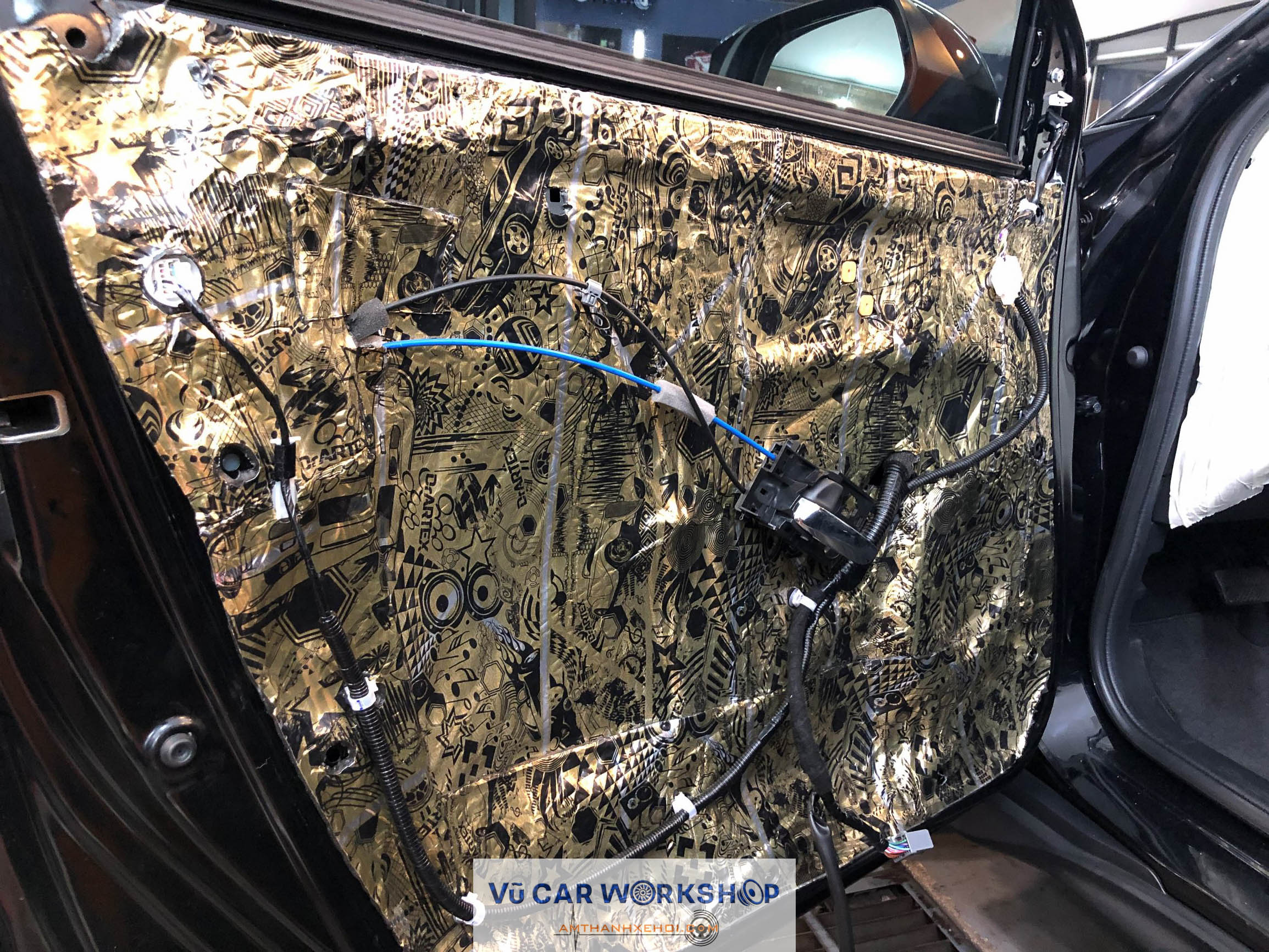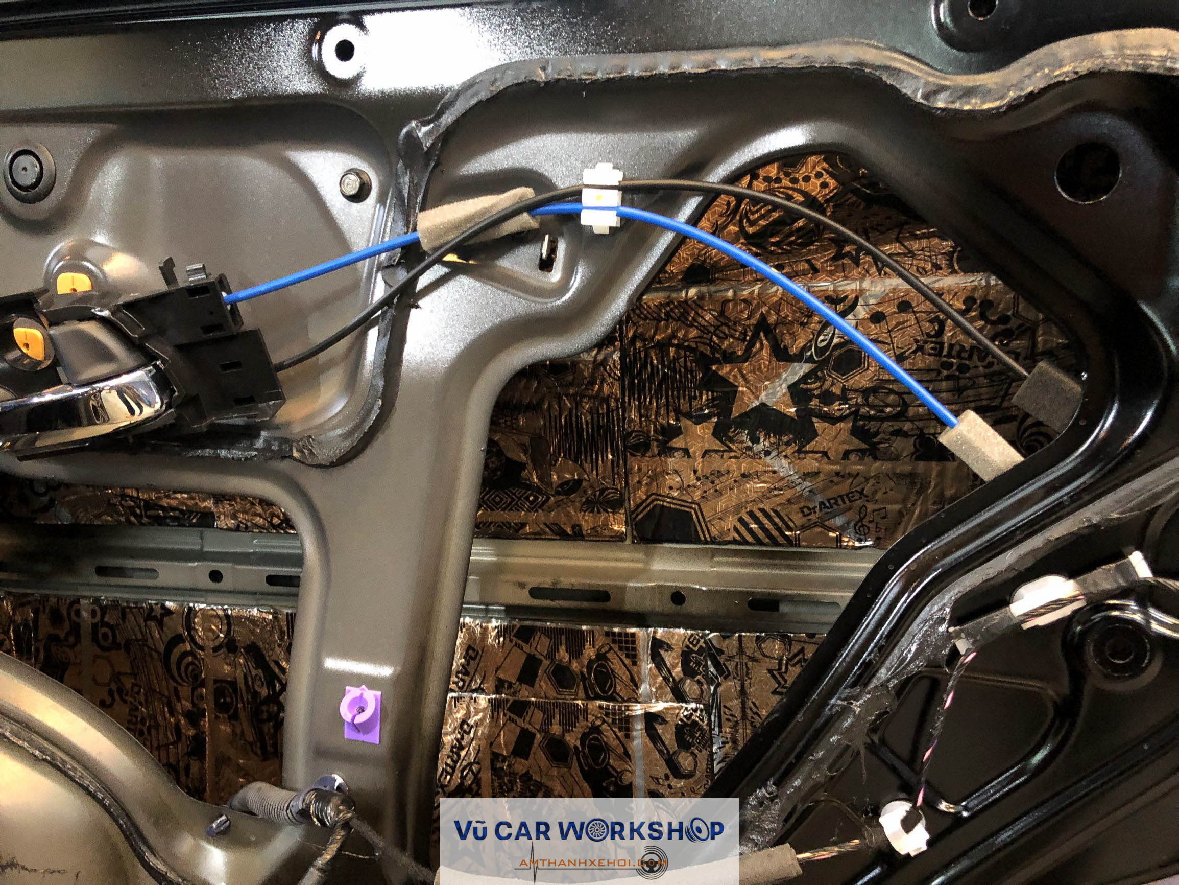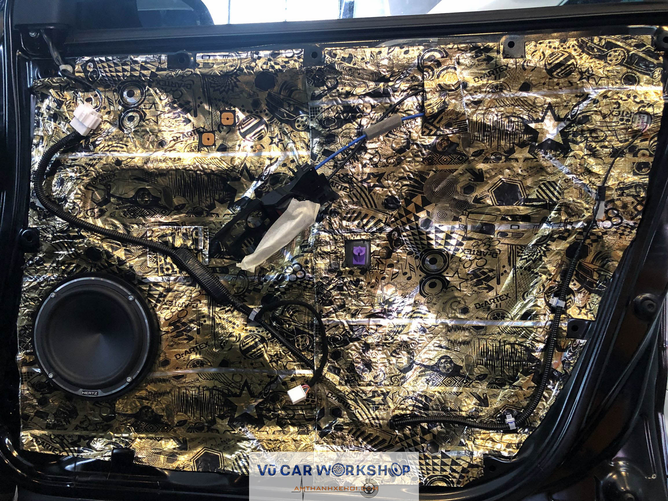 Cửa xe được cách âm bằng vật liệu DrArtex – Made In Russia với 3 lớp vật liệu.