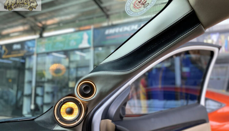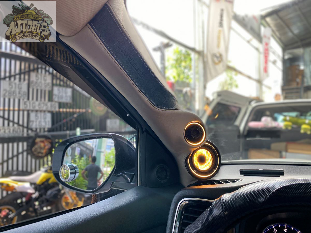 2 loa mid và treble thi công trên Cột A
