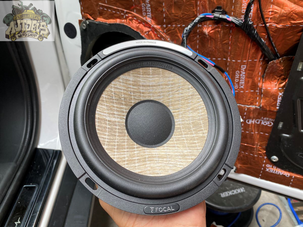 Loa bass của bộ Focal 165 F3E được thi công ở vị trí zin của 2 cửa trước