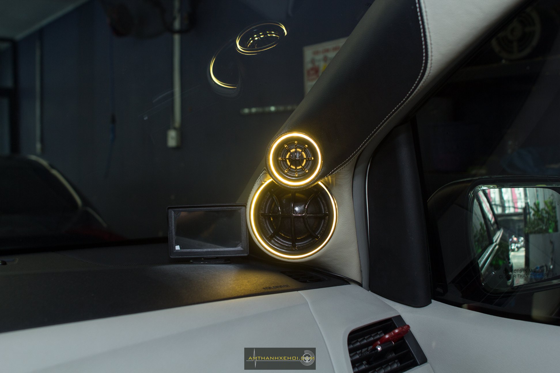 Cặp loa 3 ways cho cửa trước với 2 loa mid treble được thiết kế lên Cột A