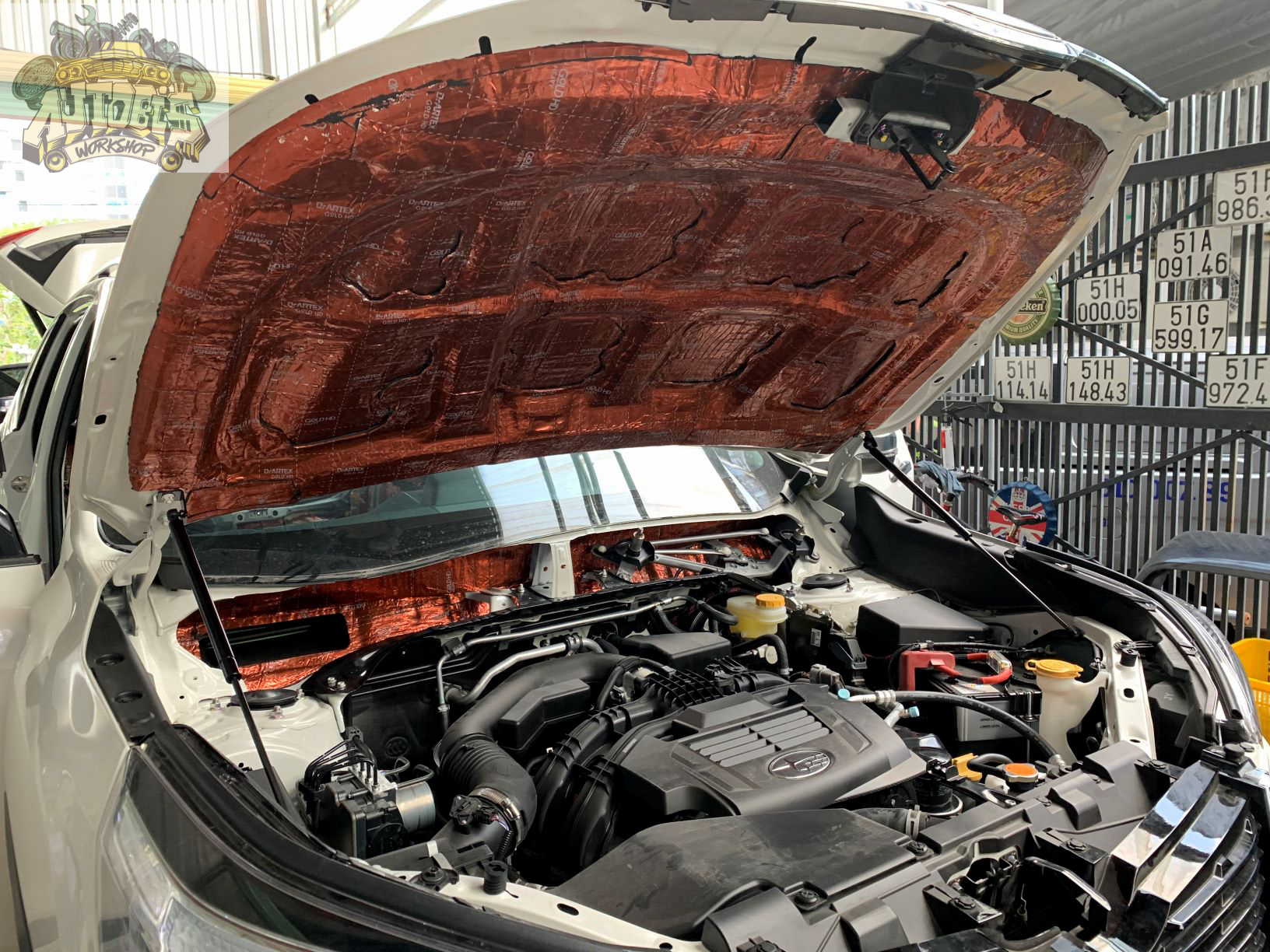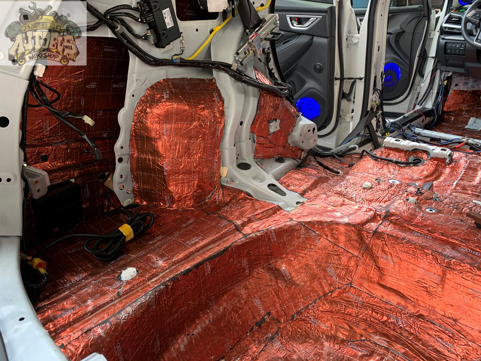 – Cách âm toàn bộ xe với các vị trí như sàn, cửa, trần, hốc bánh và nắp capo với vật liệu Dr Artex.