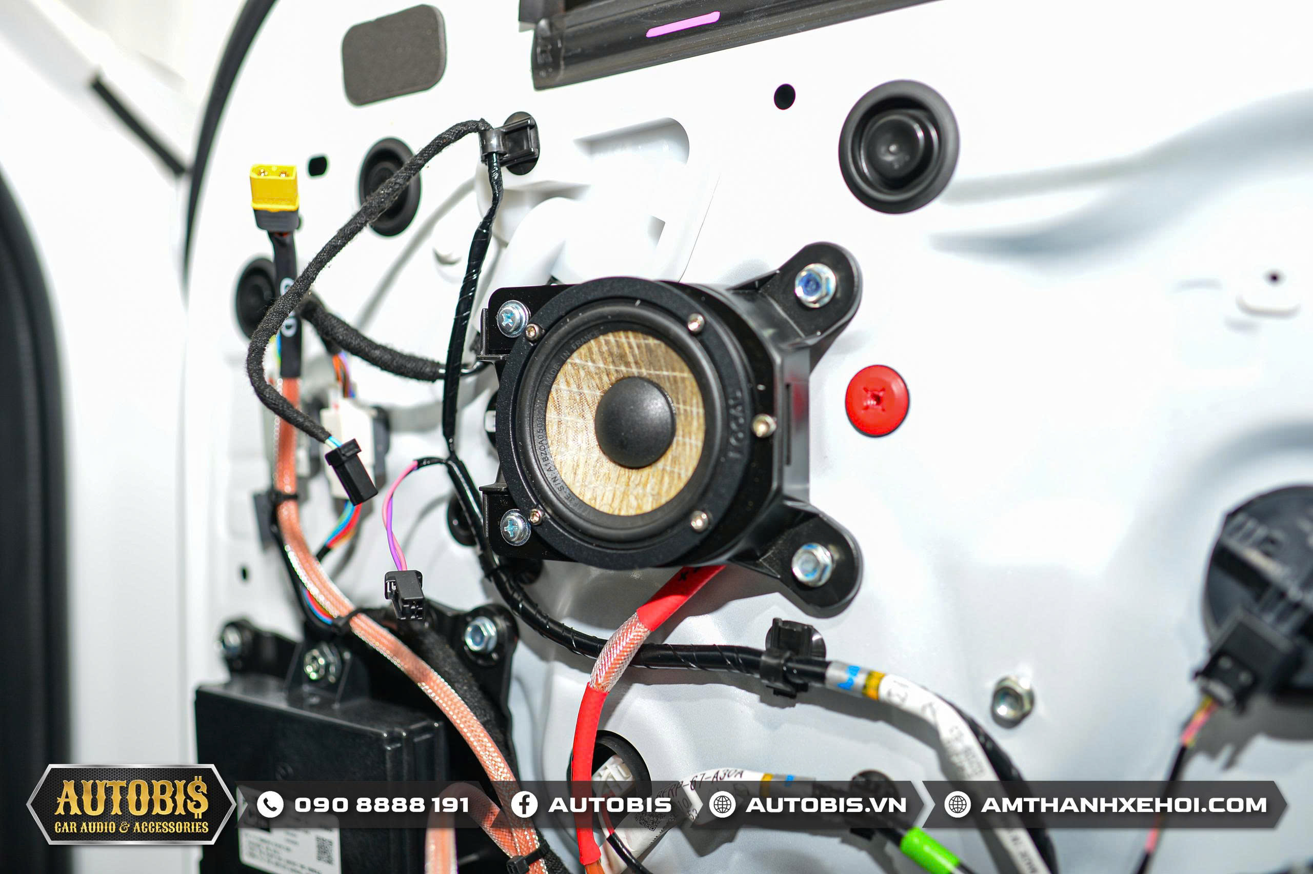 Loa bass zin nguyên bản chỉ có kích thước 4inch nên cần phải xử lí lại dưỡng loa để có thể gắn vừa loa bass Focal thay thế. Đội ngũ chế tác của AUTOBIS đã thi công lại phần loa bass cực kì thẩm mỹ để gắn vào vị trí zin trên xe.