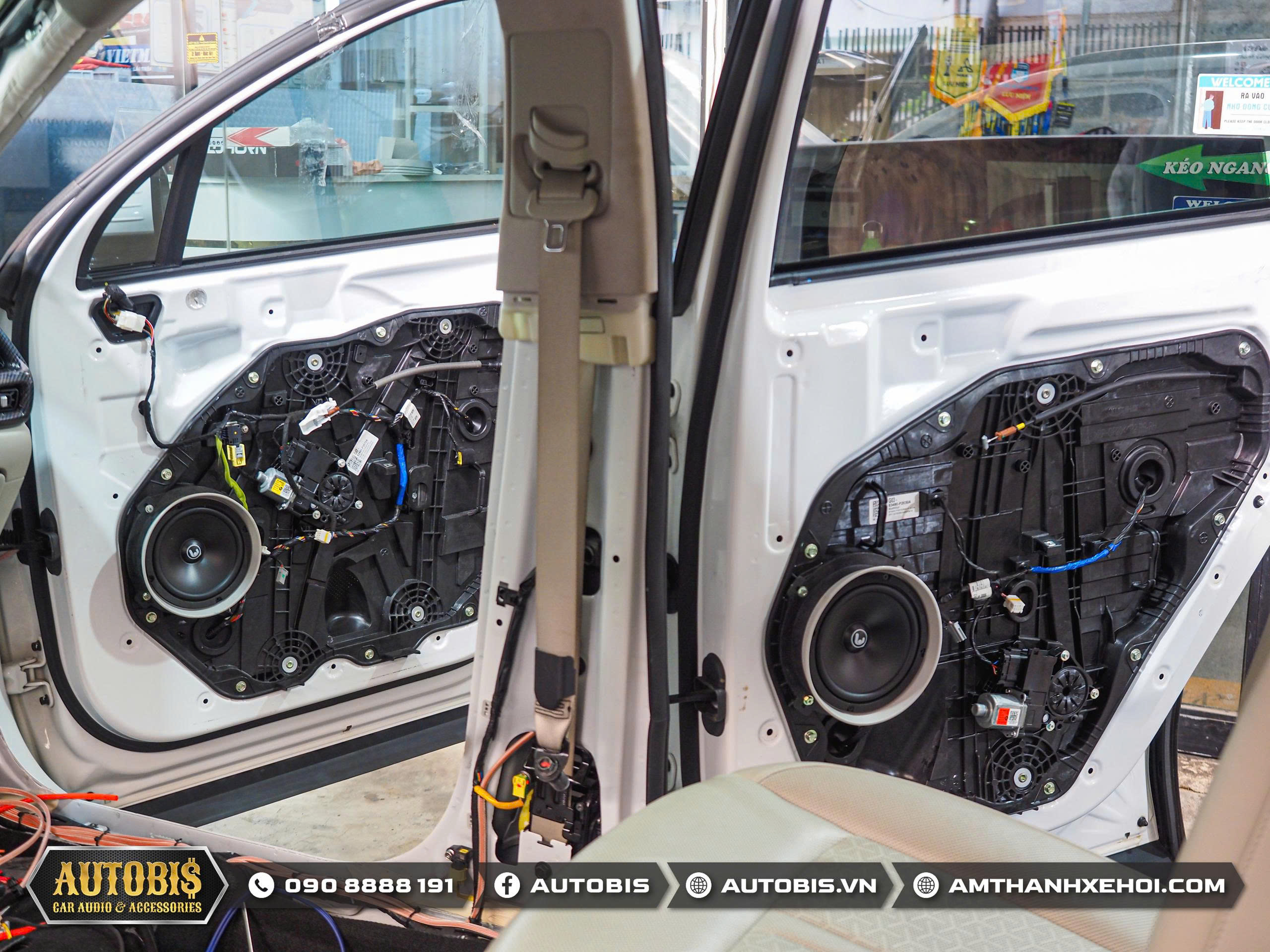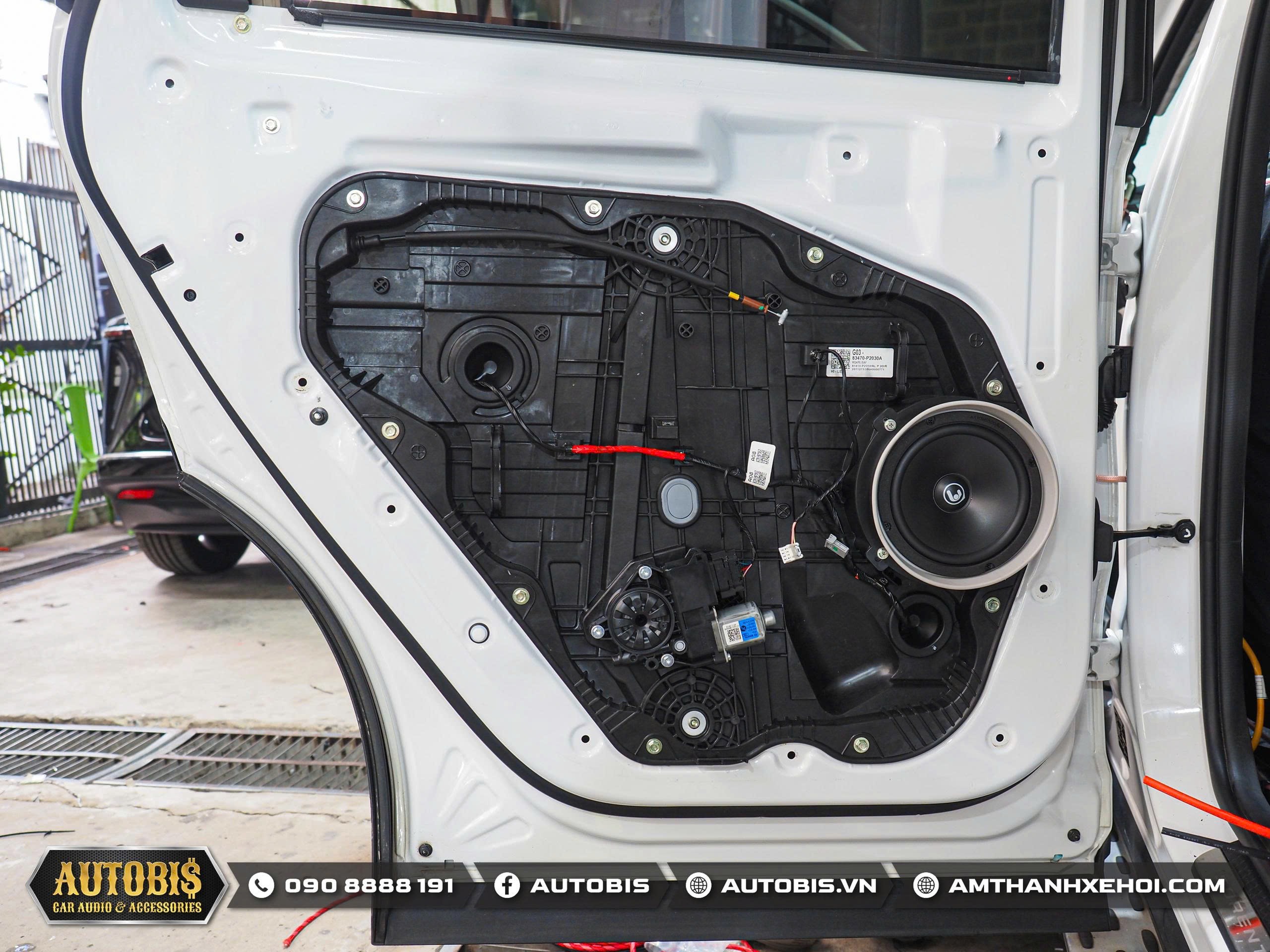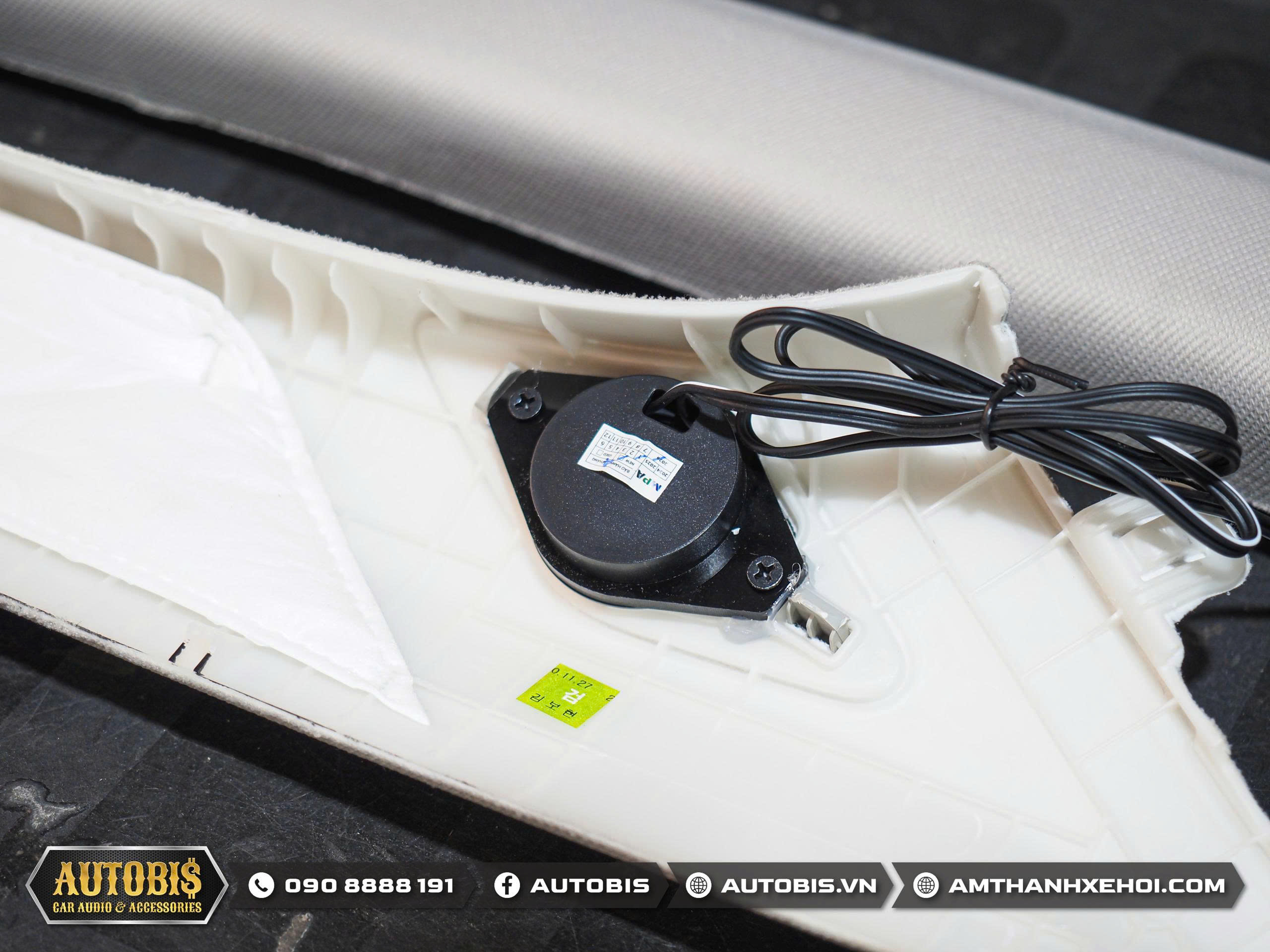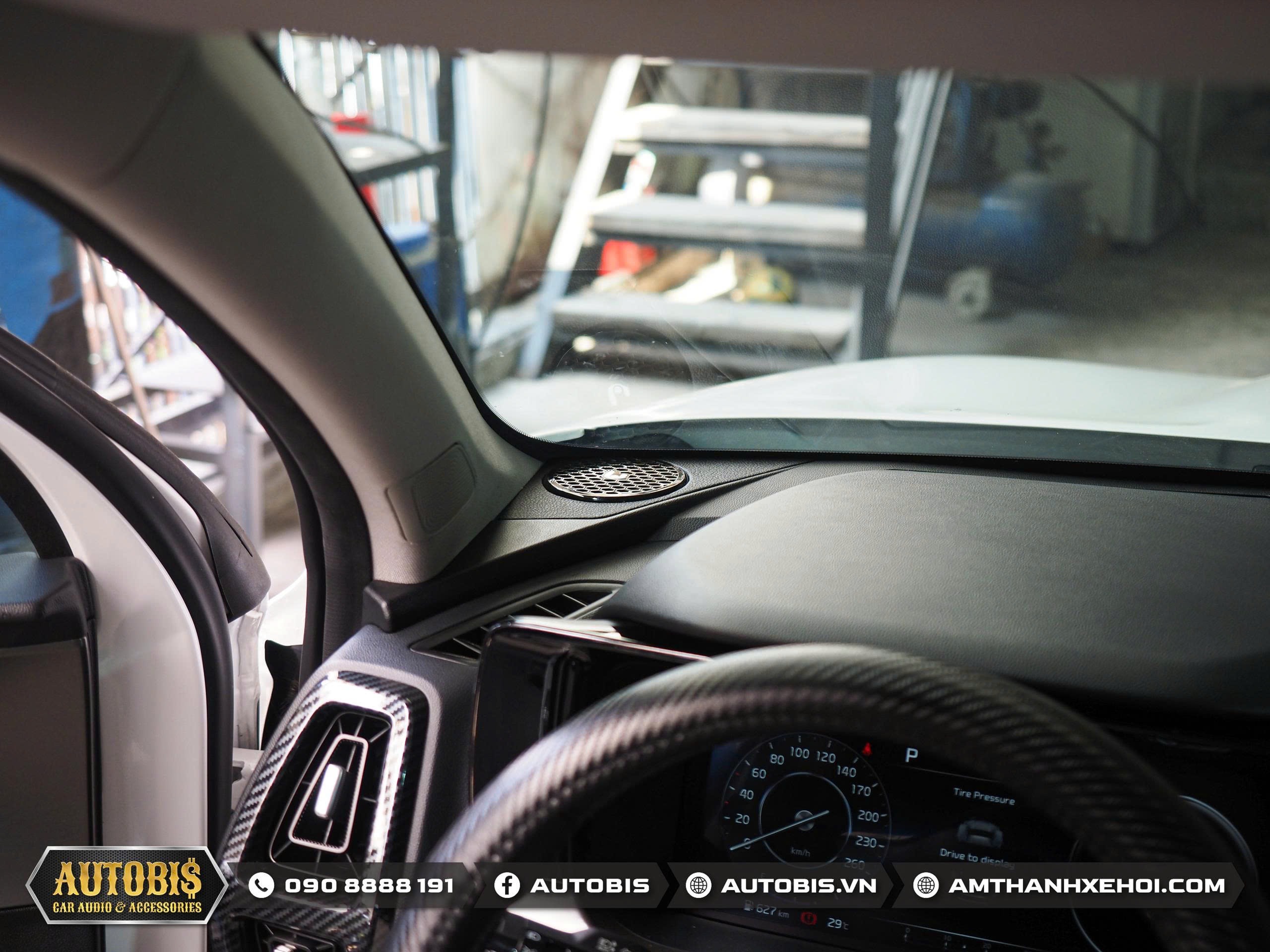 Việc nâng cấp âm thanh cho Kia Sorento trở nên rất dễ dàng do xe đã được trang bị hệ thống loa 3-way ở hàng ghế trước, AUTOBIS đã lựa chọn lắp đặt bộ loa 3 đường tiếng Quartorigo Atto 1 trực tiếp vào đúng vị trí zin, tận dụng tối đa kết cấu sẵn có của xe mà không cần phải chế tác hay làm lại cột A. Giải pháp này vừa đảm bảo tính thẩm mỹ nguyên bản, vừa mang lại chất lượng âm thanh vượt trội với dải trung rõ nét, dải cao mượt mà và sân khấu âm thanh cân đối.