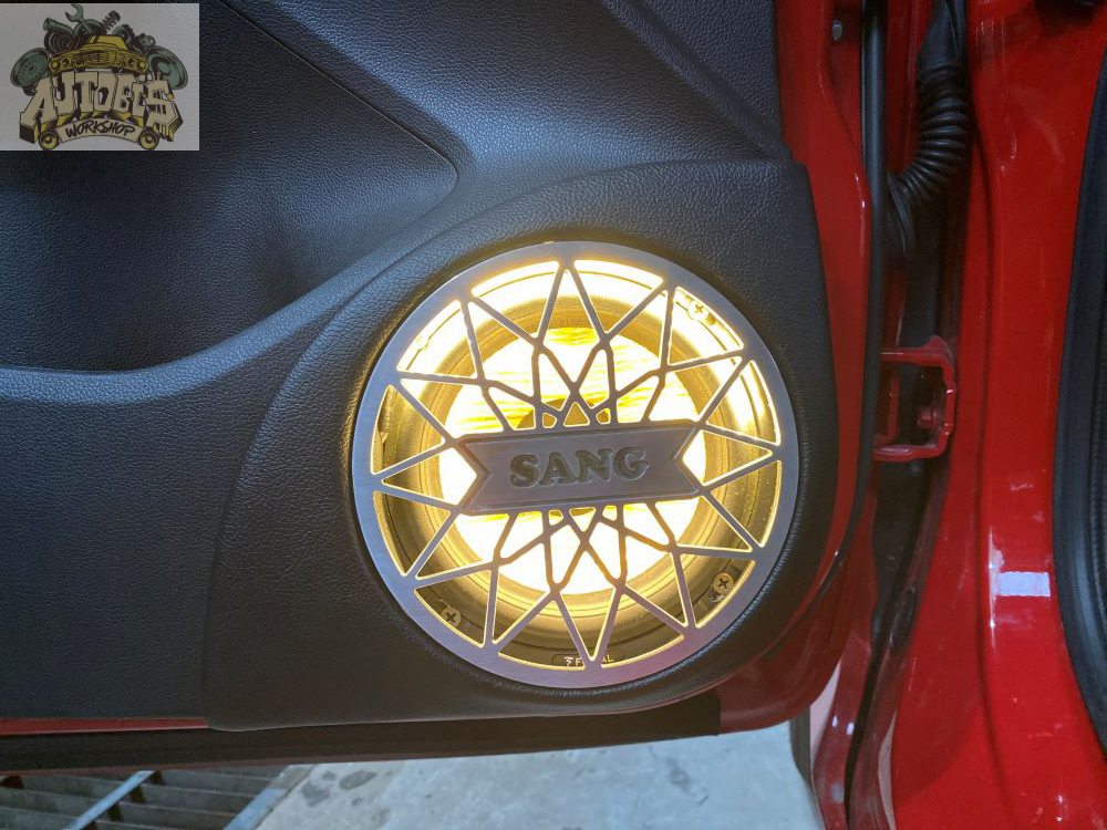 Loa woofer được thi công chế tác trên 2 cửa tài phụ với màn bảo vệ