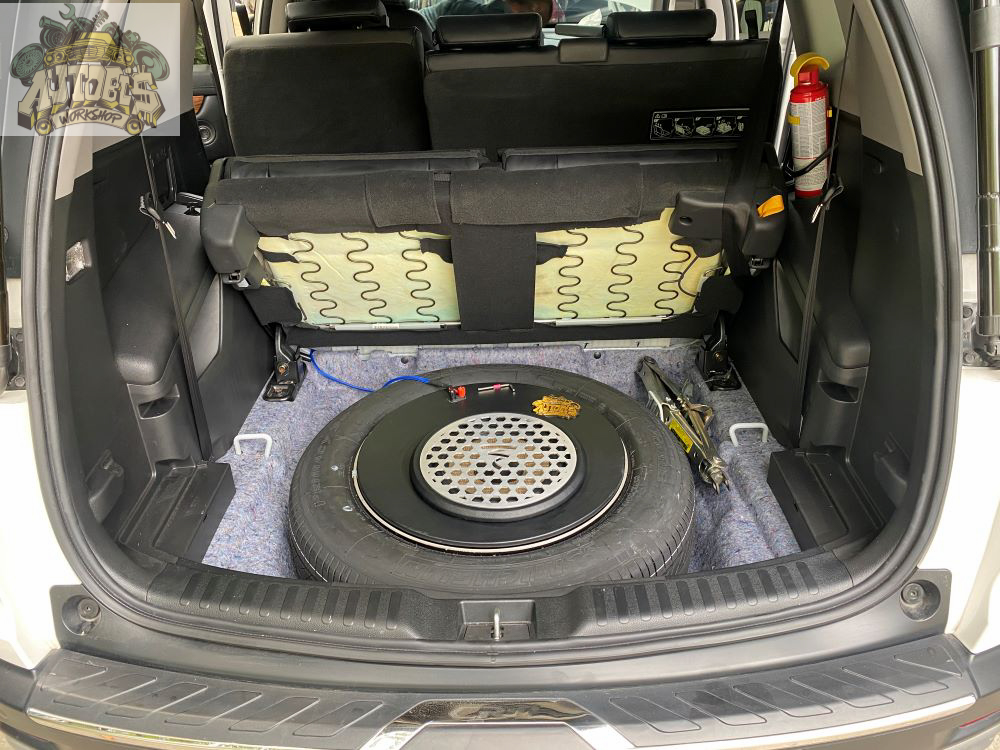AUTOBIS đã thiết kế sub loại 10″ vào trong lòng bánh dự phòng cho Honda CRV