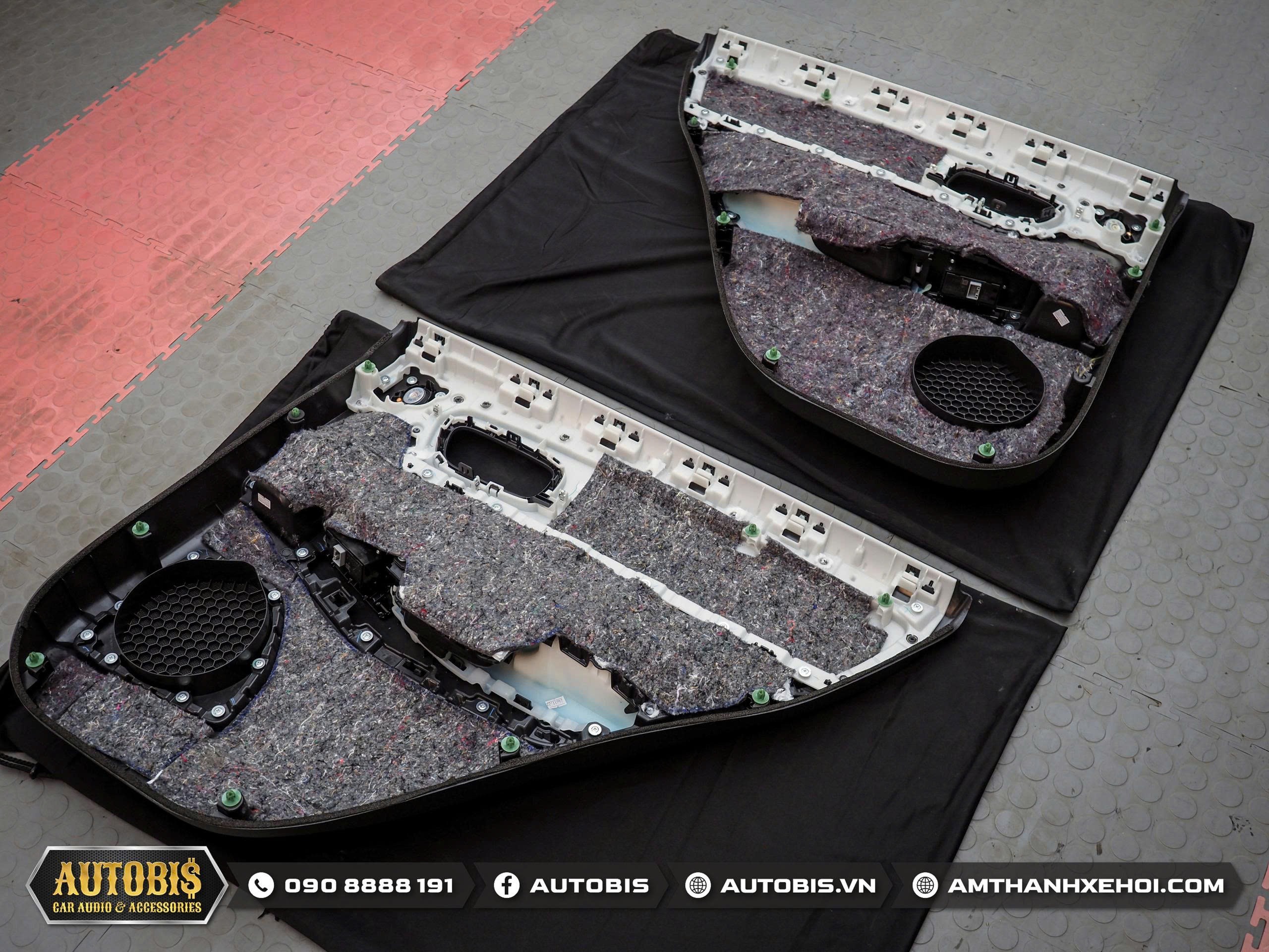 Đặc biệt Autobis cũng thi công trên tapi cửa bằng nhựa của xe bằng vật liệu Vibrofiltr Felt Acoustic để tối ưu được tiếng ồn phía hai bên xe