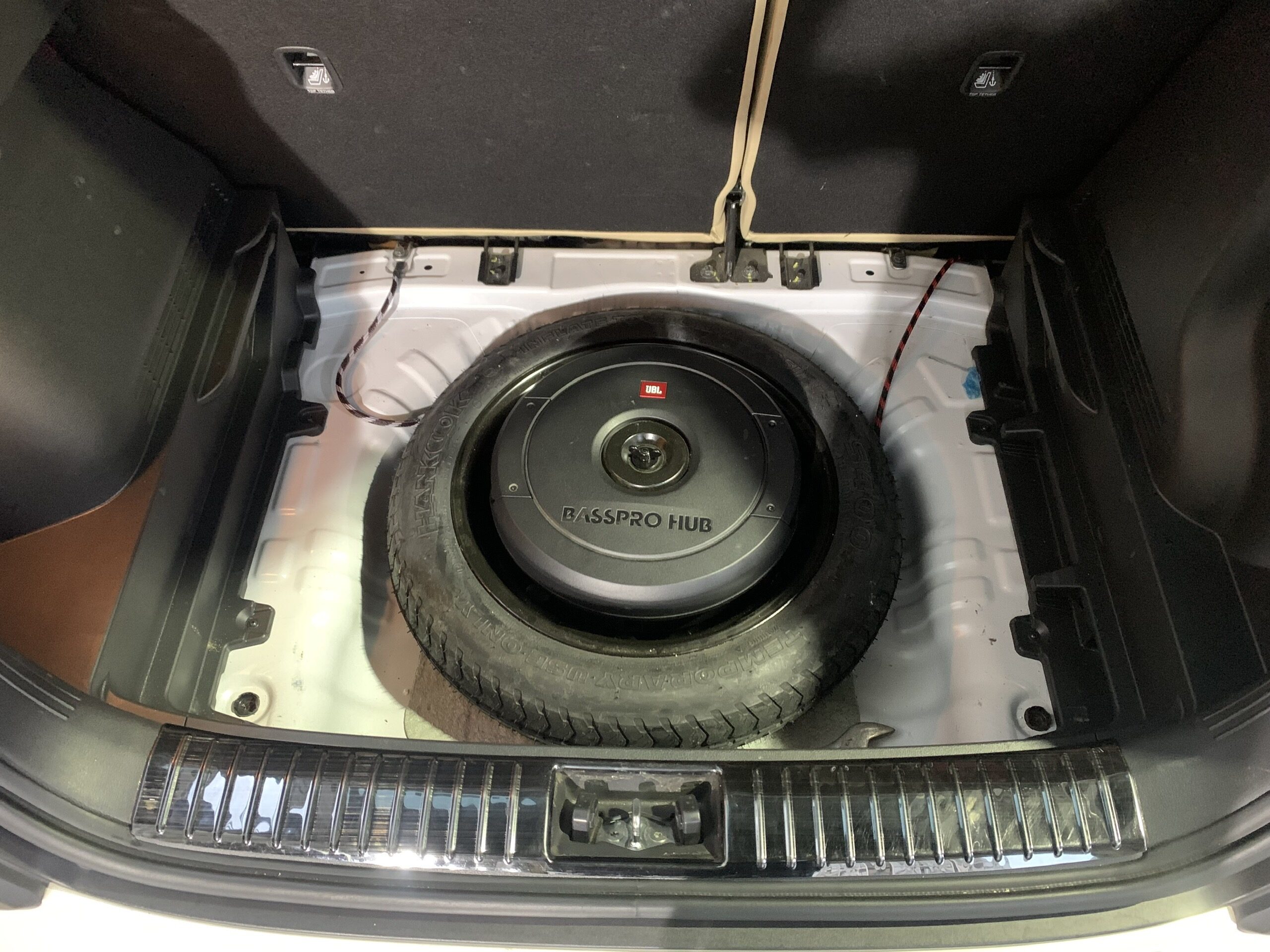 Subwoofer JBL BassPro Hub được lắp ở hốc bánh sơ cua
