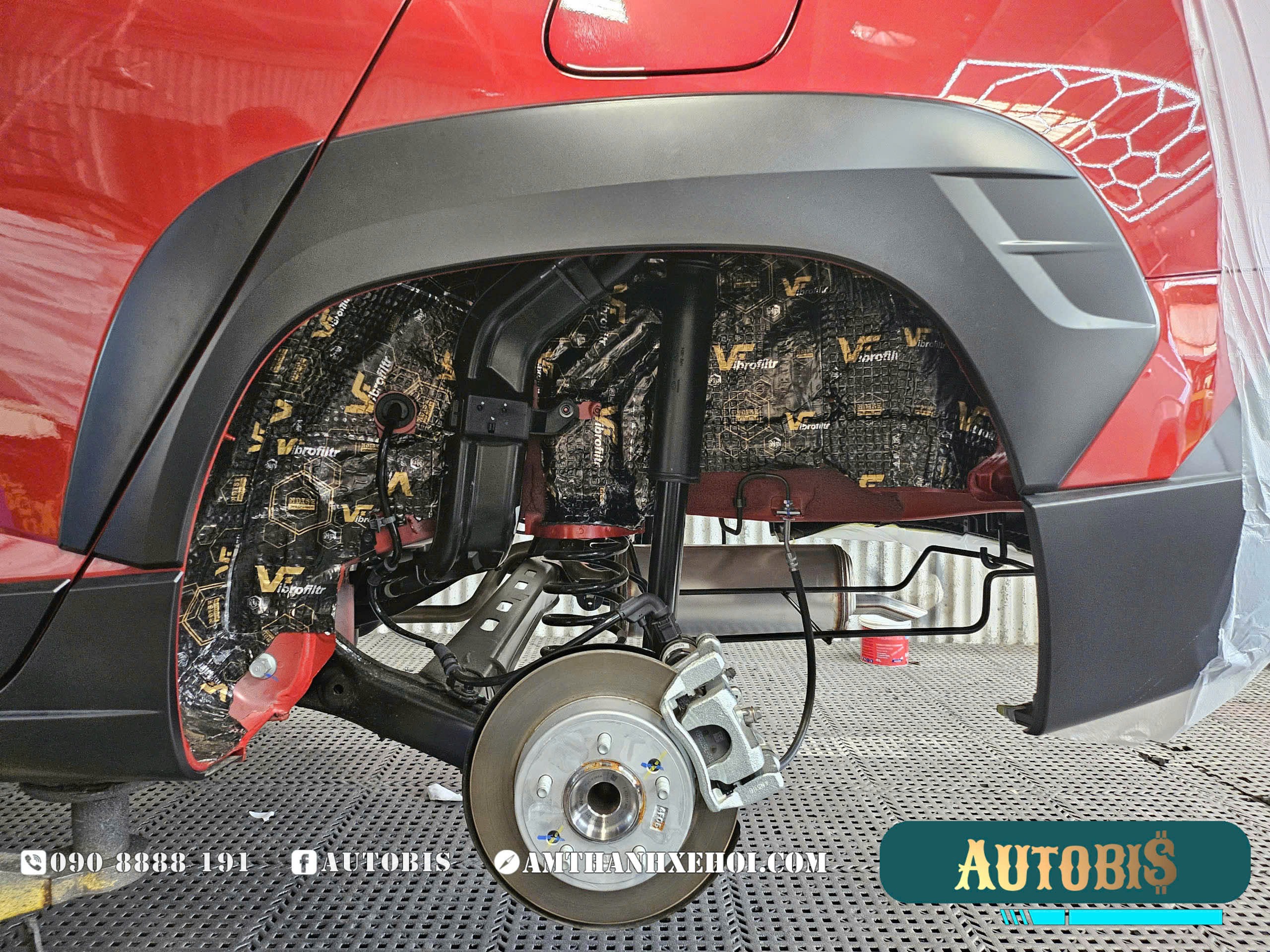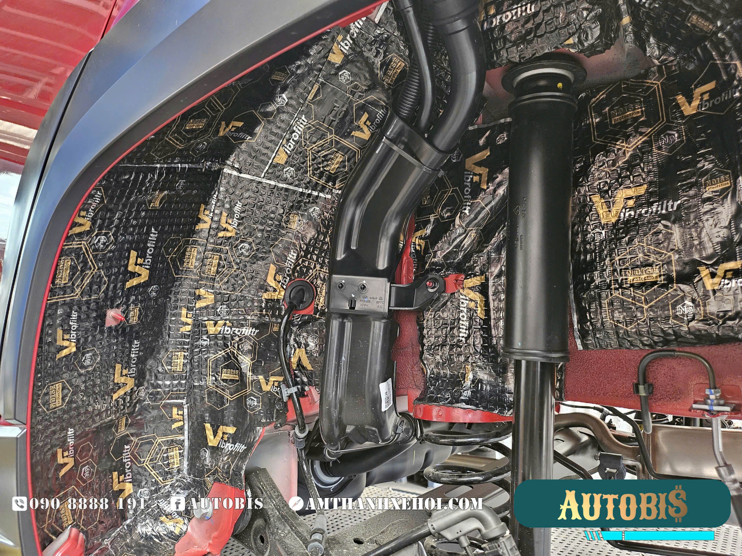– Cách âm hốc bánh + lòng vè: Vị trí hốc bánh tuy nhỏ hơn sàn, nhưng cũng là các nguyên nhân gây ồn hoặc ù từ mặt đường dội vào khoang xe. Hốc bánh chịu ảnh hưởng từ bánh xe, lốp xe ma sát trực tiếp với mặt đường gây tiếng ồn cực khó chịu khi lái xe đường dài.