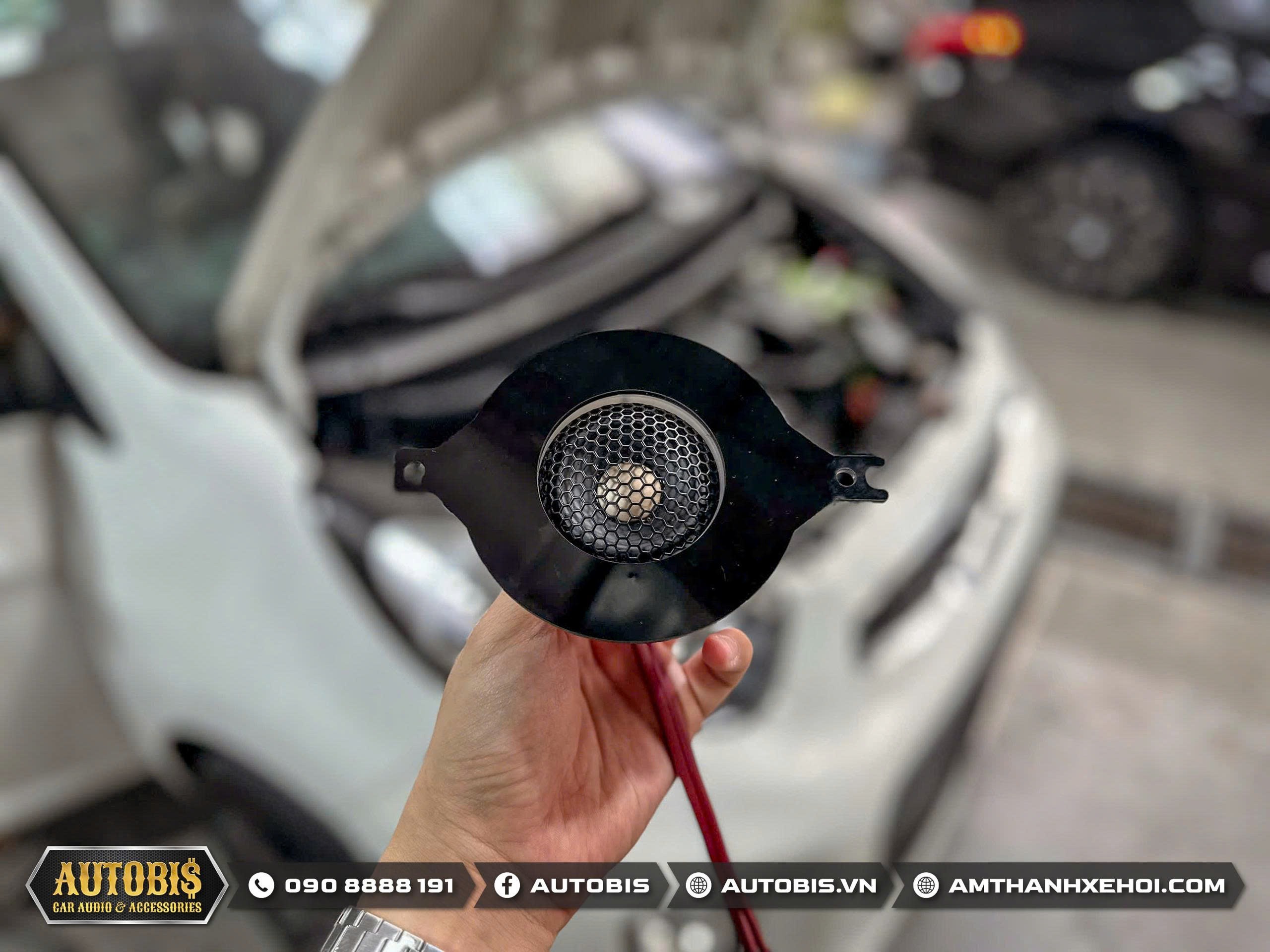 Hình ảnh loa treble được thi công lắp đặt trên xe