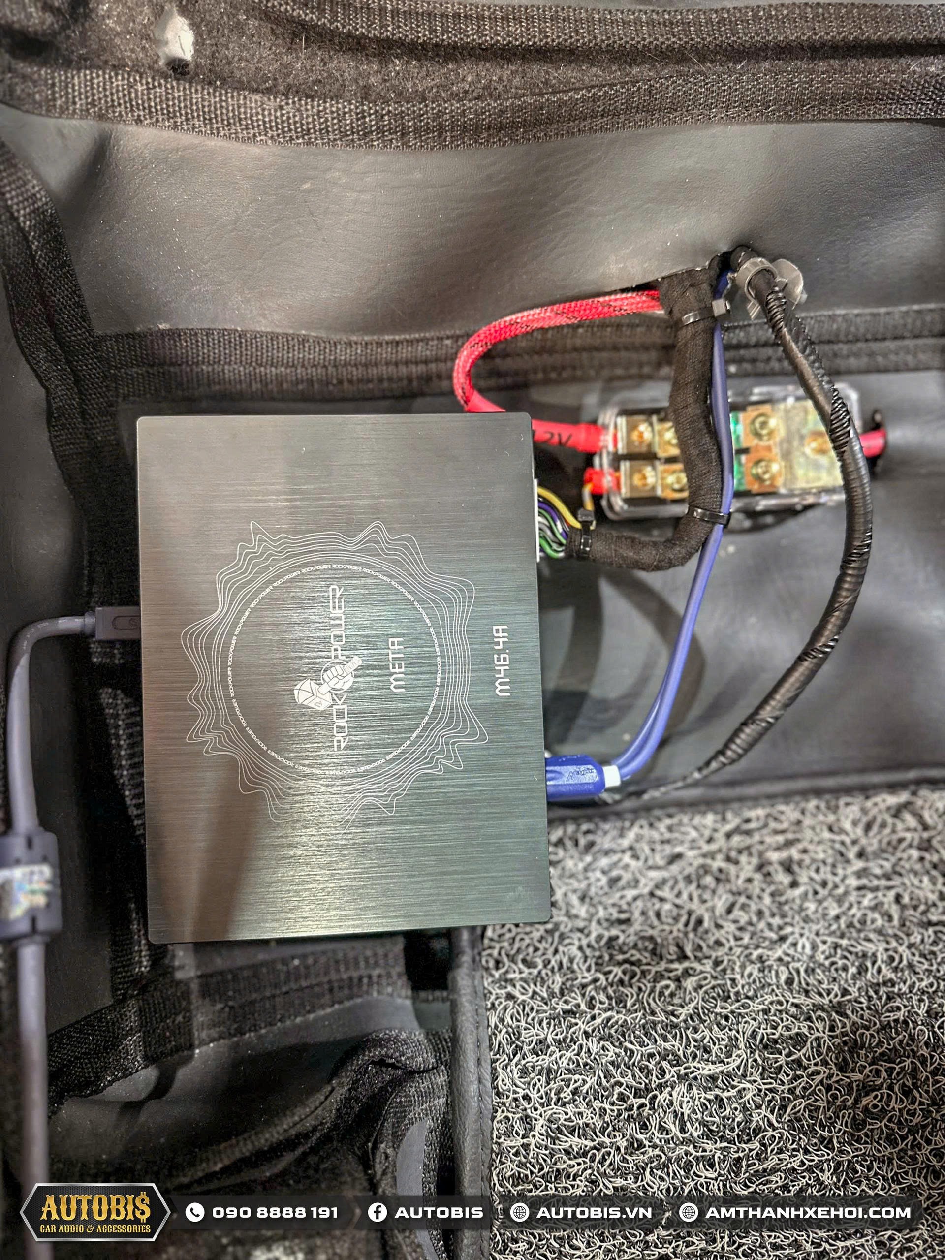 Bộ xử lý âm thanh tích hợp 4 kênh amply Rockpower Meta 4M6.4A được đặt ở dưới ghế tài
