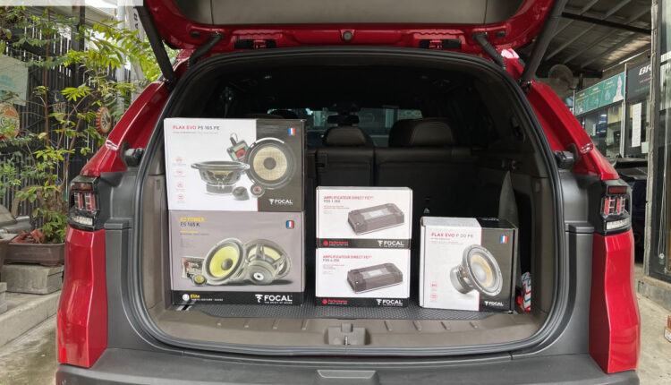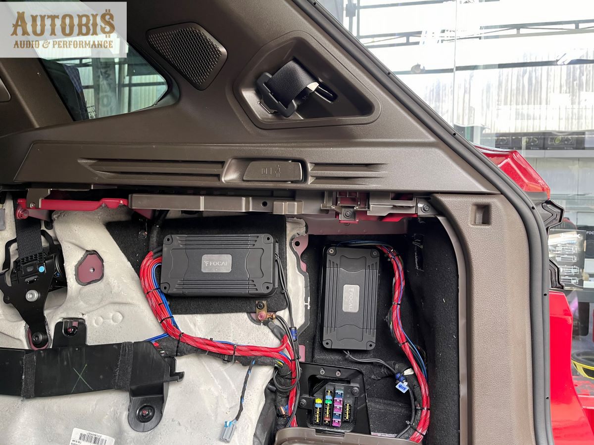 2 amply kéo loa và sub của Focal với thiết kế cực nhỏ gọn gắn sát vào vách bên phải của xe