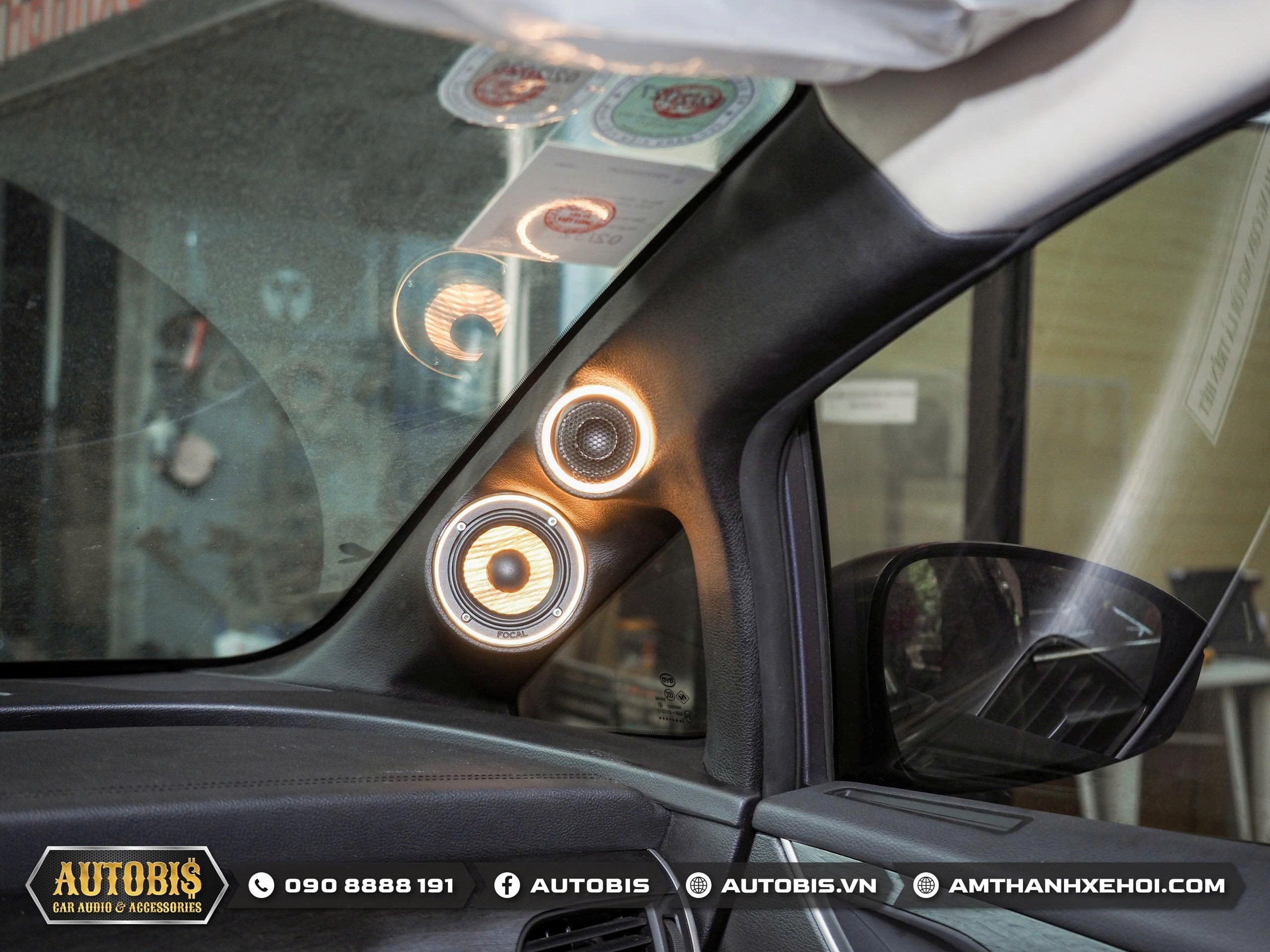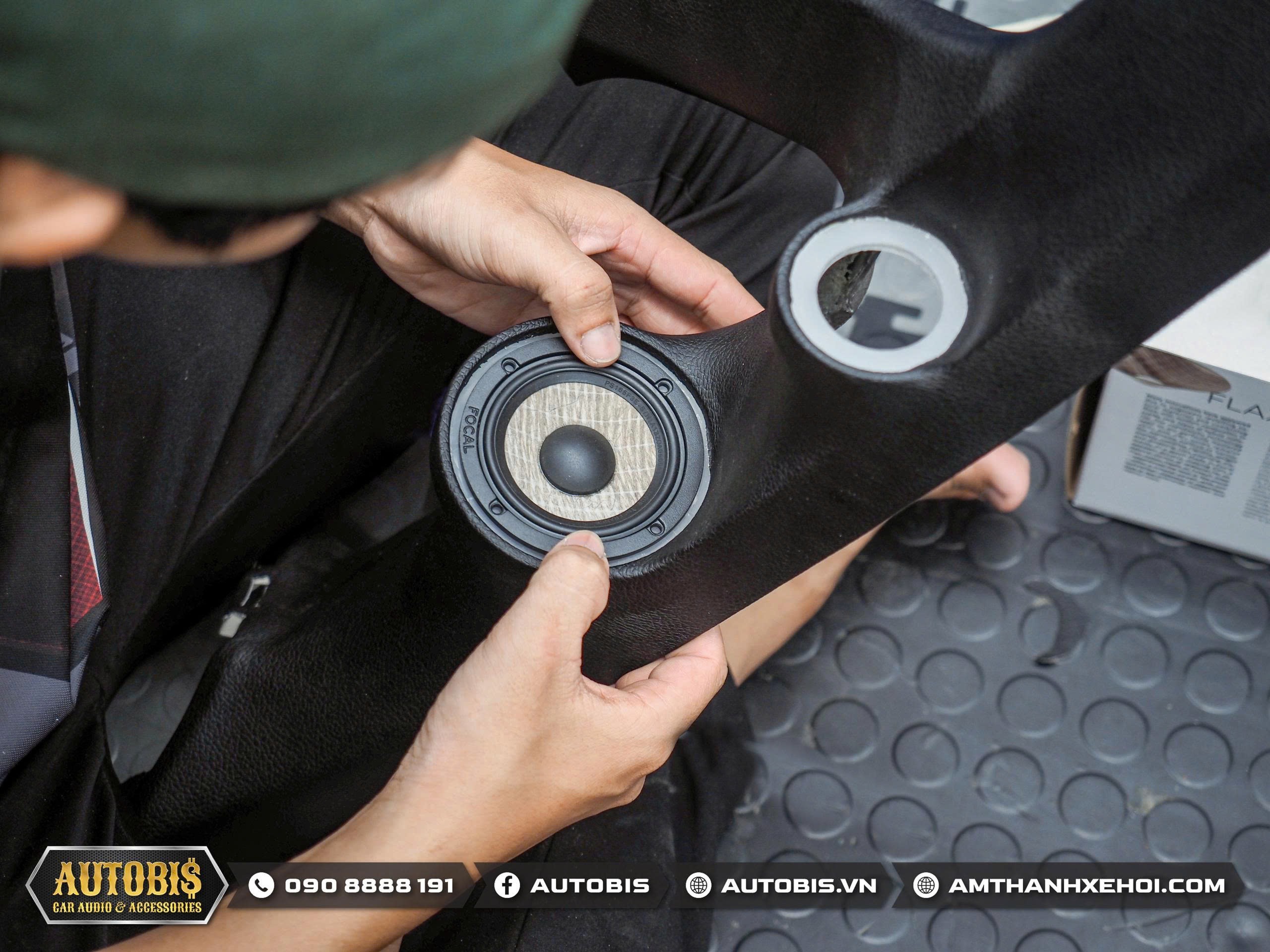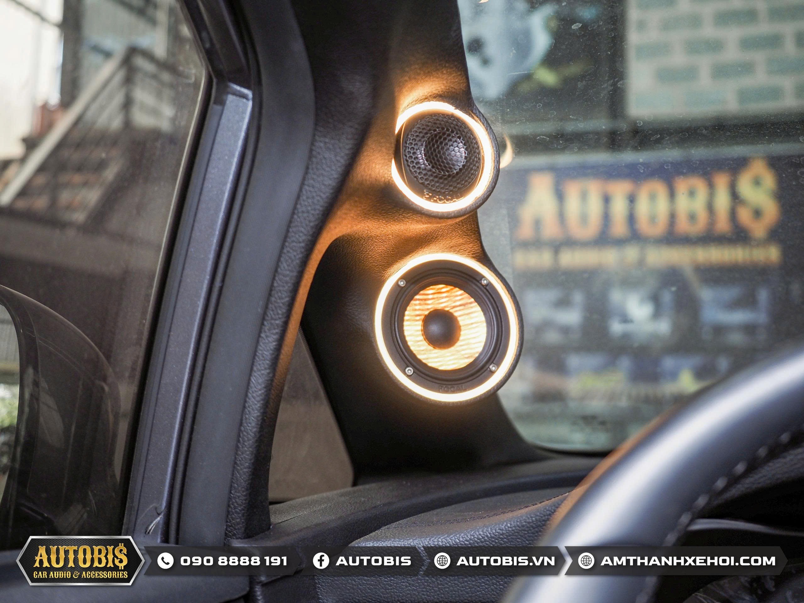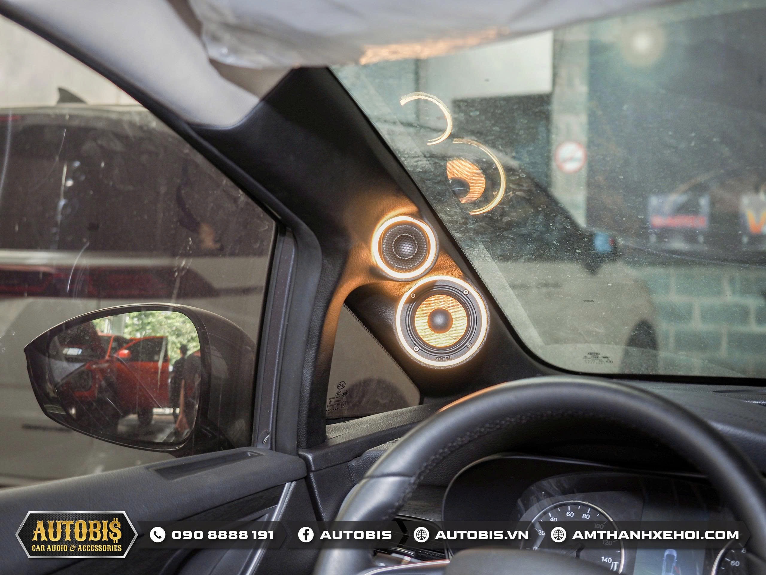 Bộ loa 3way phía trước Focal PS 165 F3E quá quen thuộc với các anh em theo dõi Autobis  khi chất âm thuyết phục được những chủ xe khó tính. Do là bộ loa 3way loa mid được thi công trên vị trí cột A sao cho không cản trở tầm nhìn nhưng vẫn cho hướng âm tốt nhất cho người nghe.