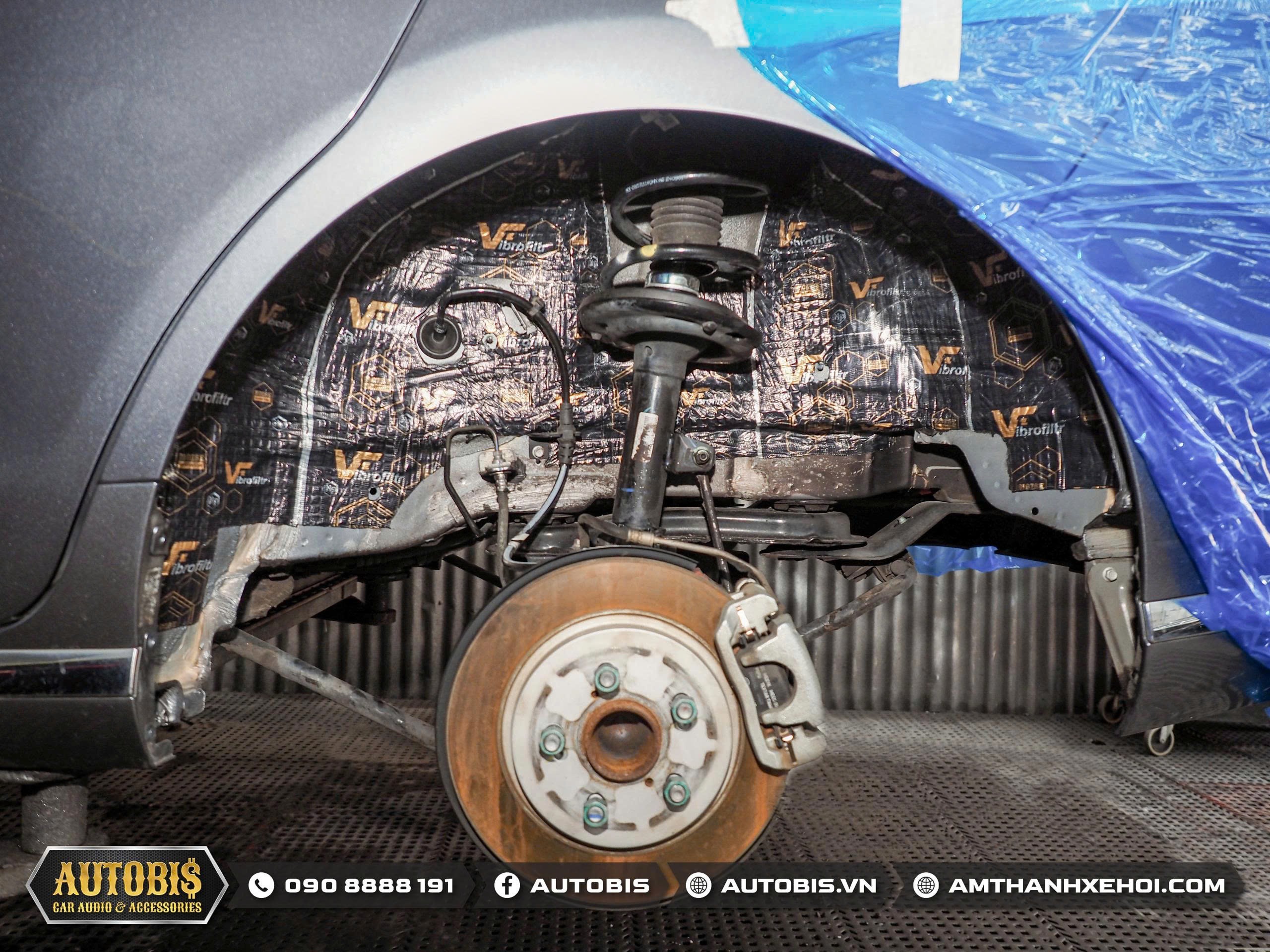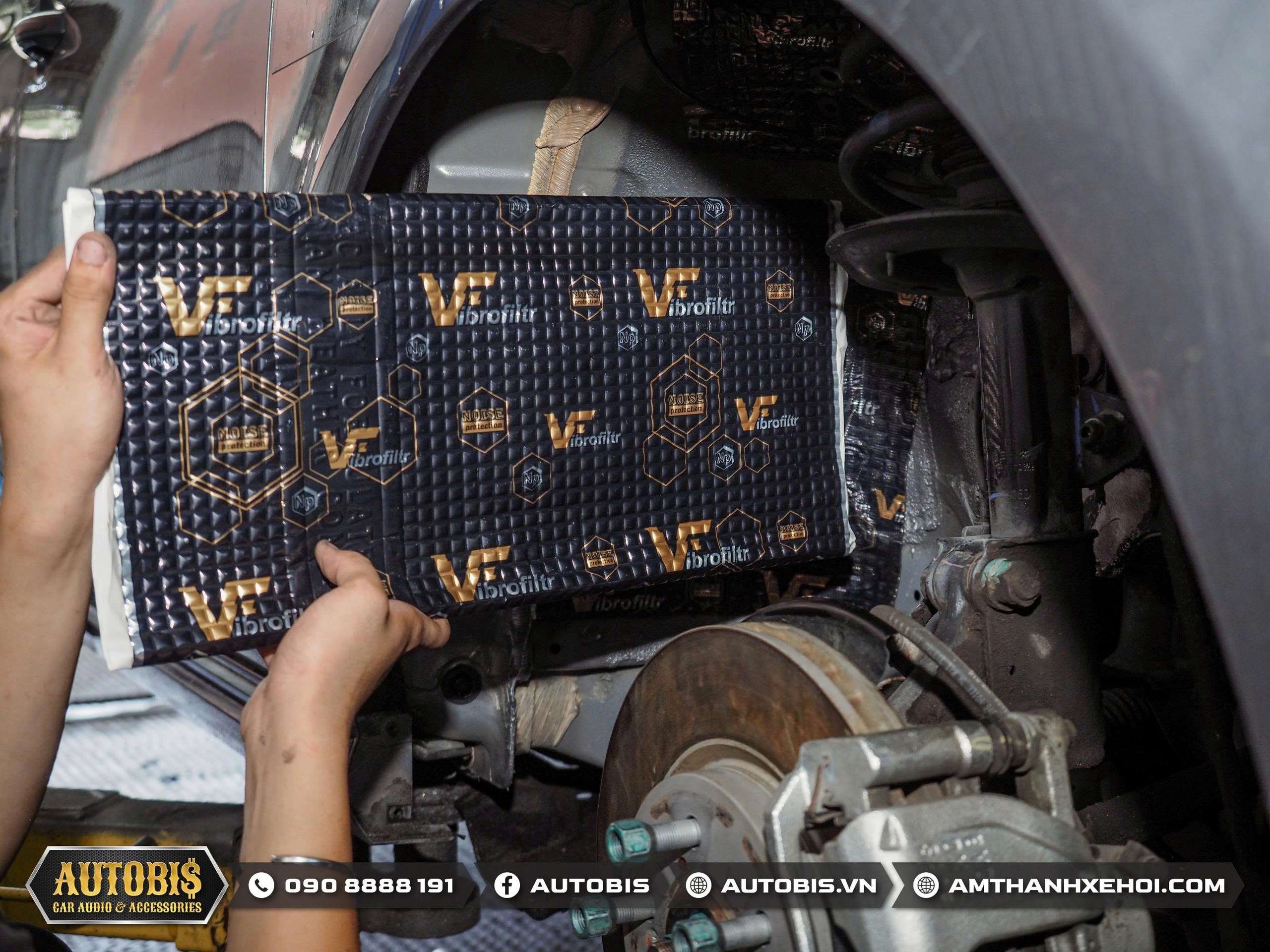 Ngoài ra gói cách âm hốc bánh cũng được anh chủ xe lựa chọn với thương hiệu Vibrofiltr