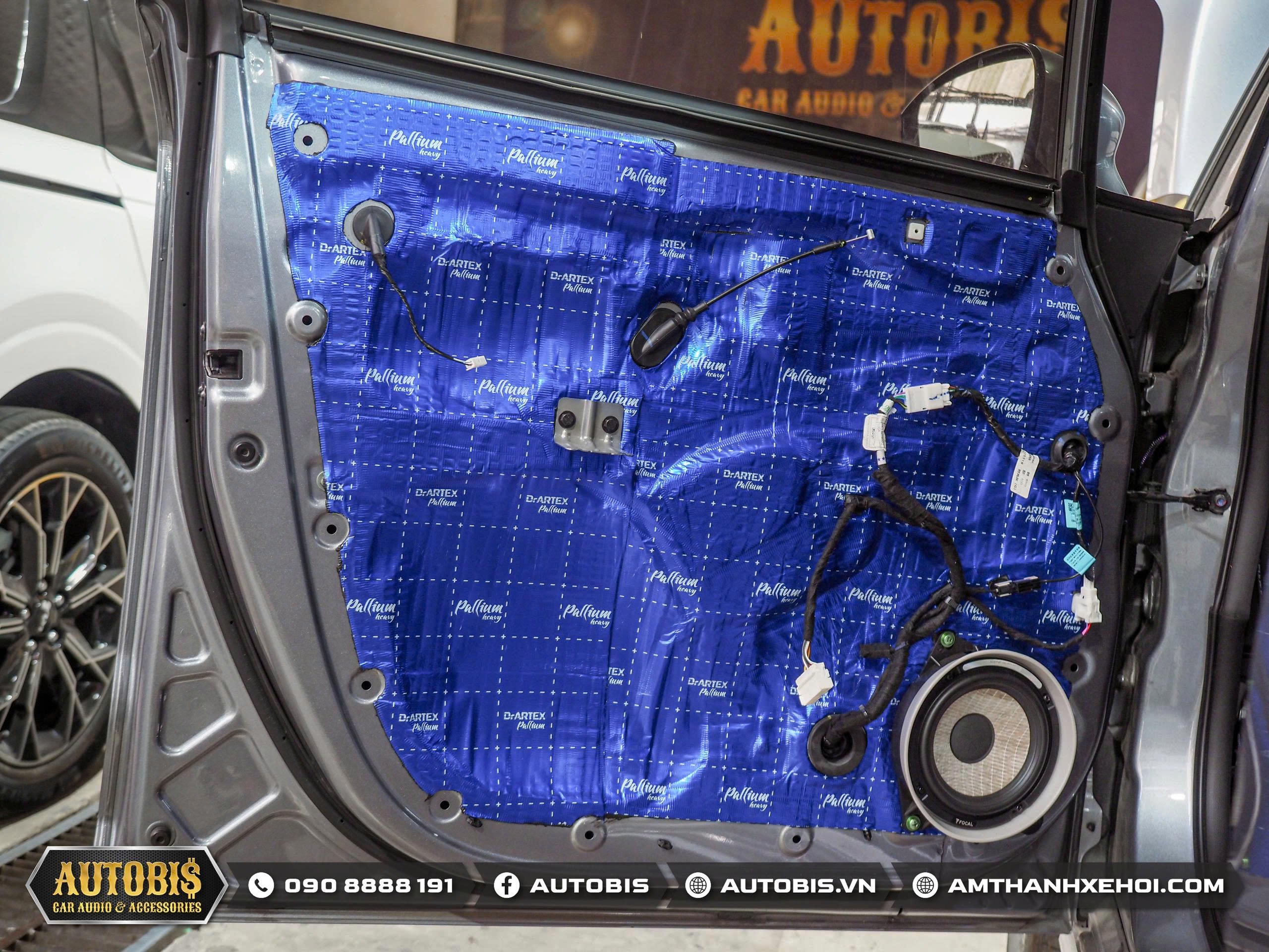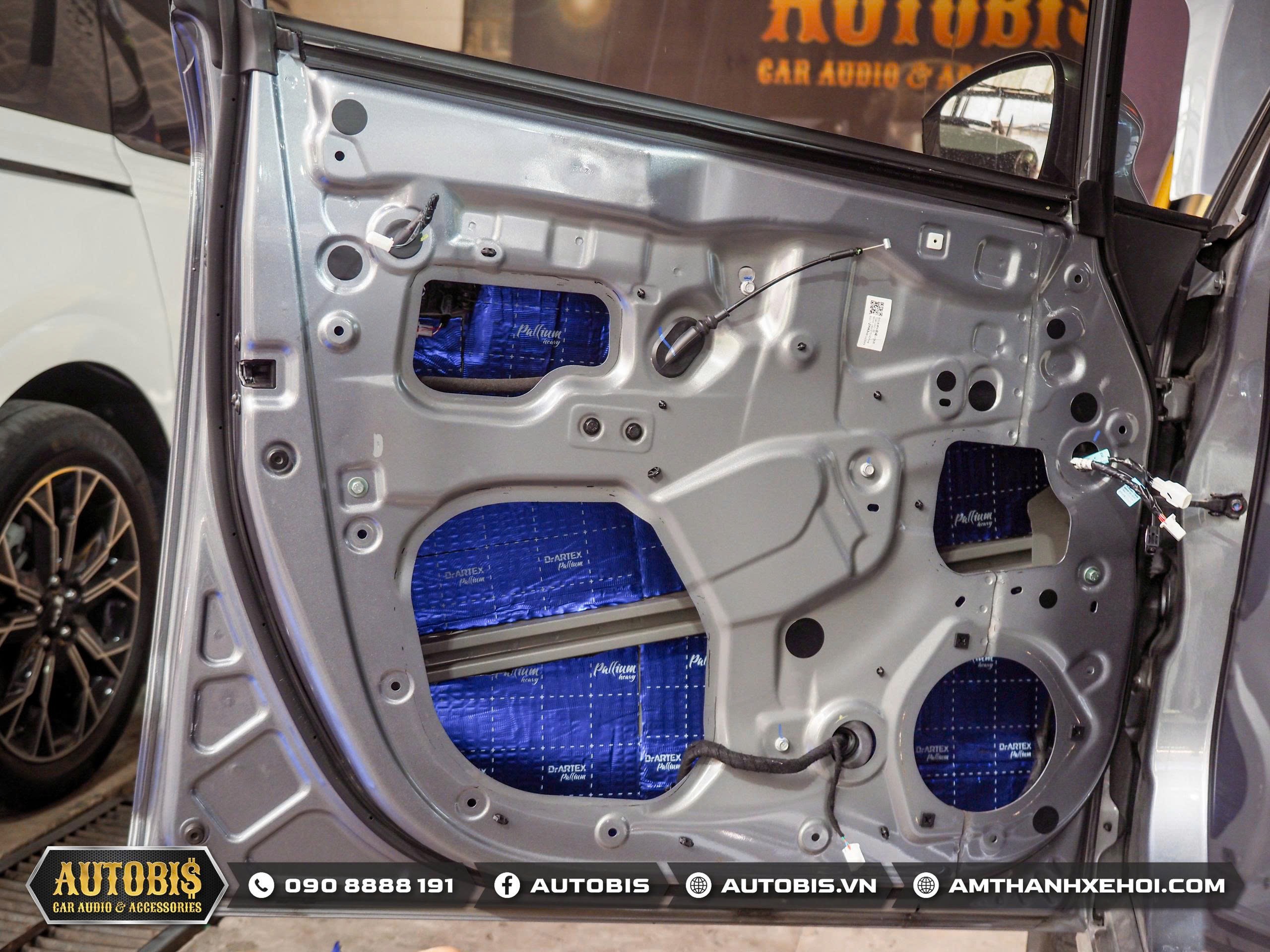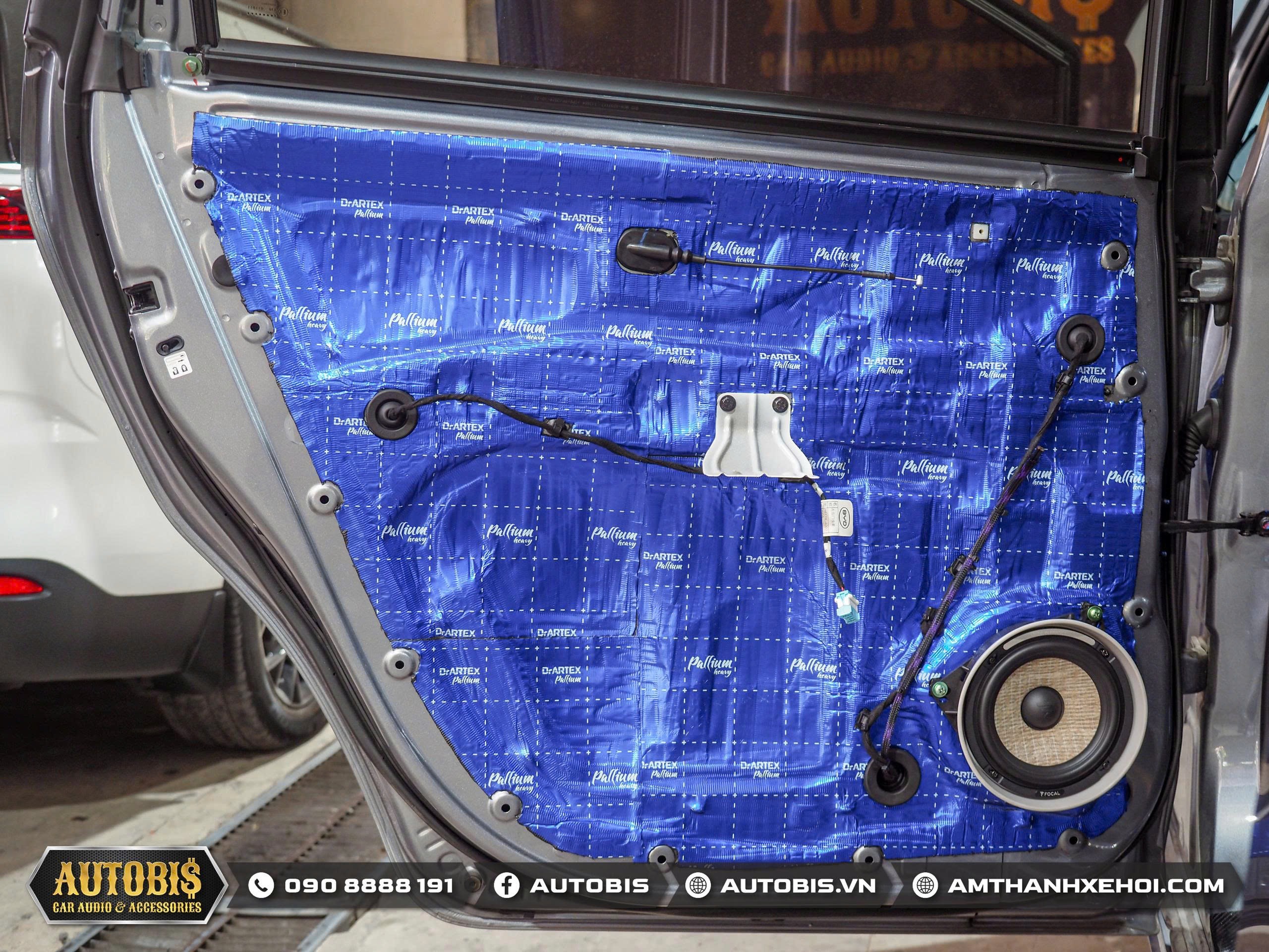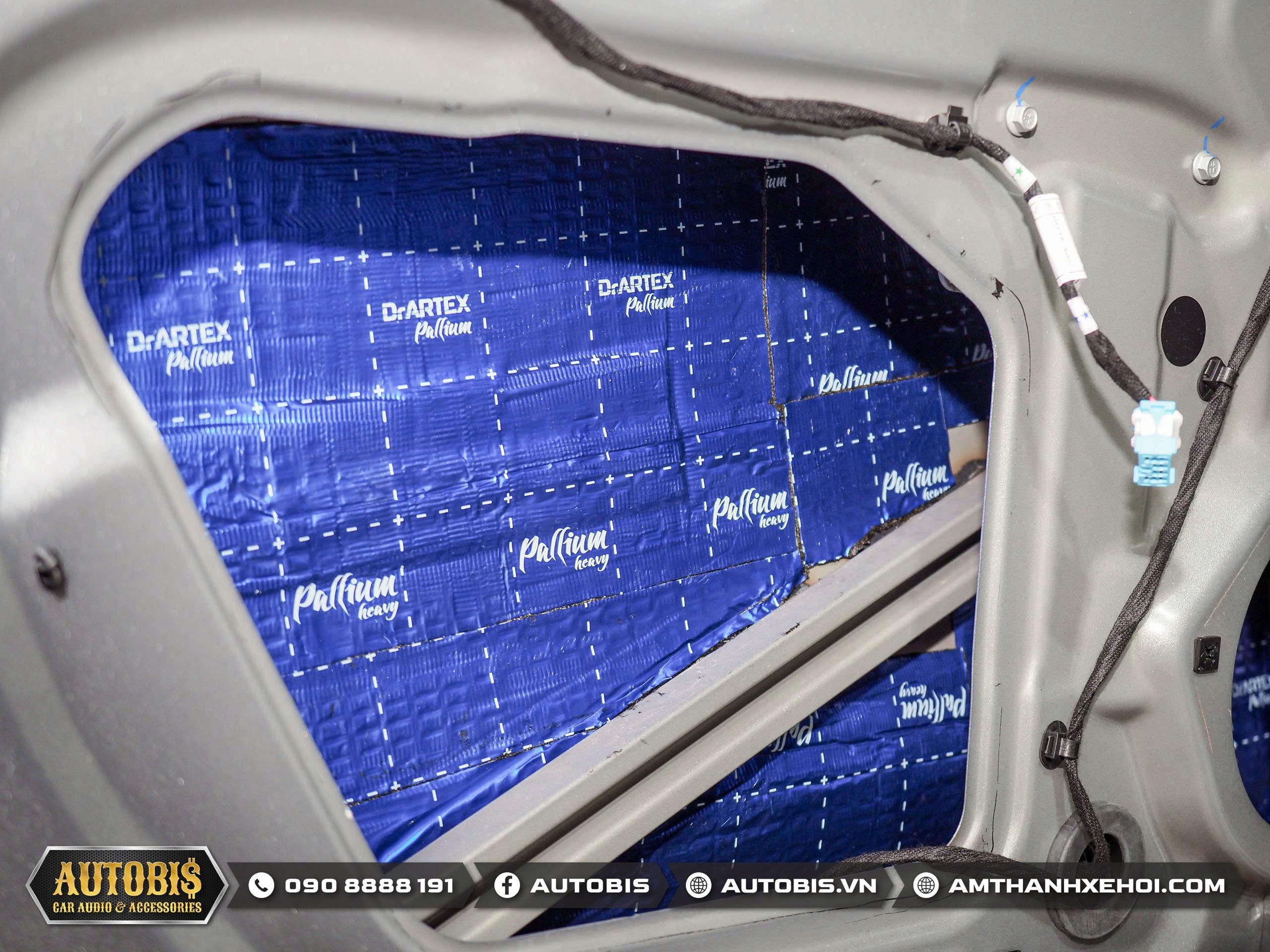 Trước khi đến phần âm thanh Autobis luôn khuyến khích chủ xe thi công cách âm cho xe để không gian xe được tối ưu khi sử dụng âm thanh và vật liệu cách âm cửa lần này sử dụng thương hiệu cách âm Dr.ARTEX
