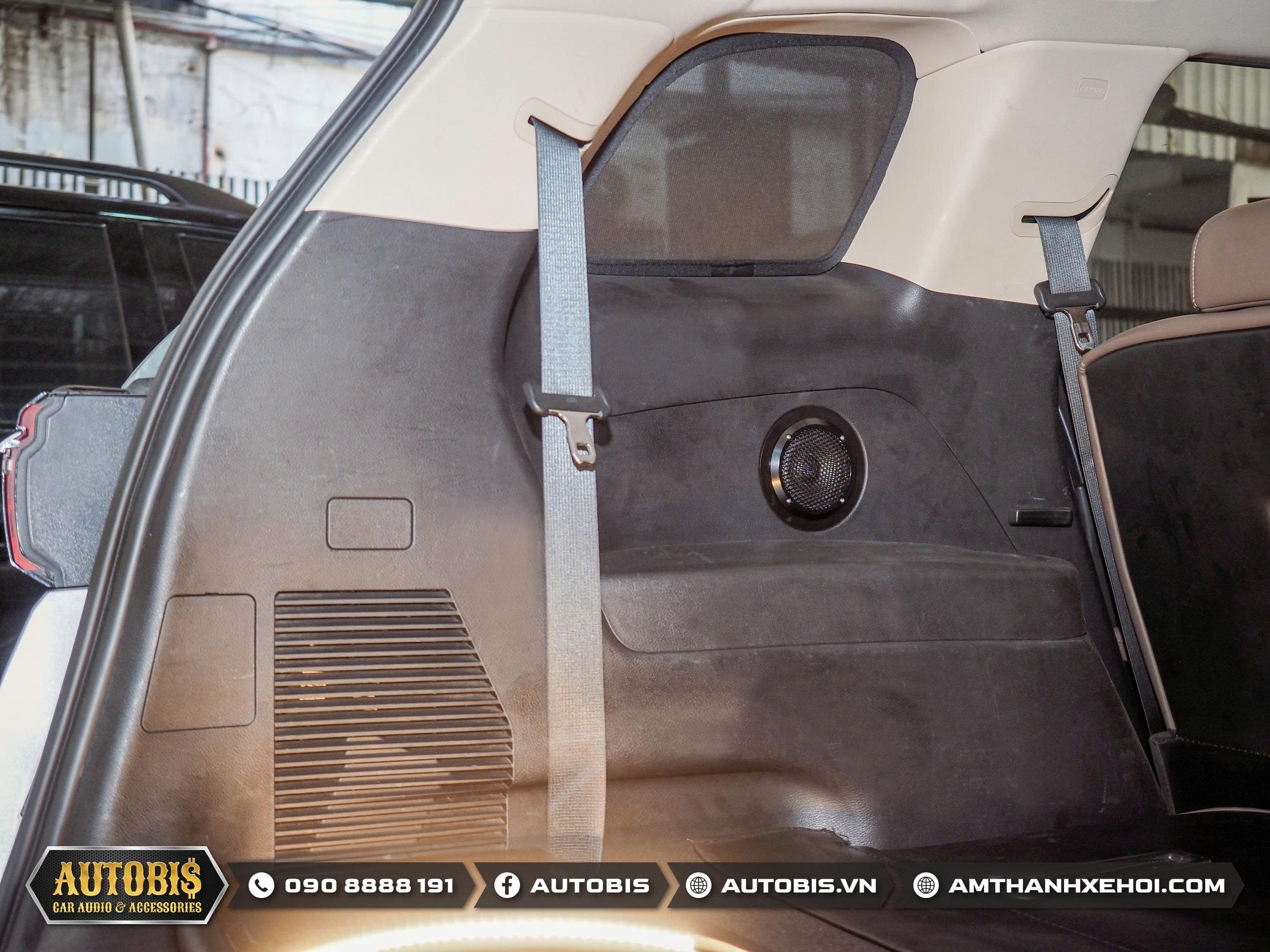 Cặp loa mid Quartorigo Overture thi công lắp đặt ở vị trí ốp nhựa vị tró băng ghế 3 phía sau.