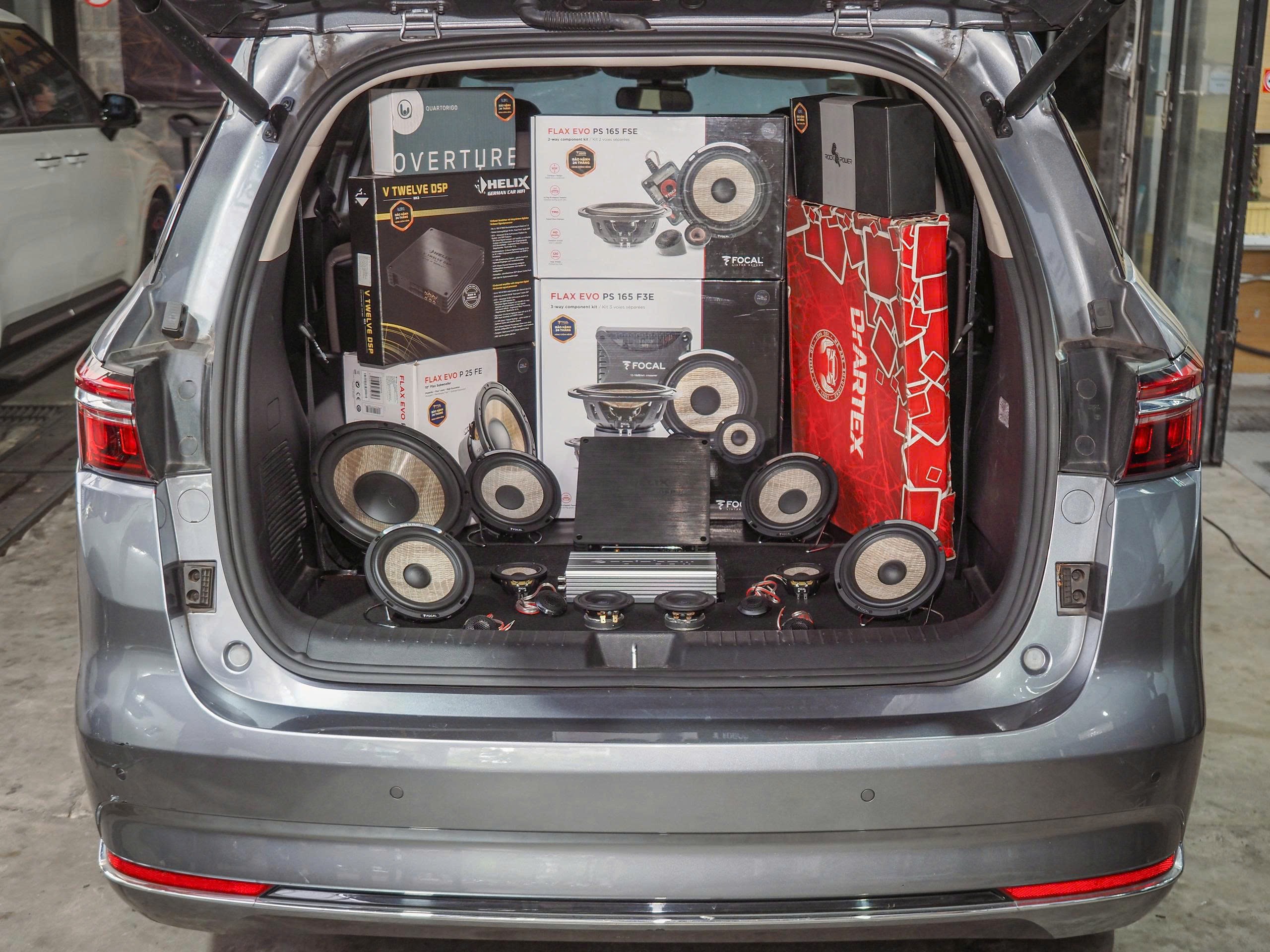 Bộ loa cửa sau Focal PS 165 FSE kết hợp cặp Mid Quartorigo Overture loa bass được lắp đặt vào vị trí zin