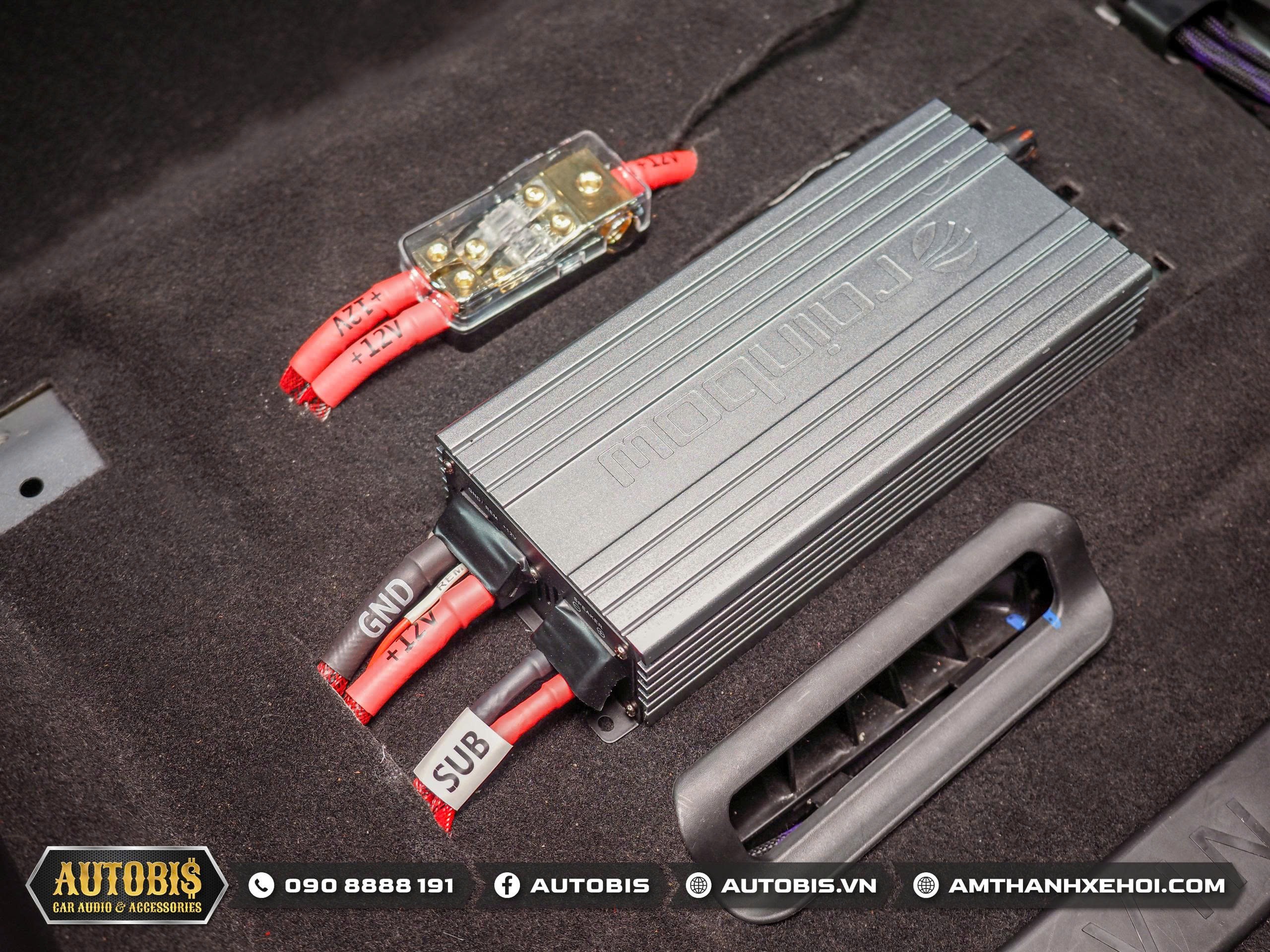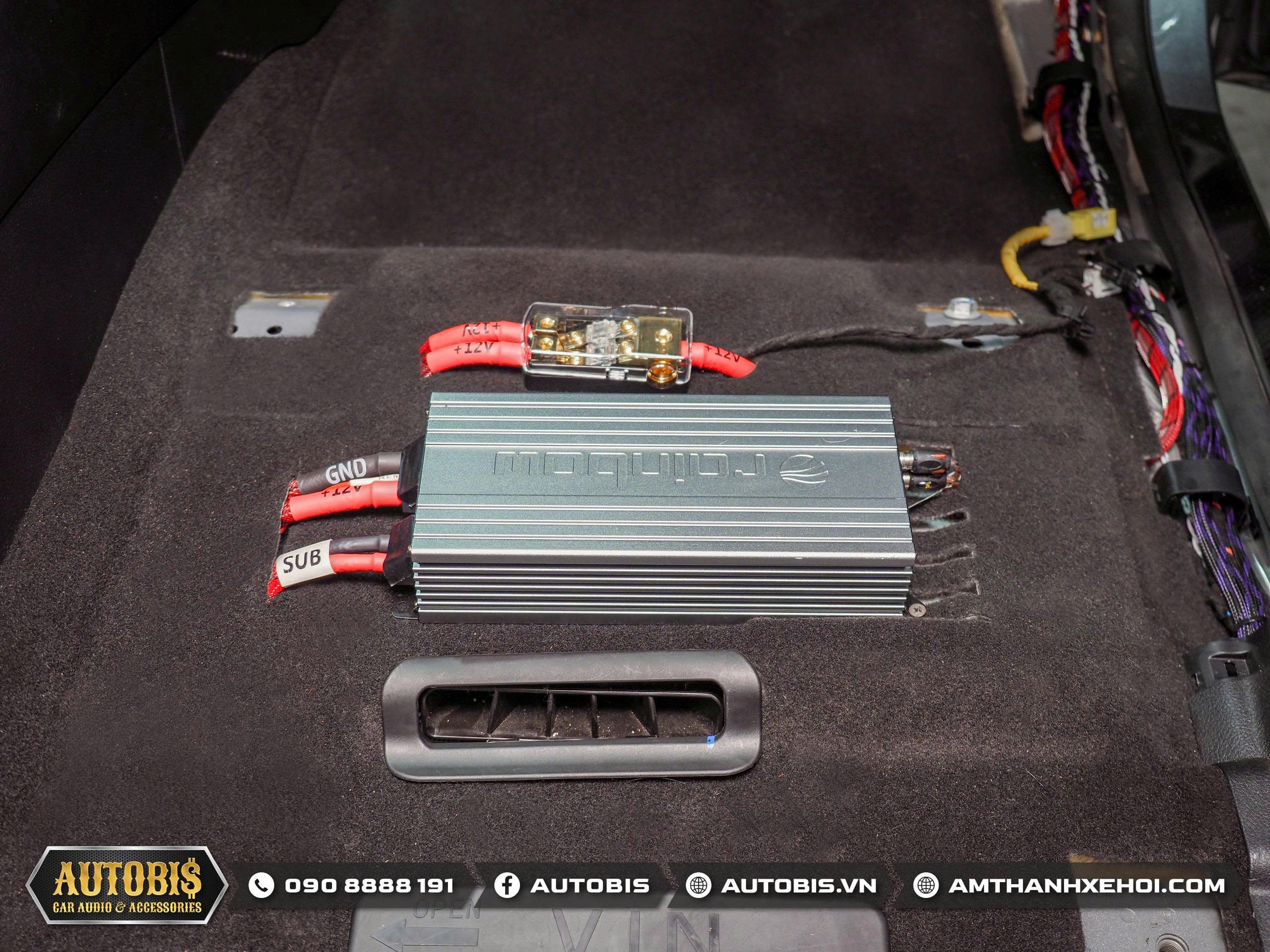 Amply kéo sub Rainbow EL-M1200 được thi công ở vị trí ghế phụ