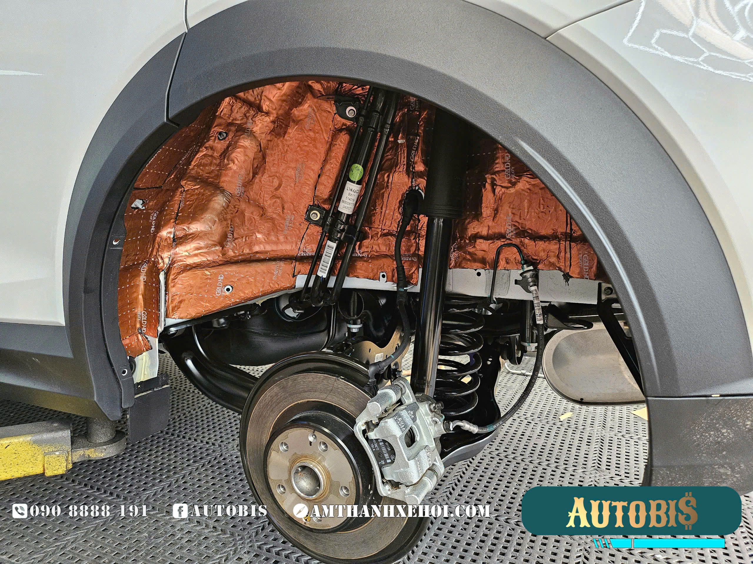 Lớp phủ gầm Dr.ARTEX hốc bánh sau khi đã dán cách âm xong (Lưu ý: dán cách âm trước mới được phủ gầm)
