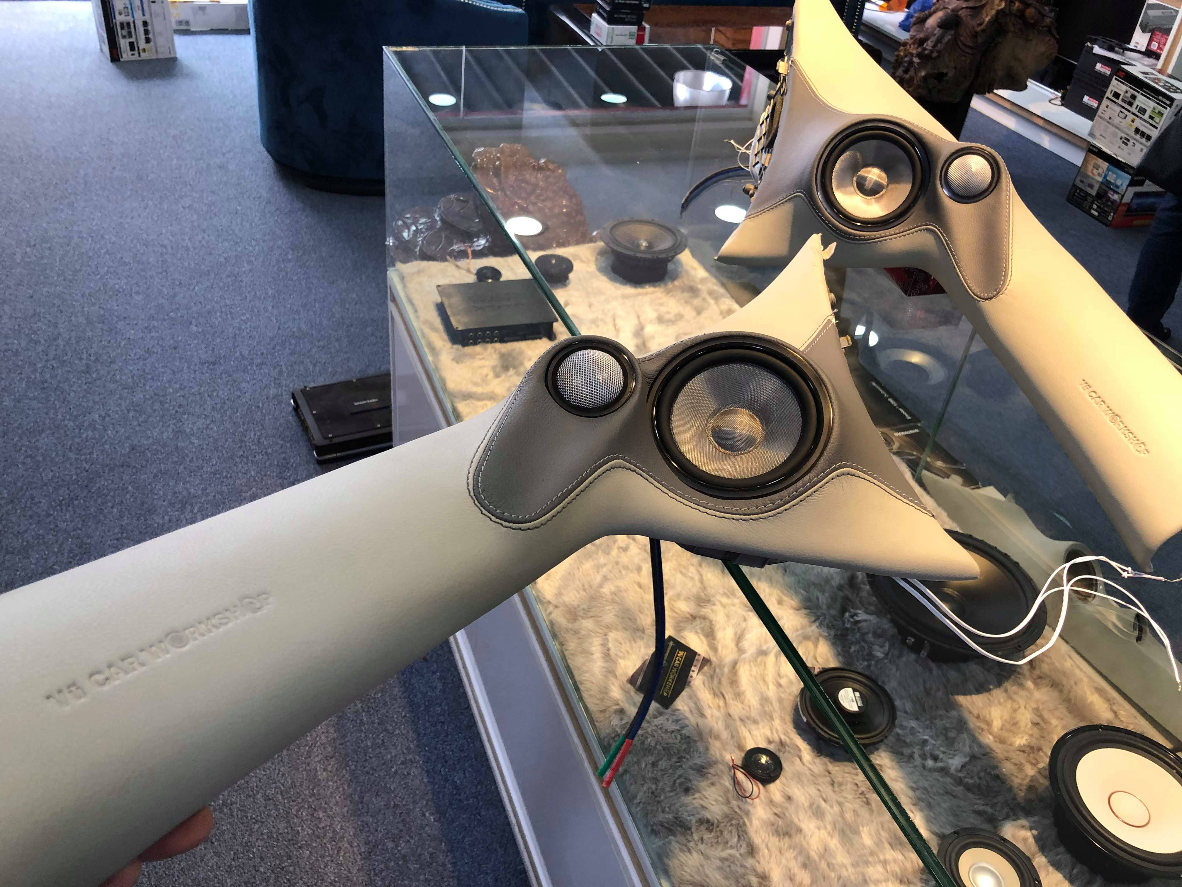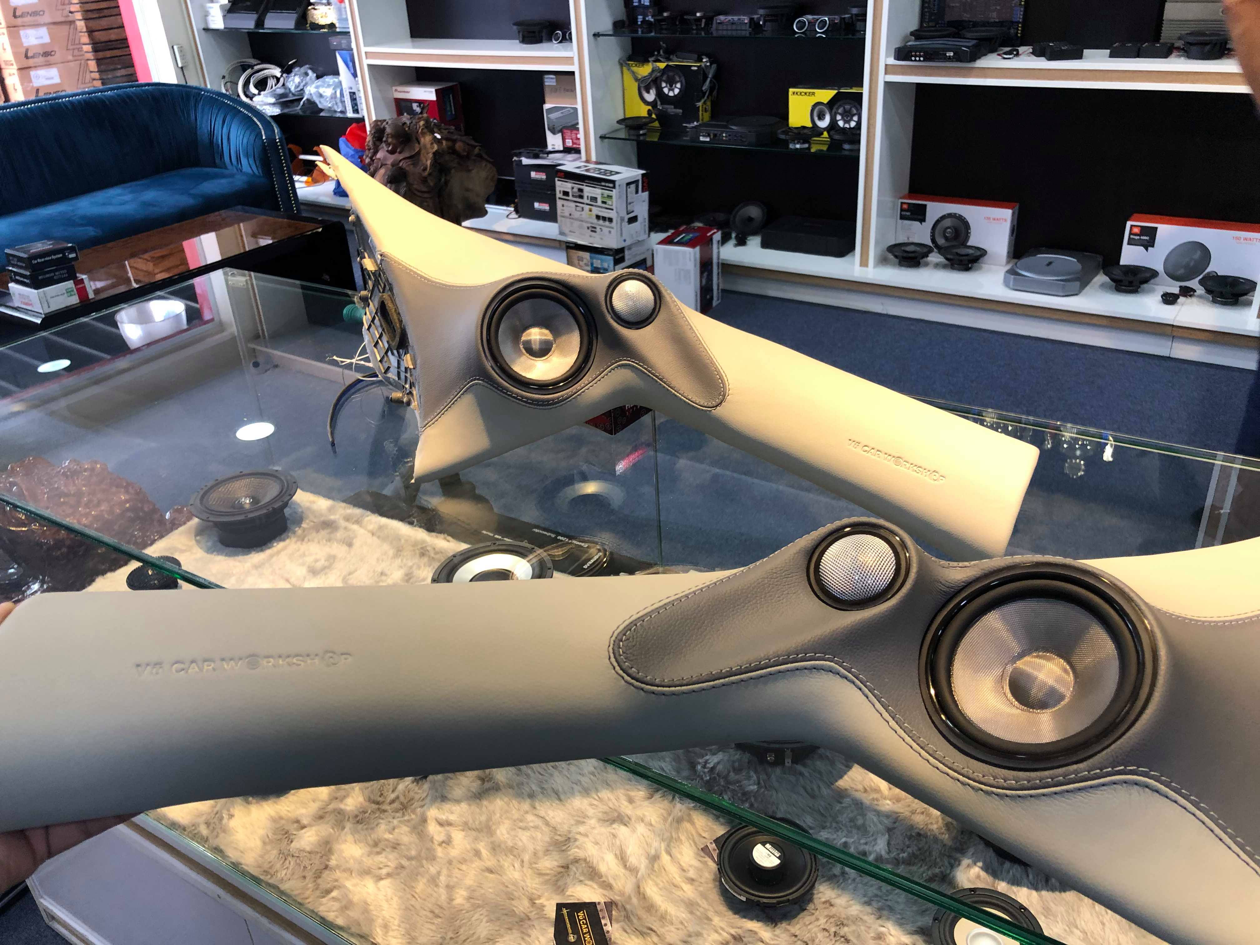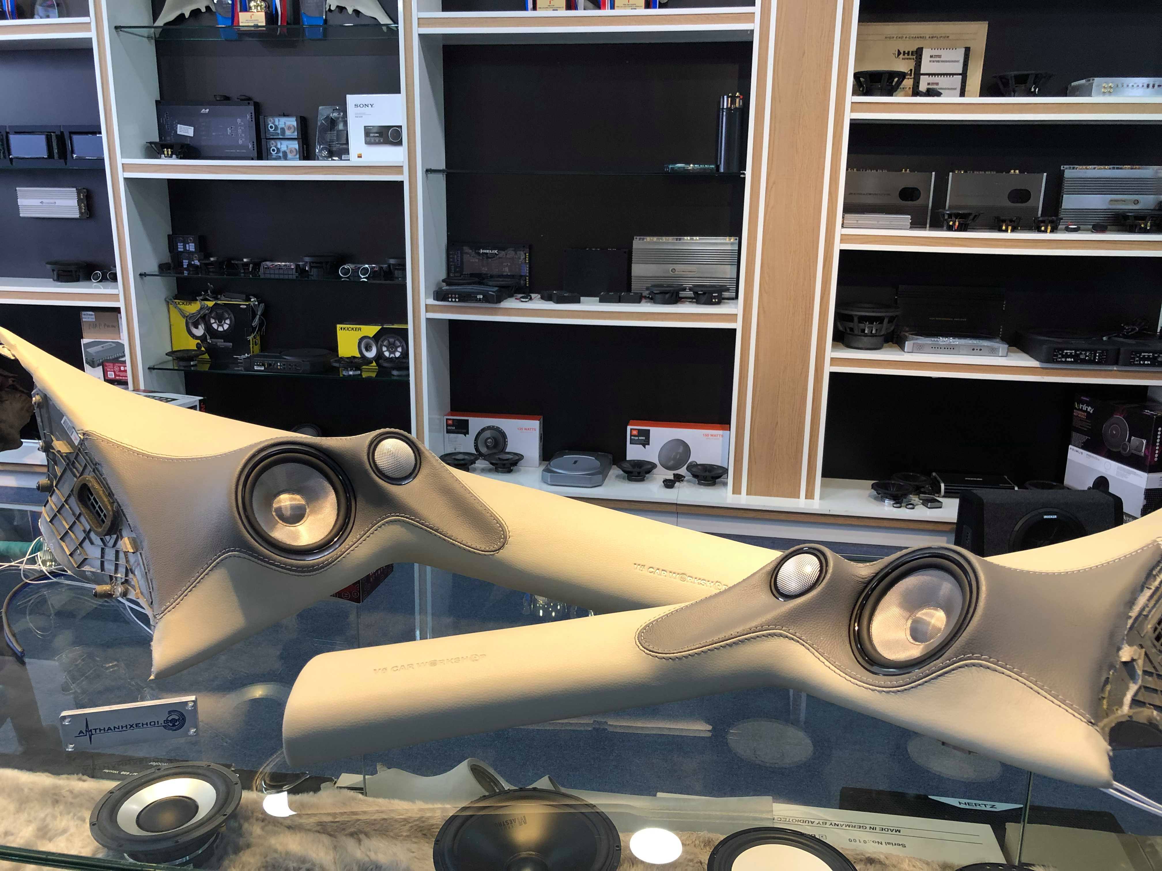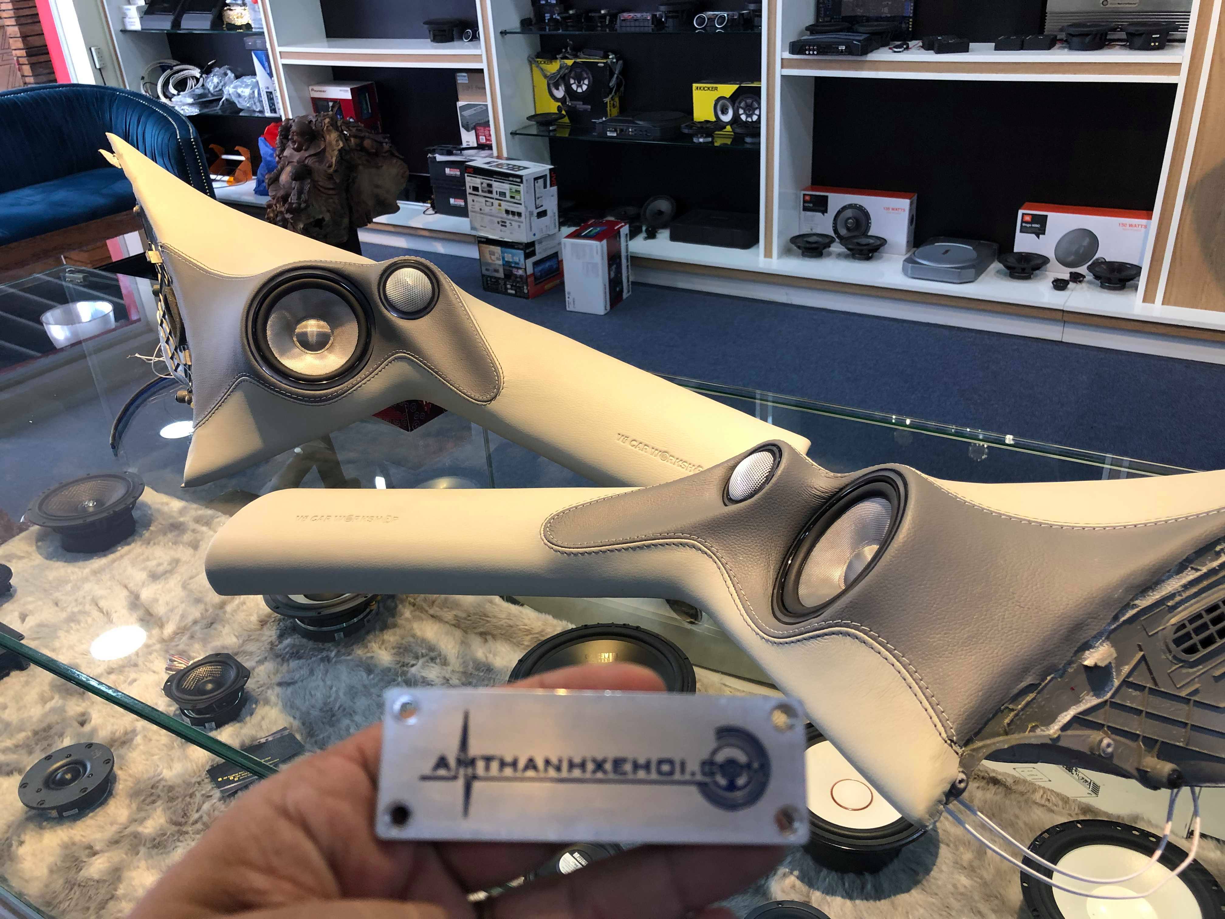 Mời các anh tham khao vài hình ảnh Loa mid-treble và mid-bass được thiết kế trên côt A bằng hỗn hợp composit và bộc da thuộc