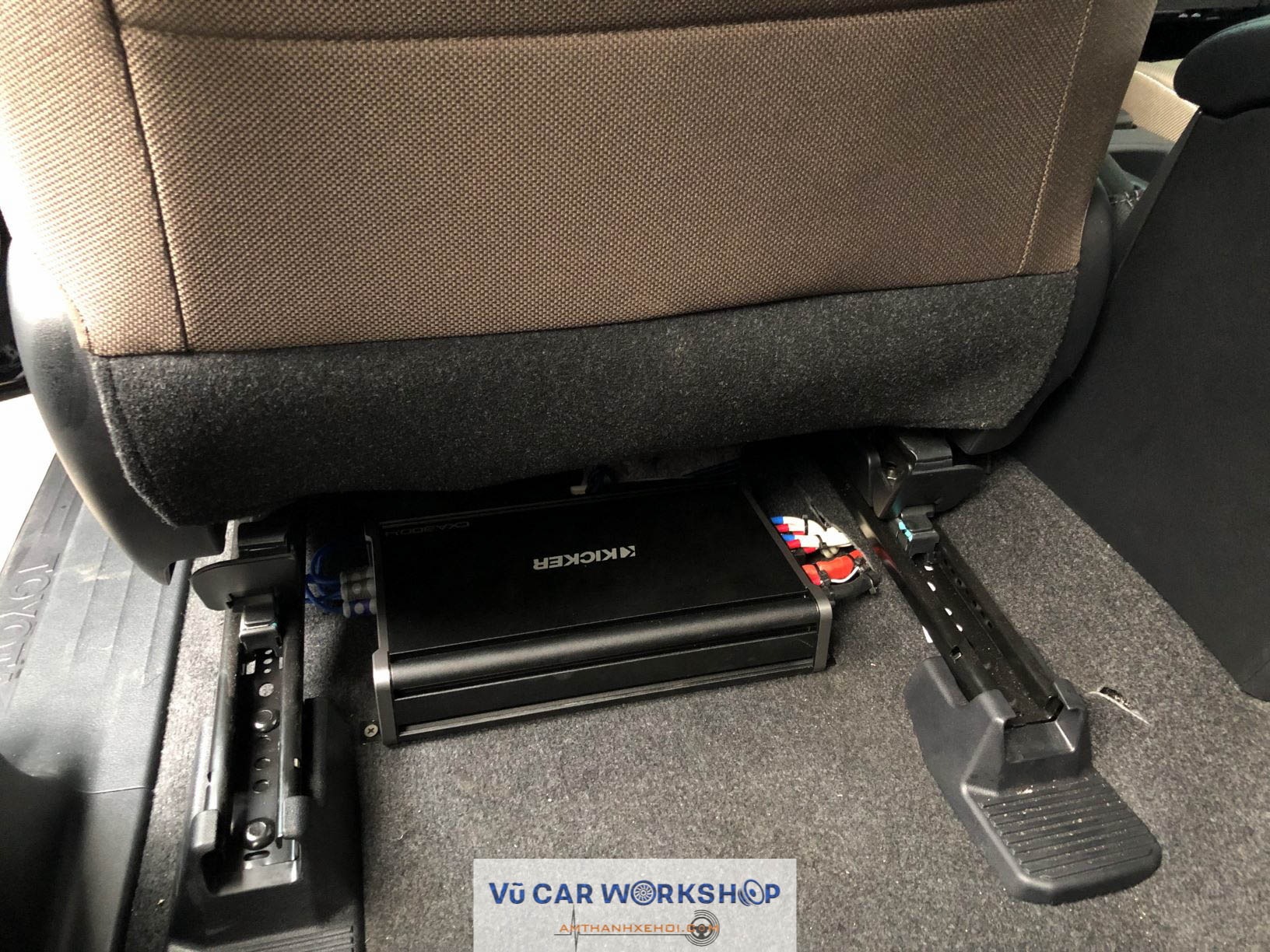 Amply và sub để dưới 2 gầm ghế.
