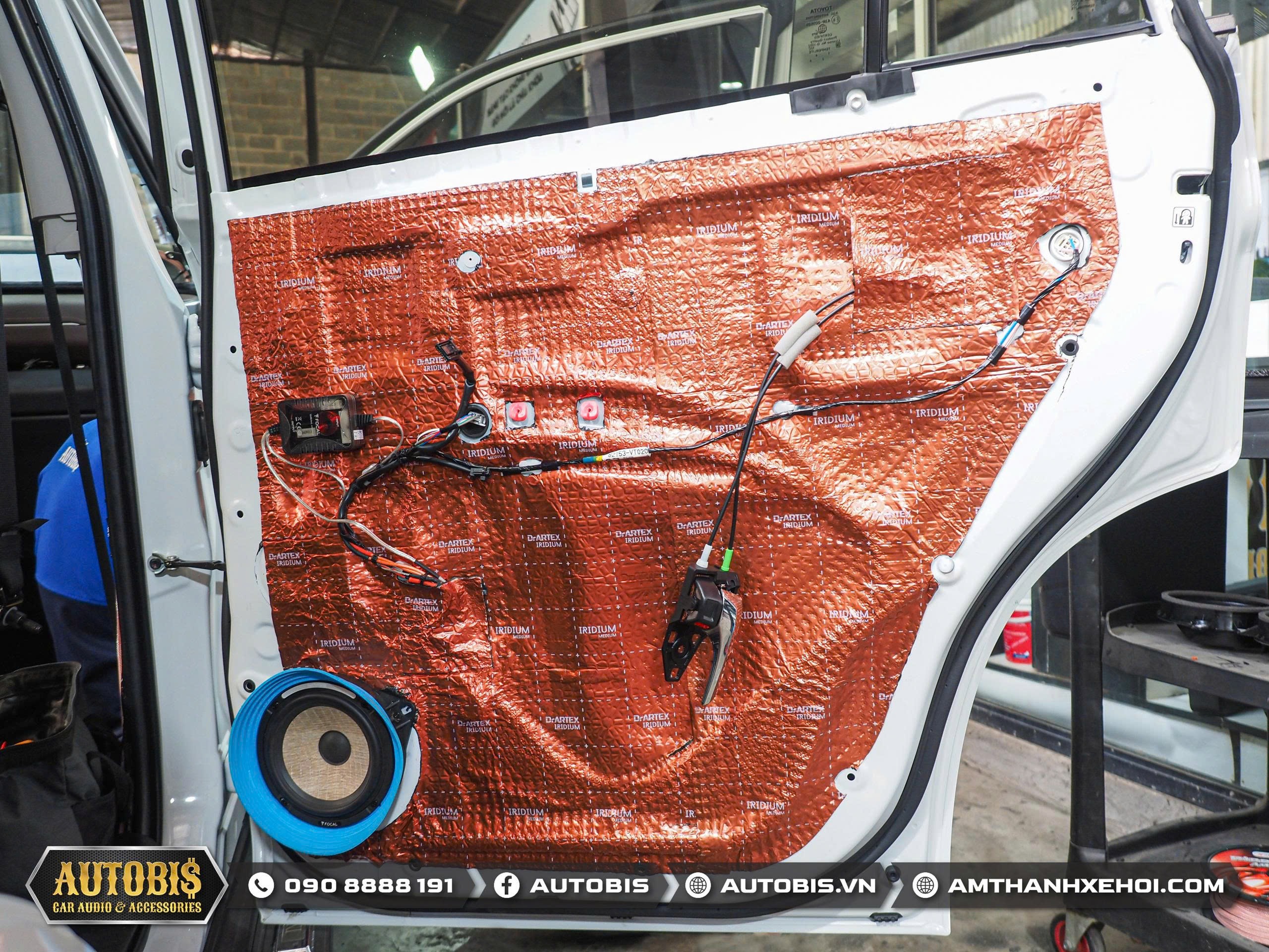 Phần cánh cửa xe được cách âm 3 lớp bằng vật liệu DrARTEX cao cấp. Sau khi cách âm loa bass phía trước và phía sau được gắn vào vị trí zin trên cửa :