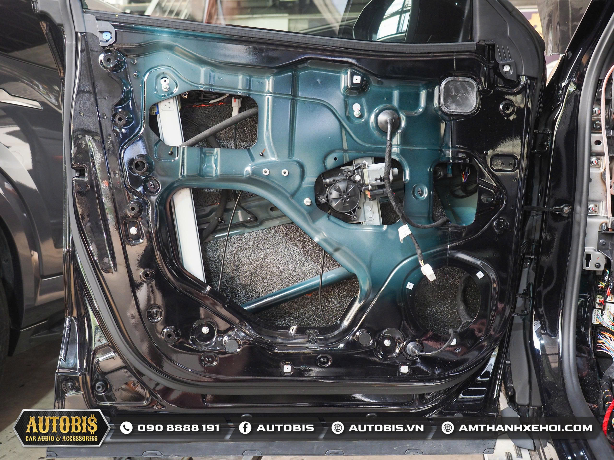 Phần cánh cửa được bổ sung thêm cách âm 3 lớp bằng vật liệu DrARTEX để giảm tiếng ồn bên ngoài vào khoang xe và tạo không gian kín giúp loa được hoạt động tối ưu hơn. Sau khi được cách âm loa bass được gắn vào vị trí zin trên cánh cửa.