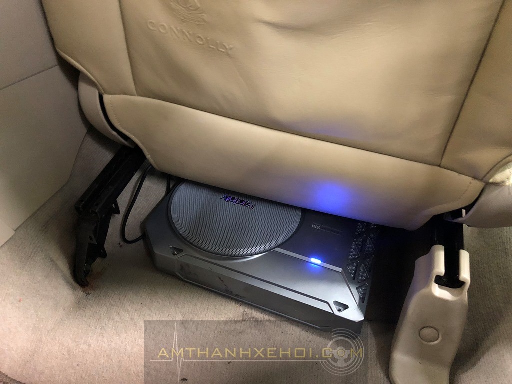 Sub đặt ở gầm ghế phụ và amply gầm ghế tài.