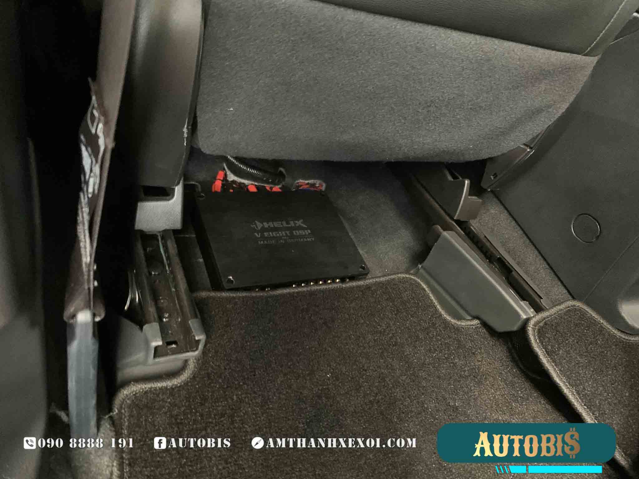 Bộ xử lí tín hiệu tích hợp amply Helix V Eight DSP MK2 được đặt dưới ghế tài