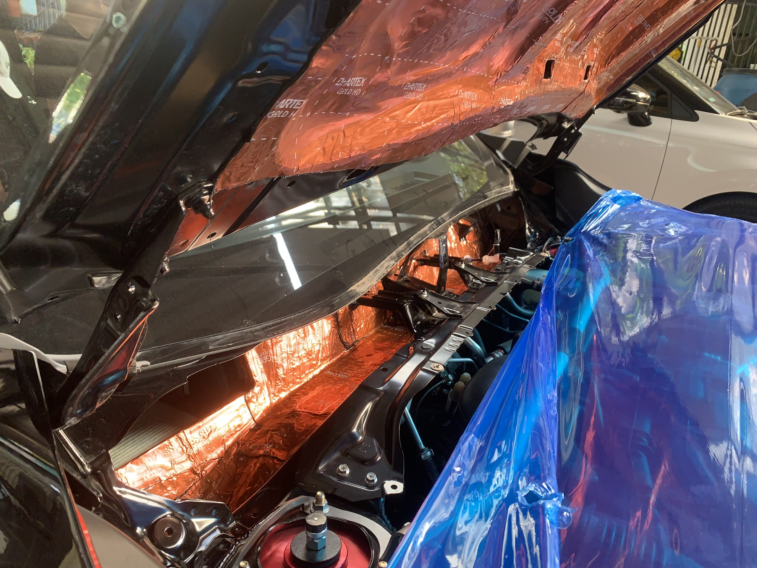 Vị trí capo được giảm được âm thanh từ động cơ, tất nhiên tại vị trí này loại vật liệu phải chịu được nhiệt độ cao, không gây chảy nhựa hay bong tróc.