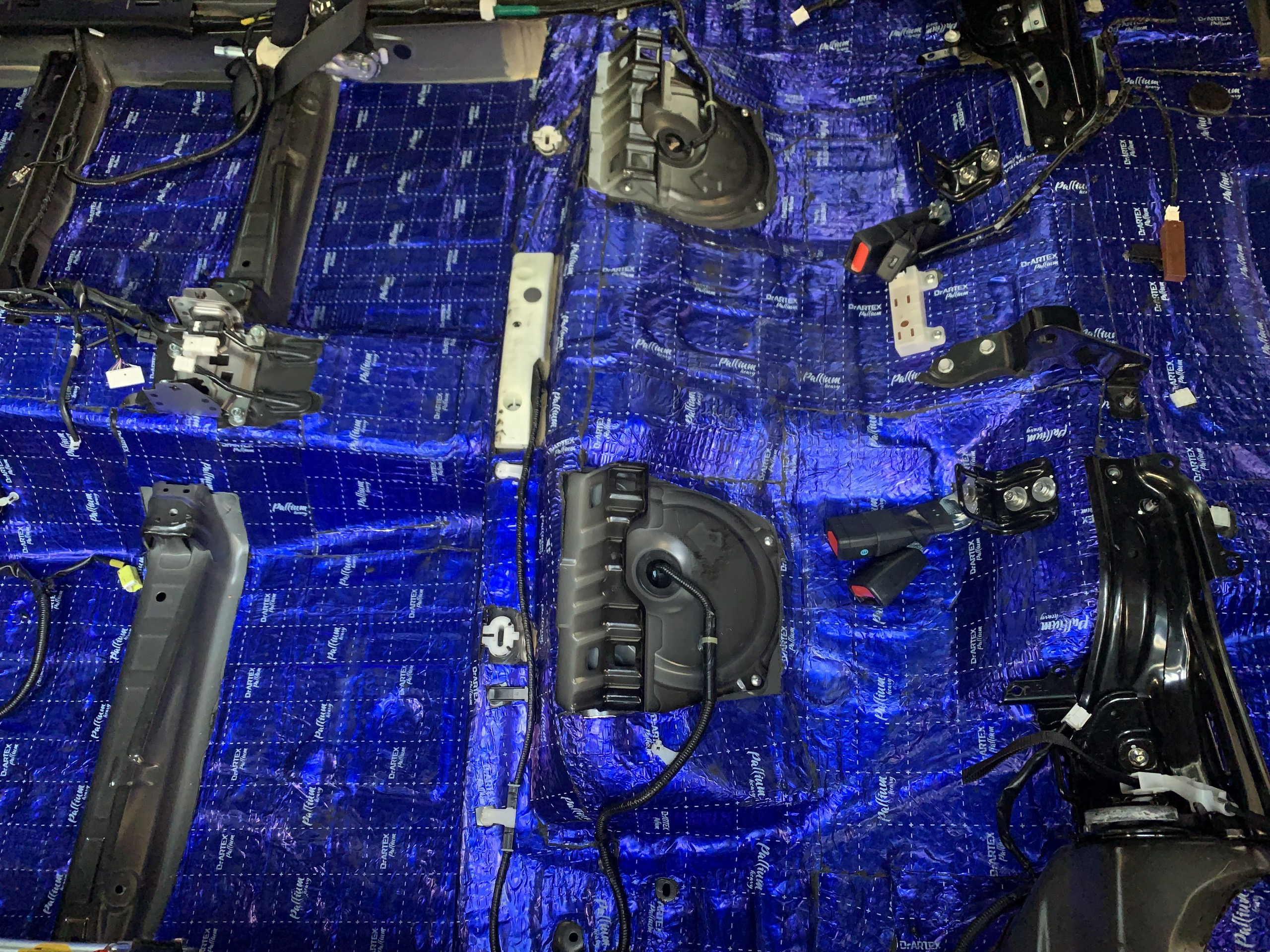 Thi công cách âm sàn là vị trí giúp giảm tiếng ồn từ dưới lên nhiều nhất, như tiếng ồn  giữa bánh xe và mặt đường, cũng như những ngoại vật có thể văng  lên sàn xe gây tiếng động khó chịu cho chủ xe.