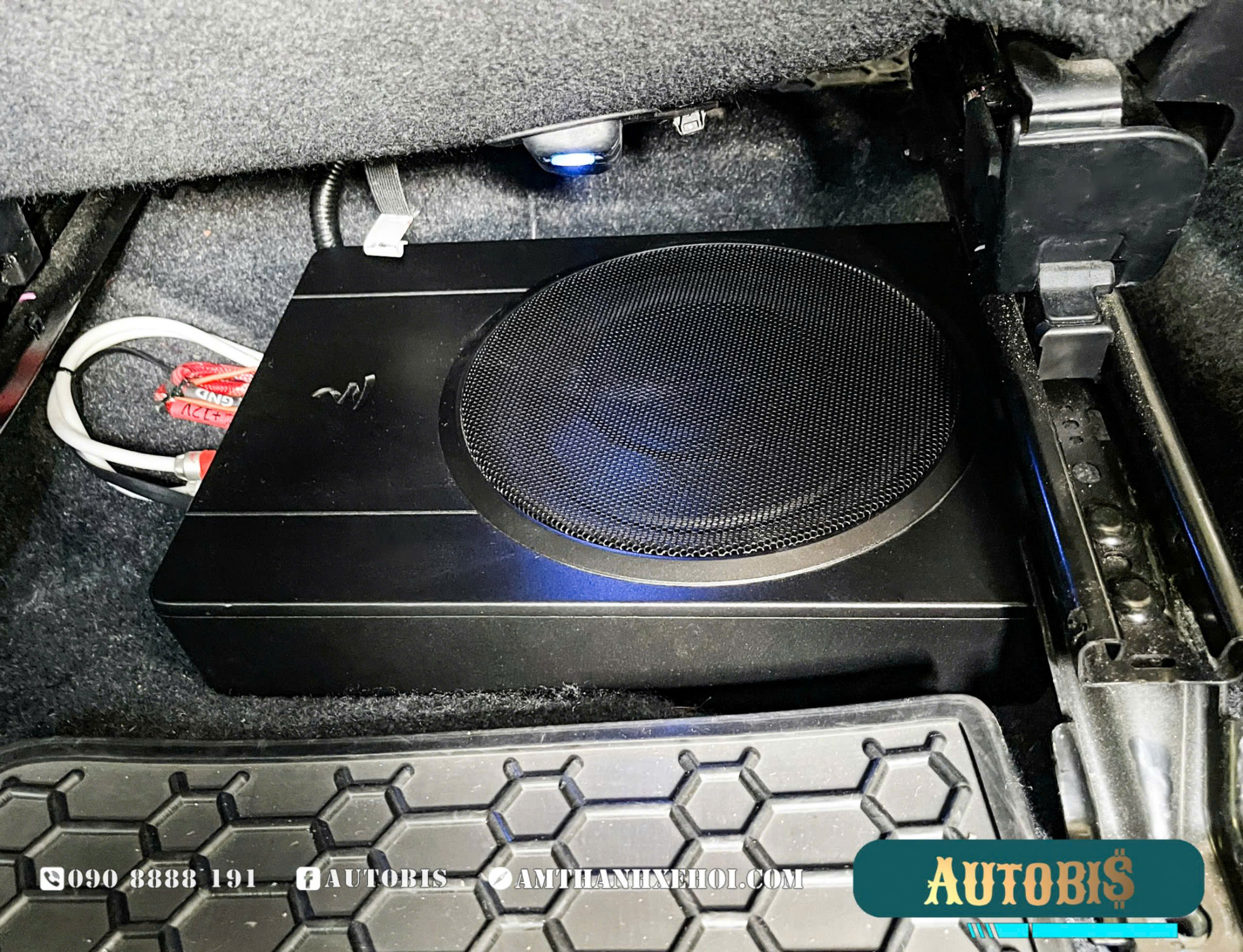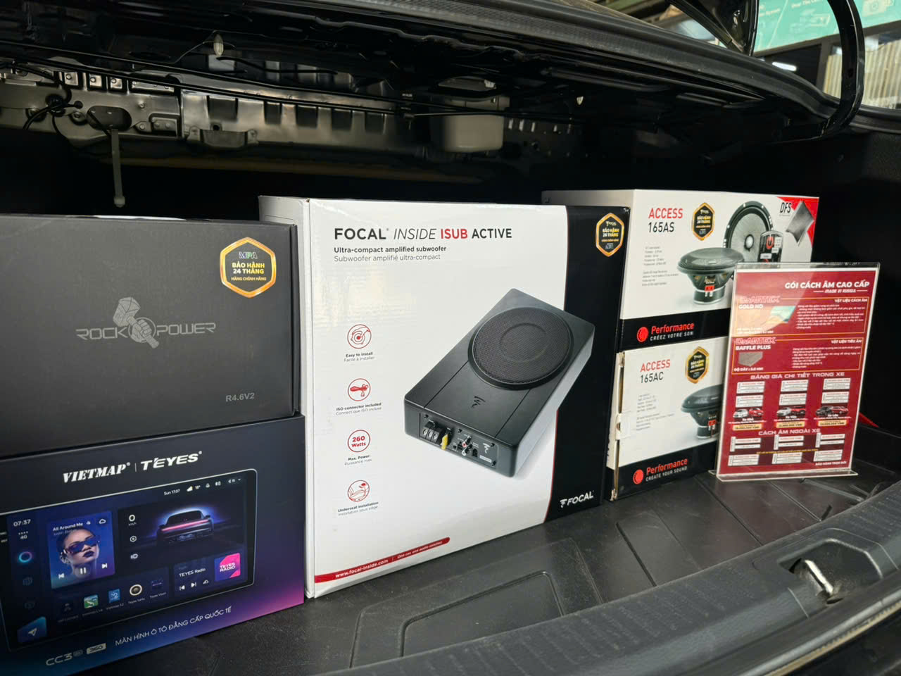 Sub điện Focal được lắp đặt dưới gầm ghế phụ