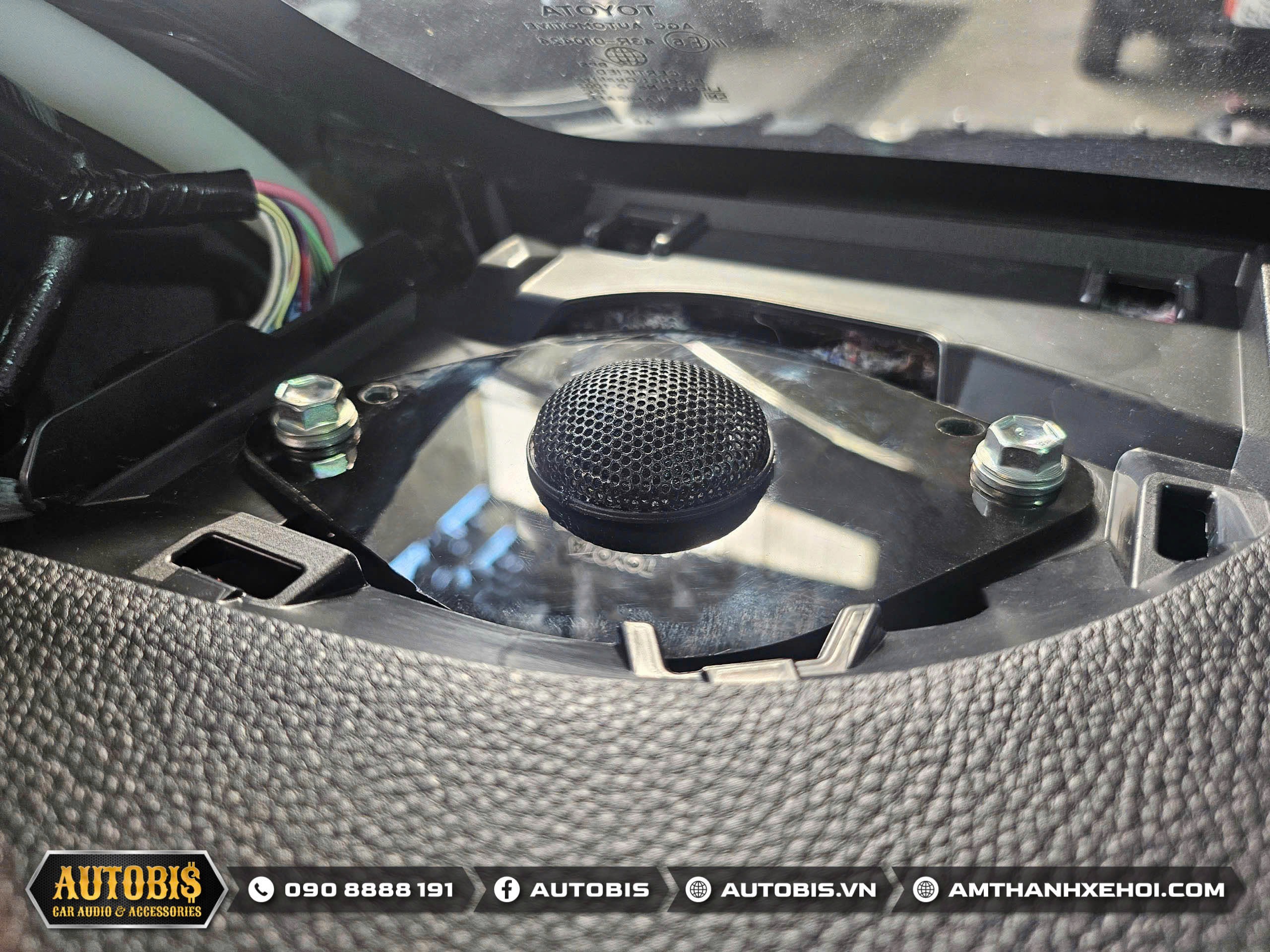 Loa treble được lắp đặt vào vị trí zin trên mặt taplo.