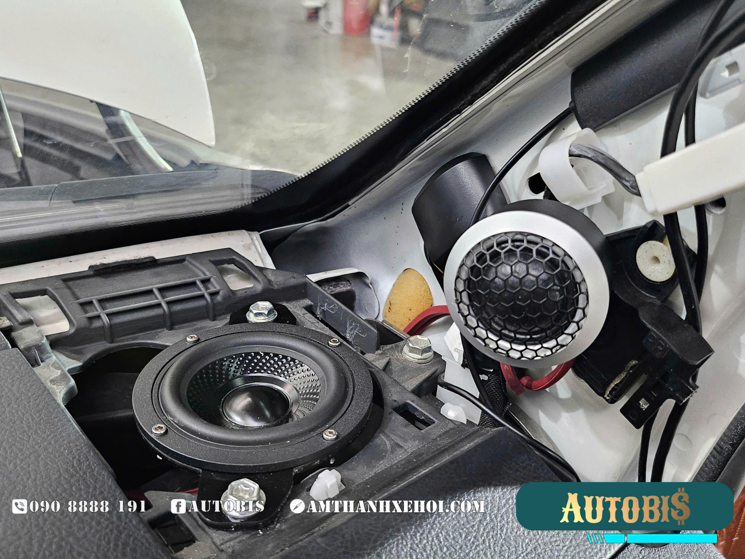 Loa Treble & loa Mid được lắp đặt vị trí zin trên cột A và mặt taplo của xe