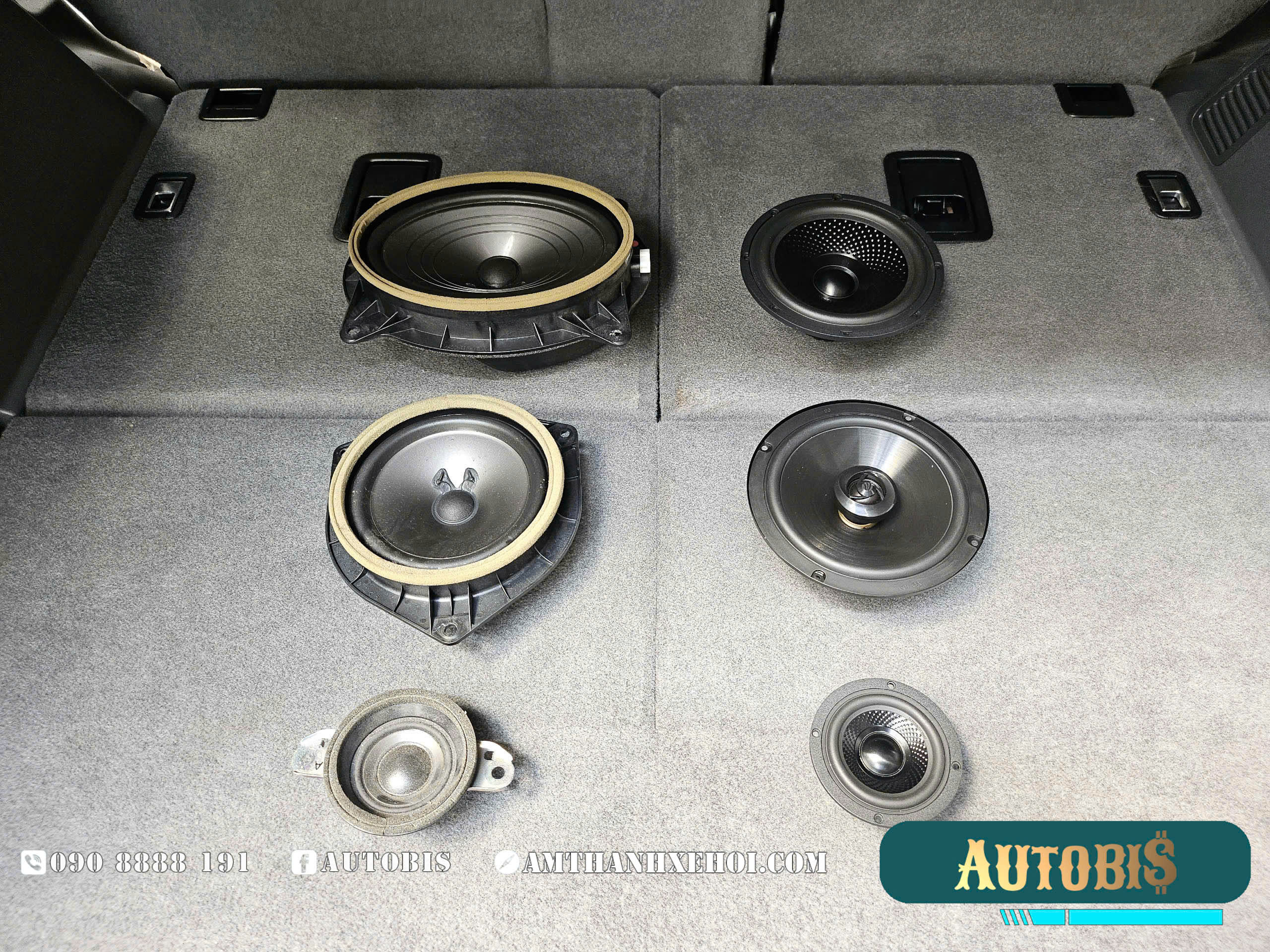 (Hệ thống loa zin gồm loa center trên mặt taplo, loa 3way phía cửa trước và loa đồng trục cửa sau)