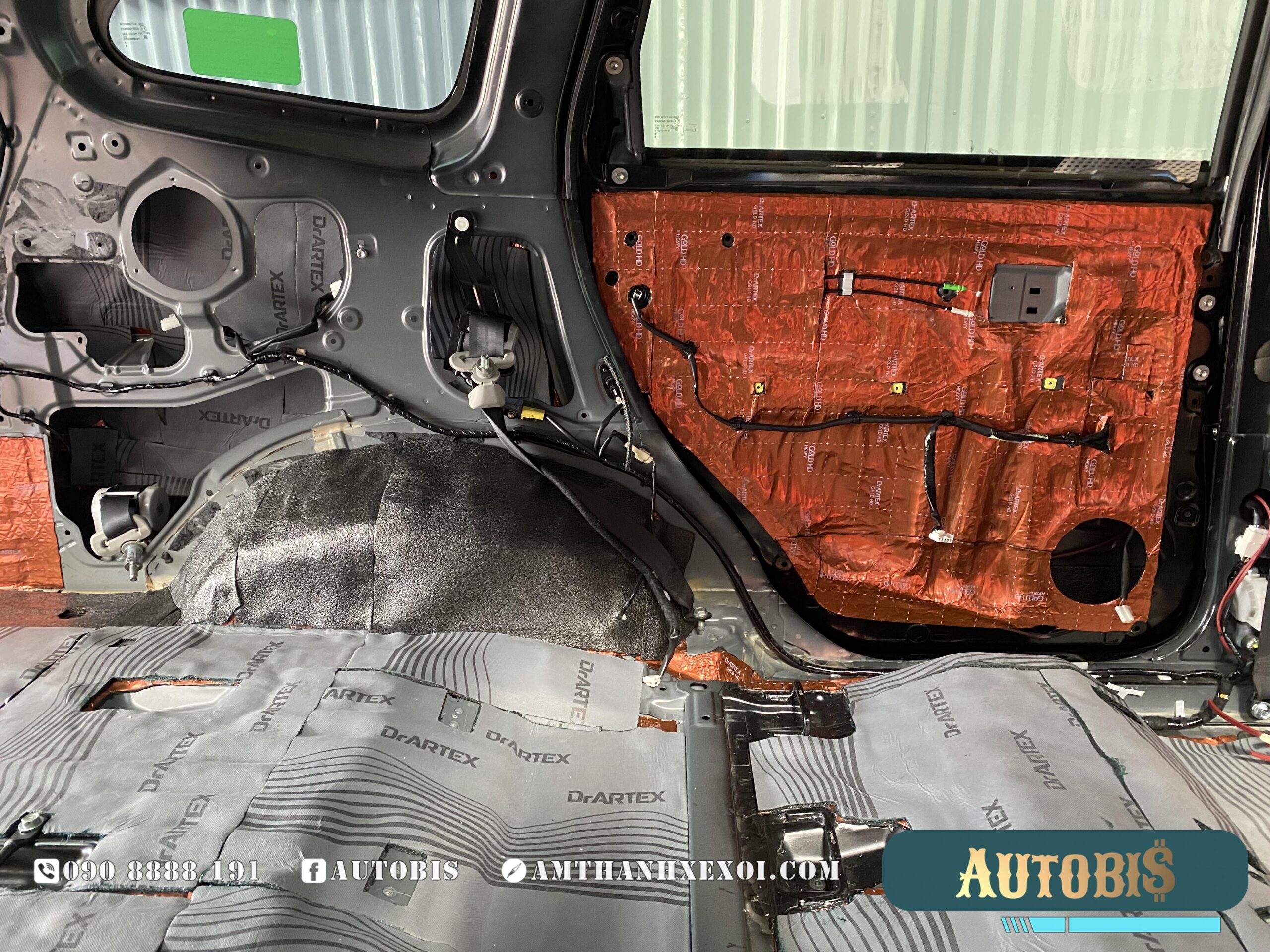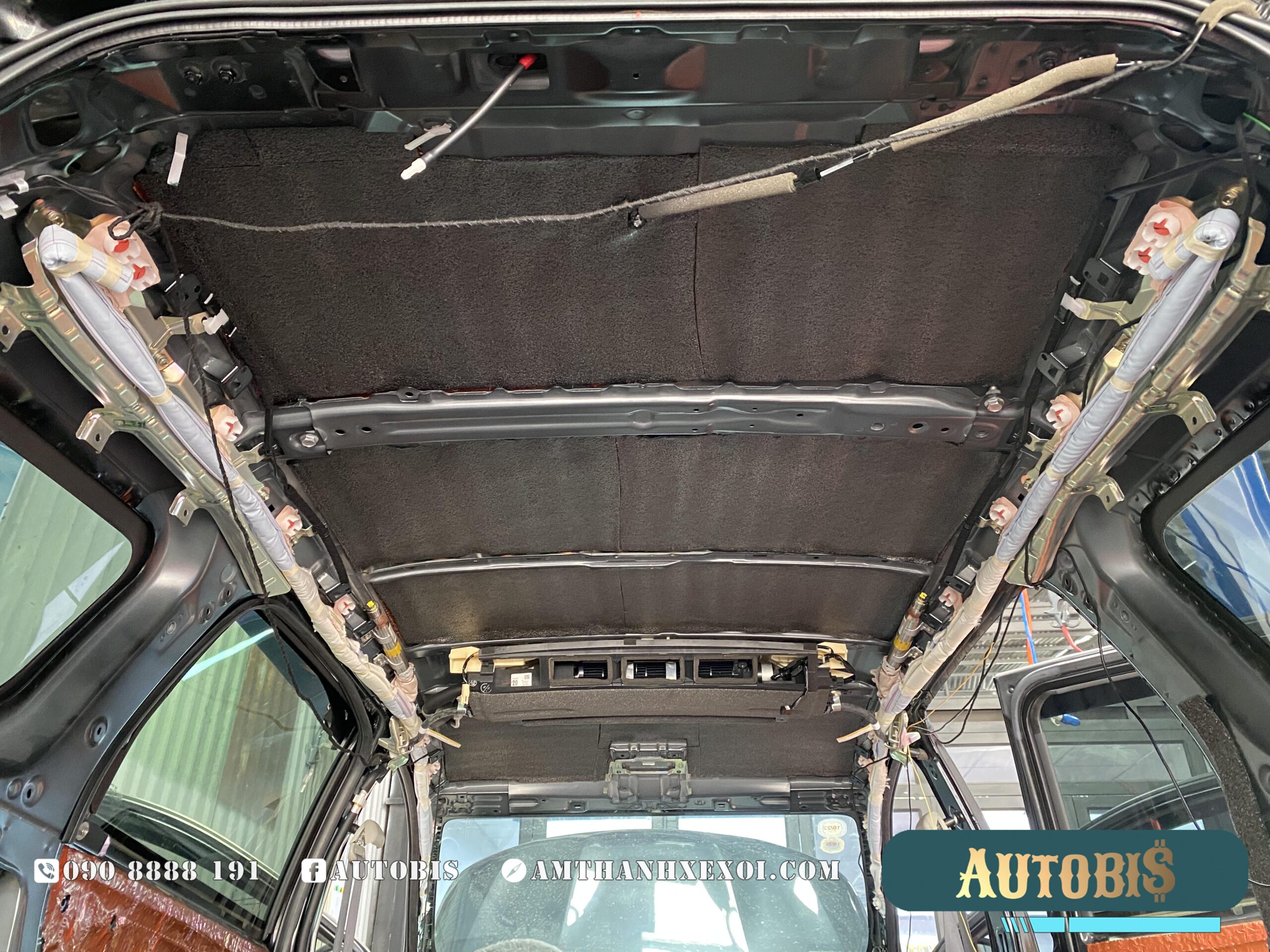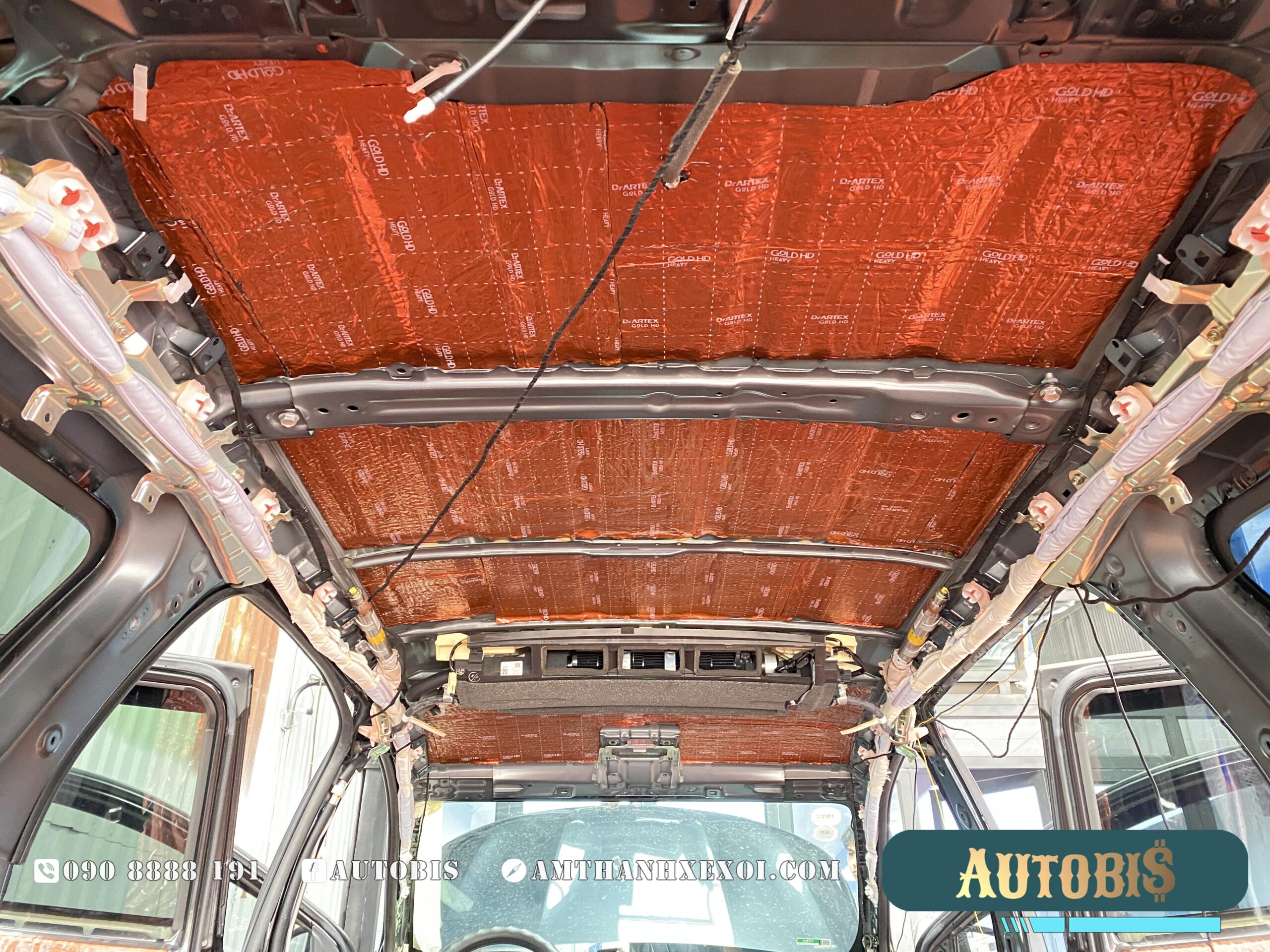 Cách âm sàn: Được thi công với 2 lớp vật liệu, giảm được phần lớn tiếng ồn từ phía dưới vọng lên xe, vị trí này cũng là nới tiêu tốn số lượng vật liệu nhất, khi diện tích rất rộng, và không chỉ dán trên sàn, AUTOBIS còn dán luôn phần trên thân xe, và trên hốc bánh.