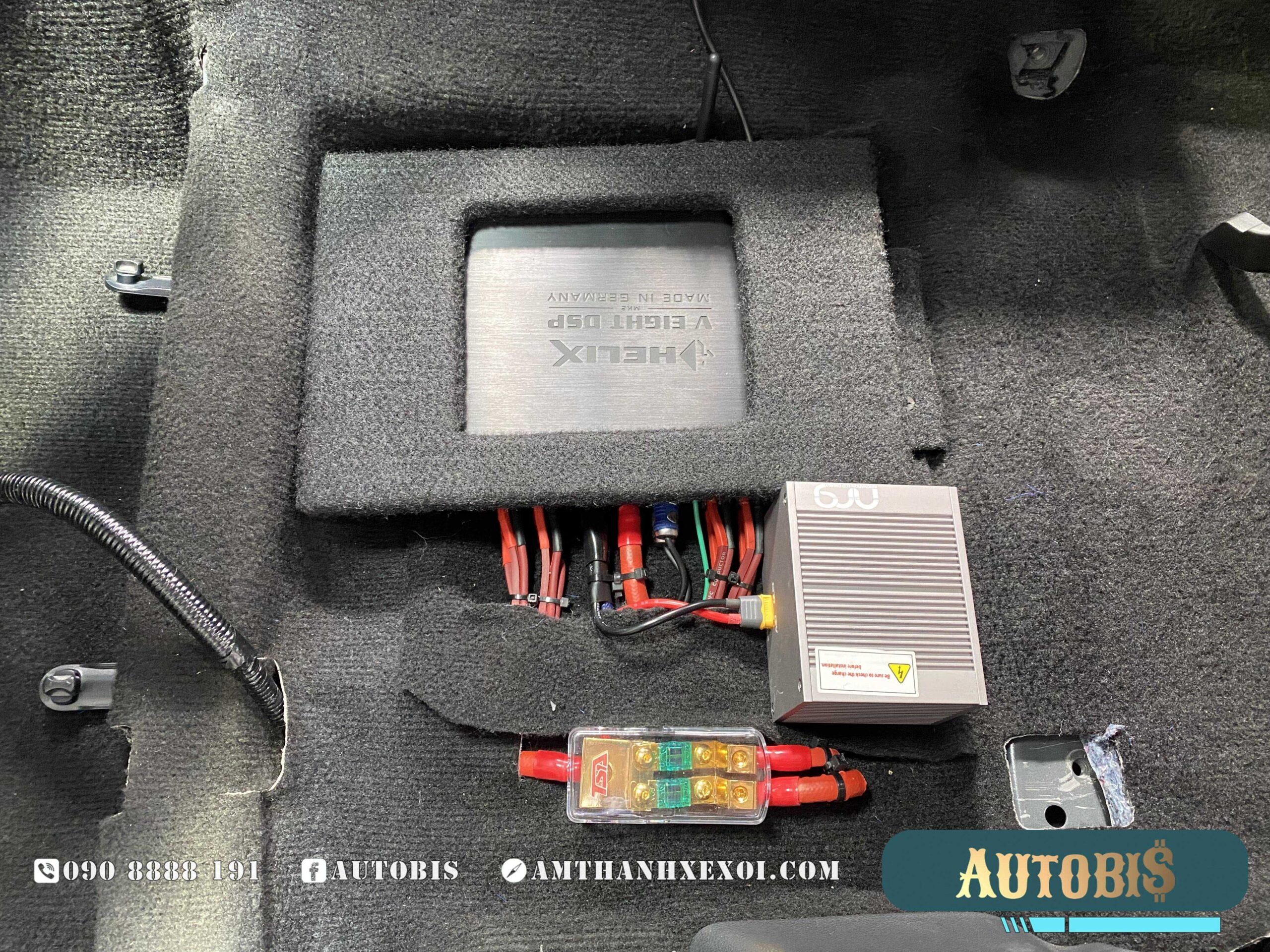 Toàn bộ hệ thống được kéo bằng Helix DSP V8 MKII, bộ xử lý tín hiệu tích hợp 8 kênh amply cực kì nổi tiếng của thương hiệu đến từ Đức, ngoài ra, còn được lắp đặt thêm 1 tụ bù điện NRG 16F để có thể cung cấp đủ điện cho hệ thống khi sử dụng.