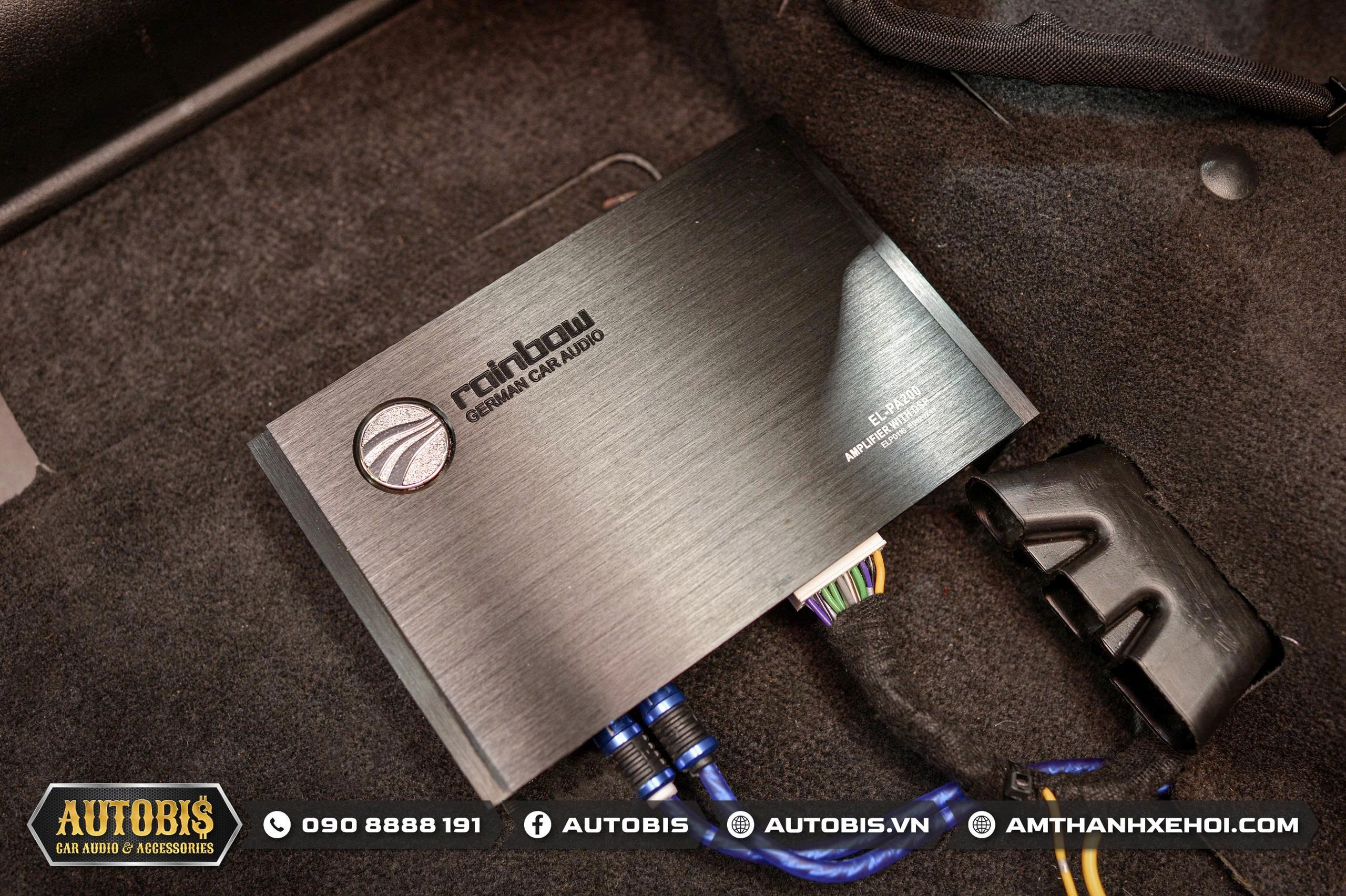 Với cấu hình âm thanh trên DSP tích hợp amply Rainbow EL-PA200 NEO được thi công tại vị trí ghế tài cùng với cầu chì bảo vệ thiết bị.