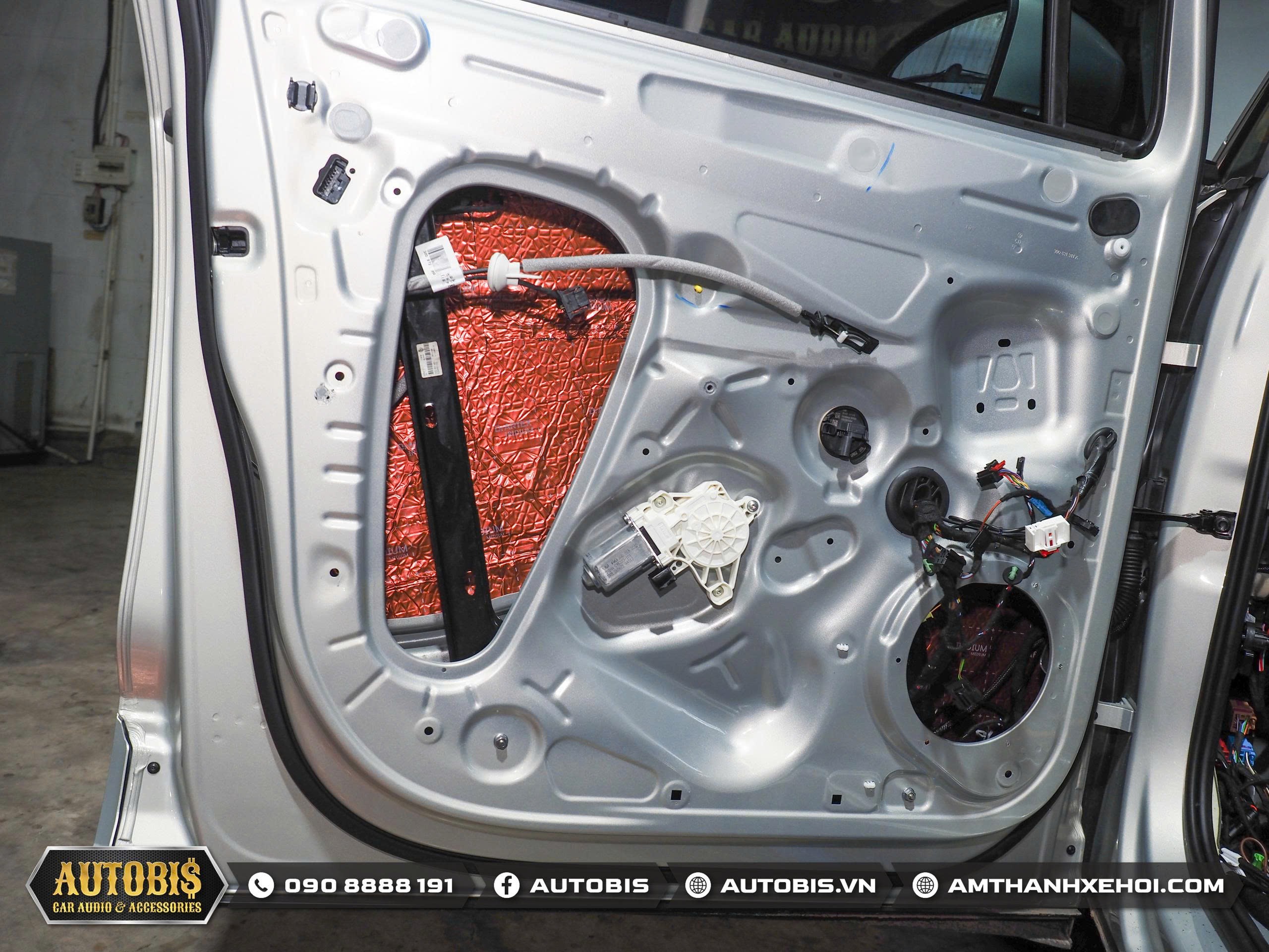 Là một chiếc xe MPV nên phần cách âm cũng rất quan trọng để người ngồi trong xe có không gian yên tĩnh , cửa xe được cách âm bằng vật liệu DrARTEX giúp giảm tiếng ồn bên ngoài và tạo môi trường khép kín giúp loa được hoạt động tốt hơn . Sau khi được cách âm loa được gắn vào vị trí zin trên cánh cửa